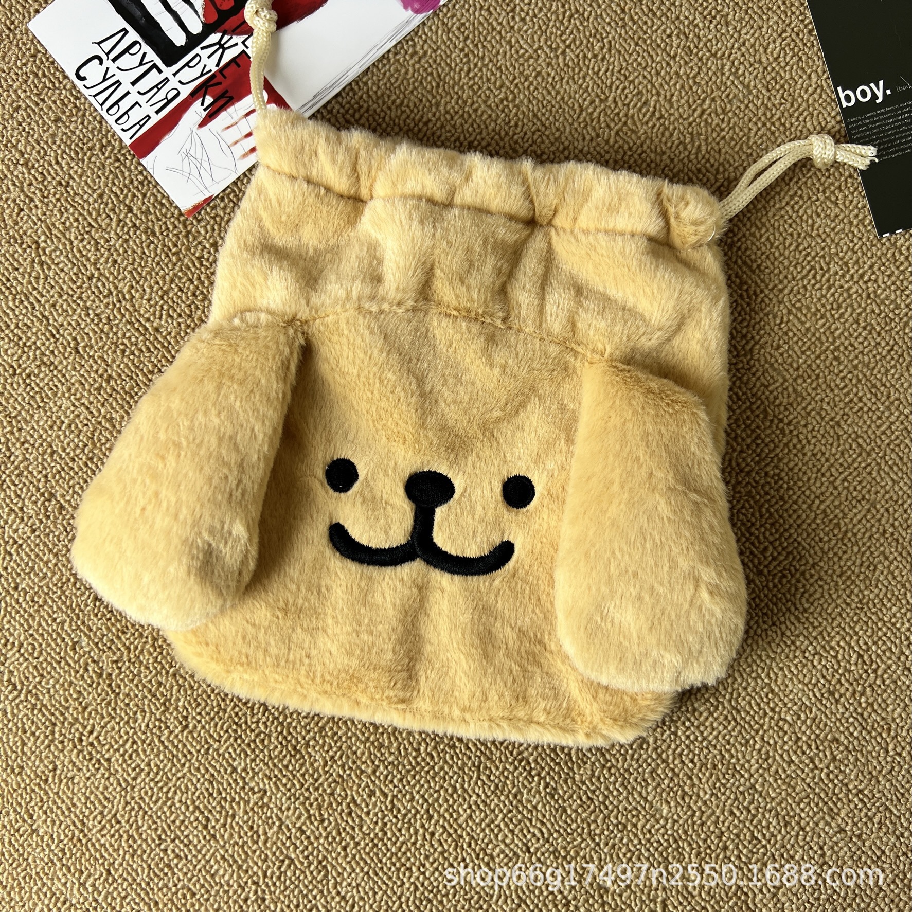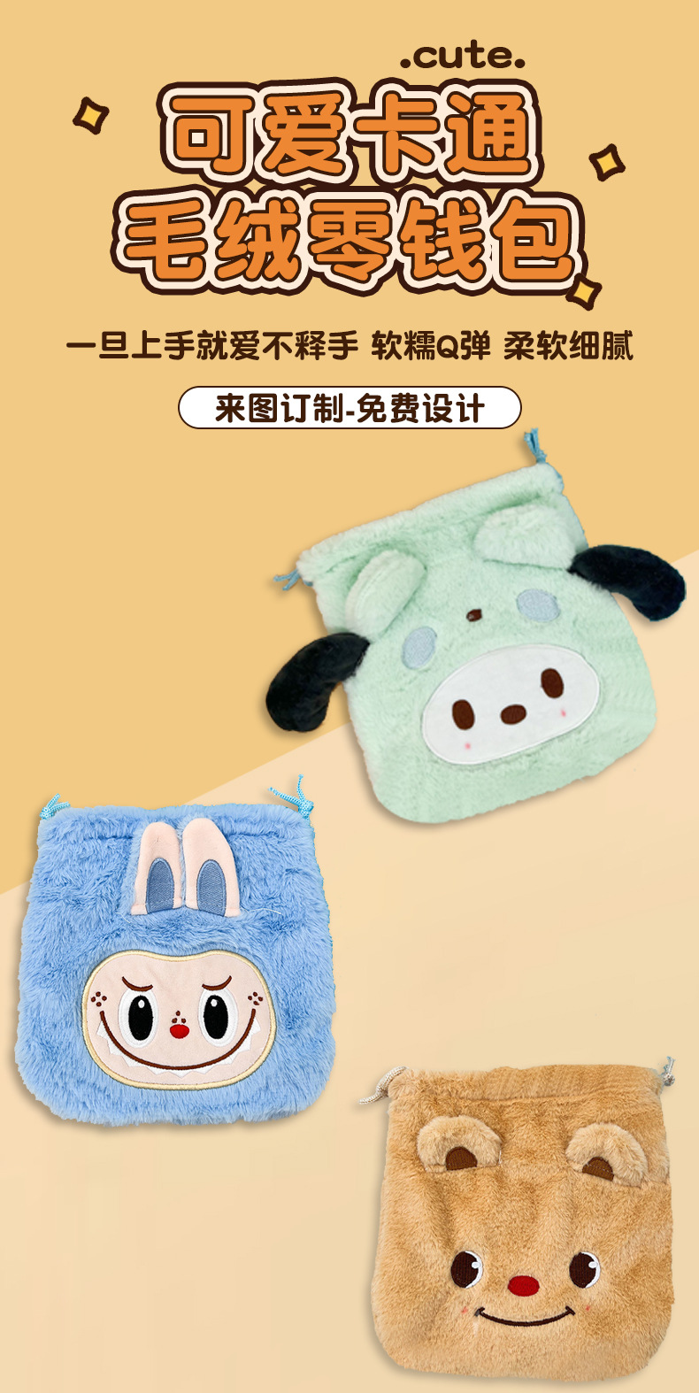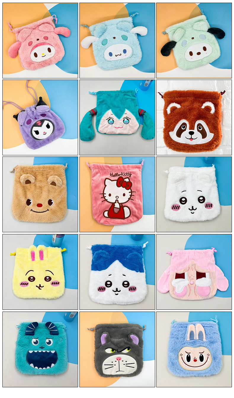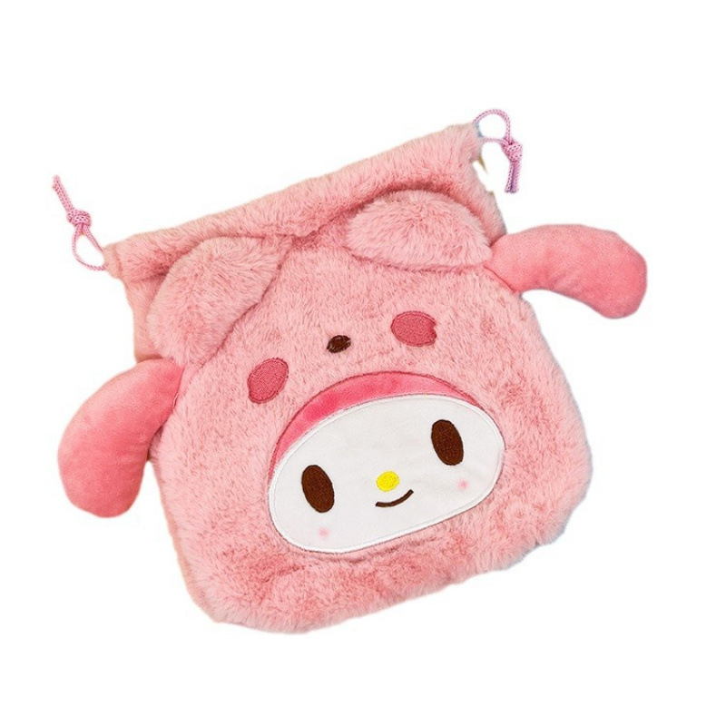 日系毛绒可爱零钱包束口袋便携卫生巾收纳包Jk配饰简约小号斜挎包
