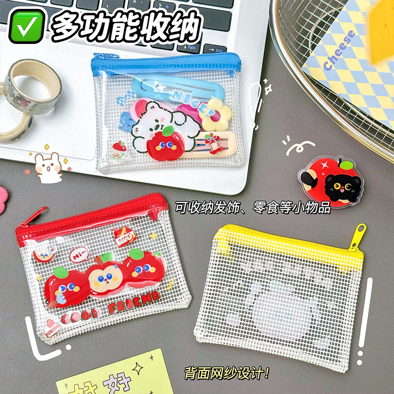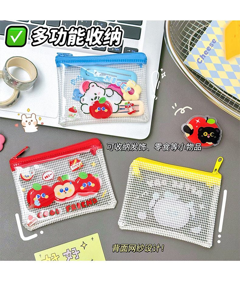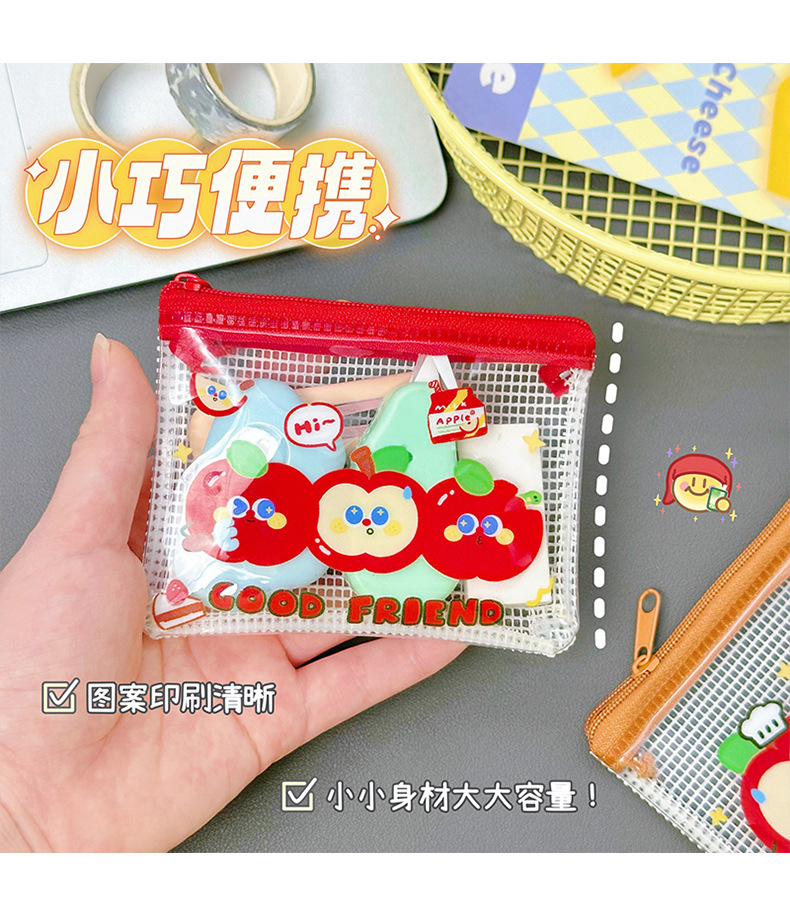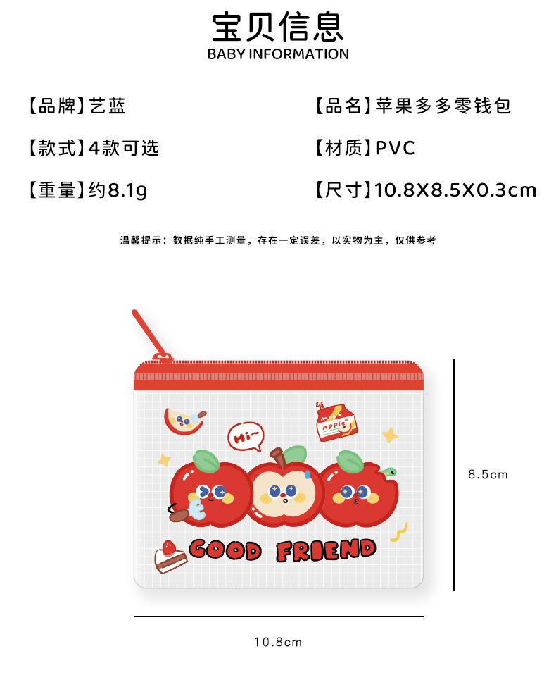 苹果多多零钱包卡通PVC零钱袋可爱便携收纳袋简约透明口红收纳包