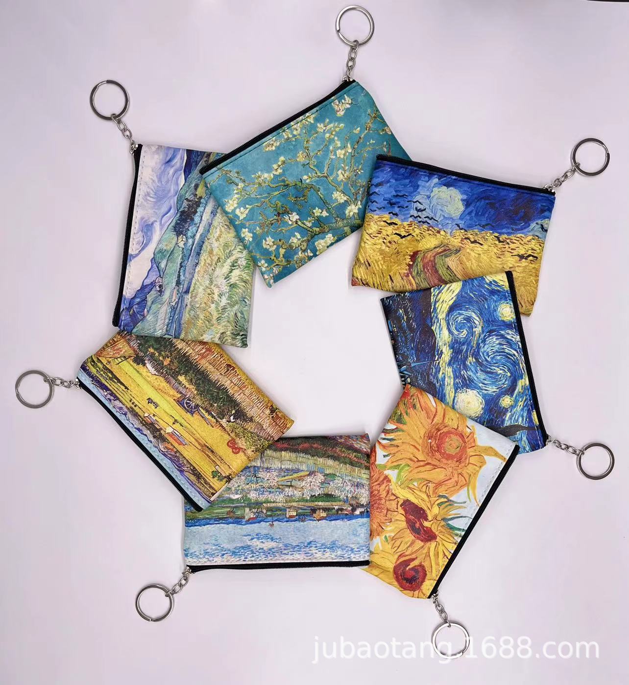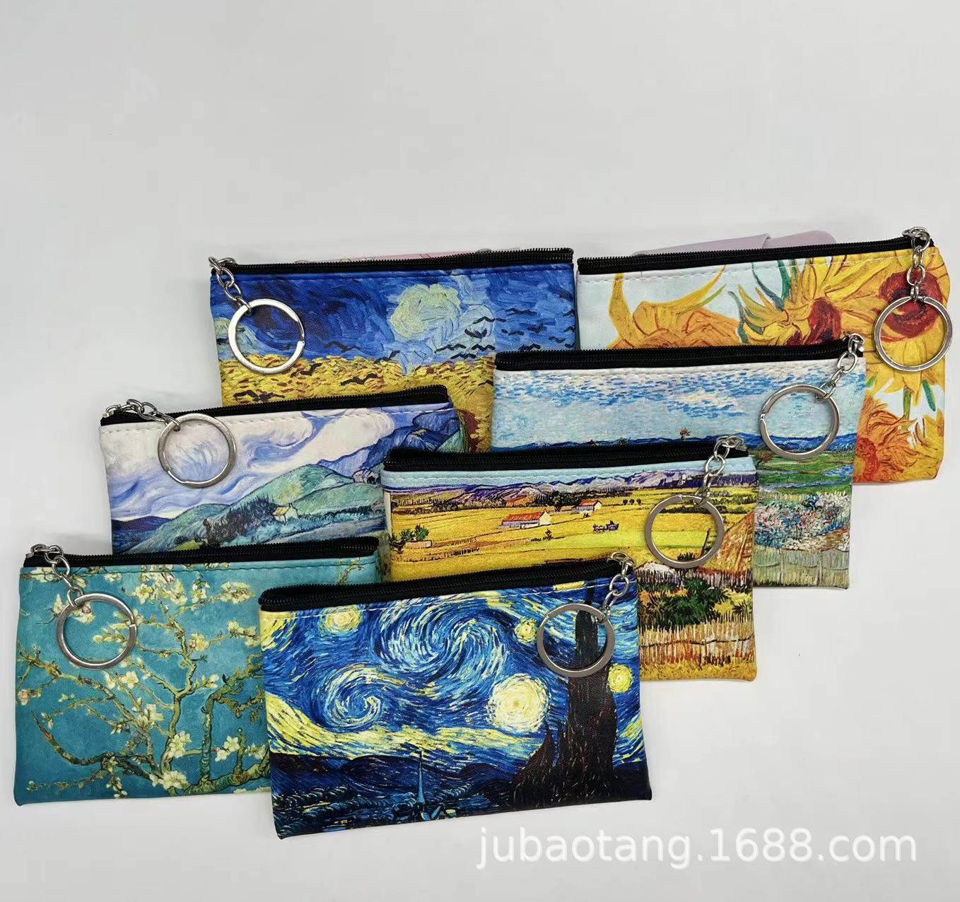 欧式田园风梵高复古艺术油画钱袋创意收纳小物件丰收零钱硬币