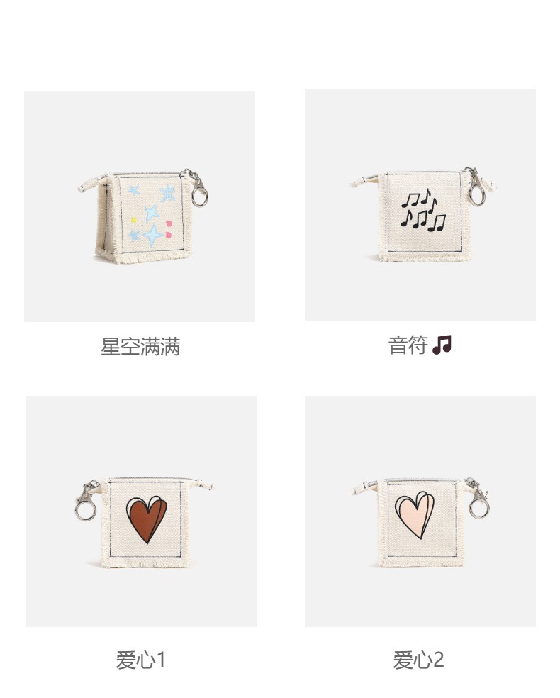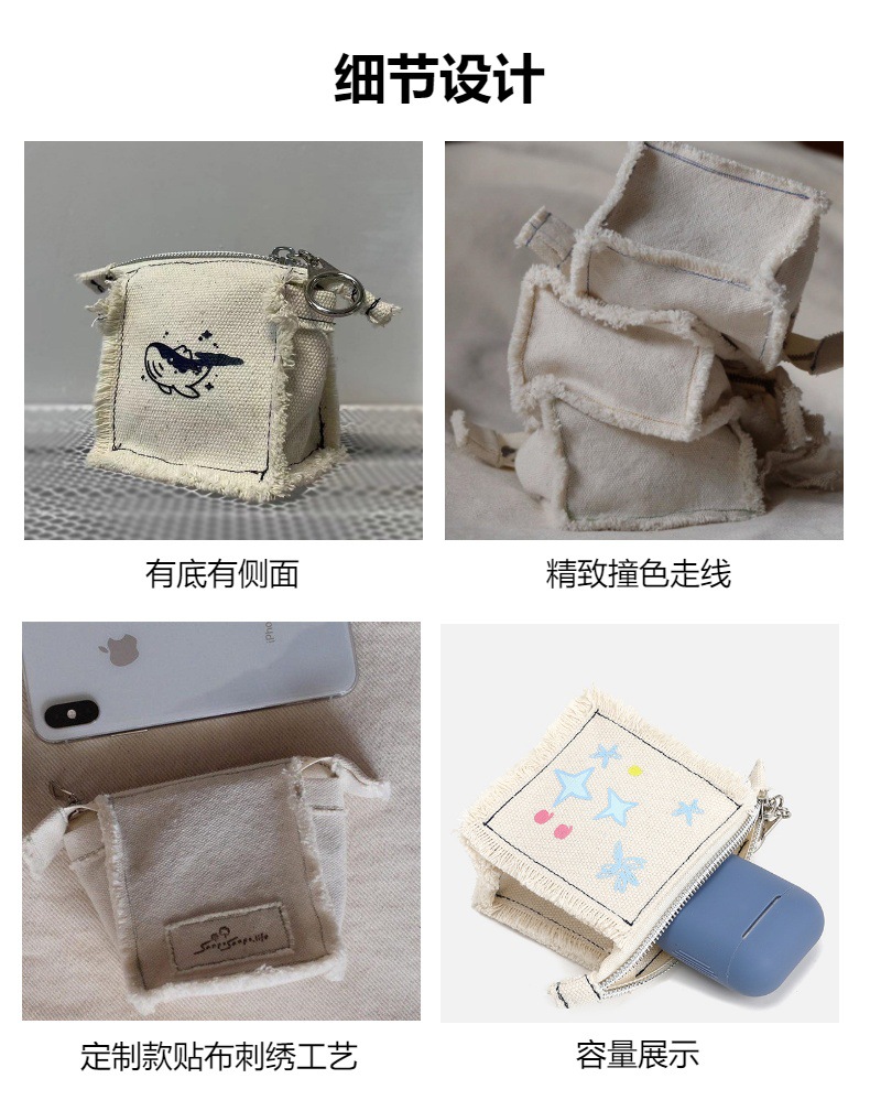 拉链帆布袋ins卡通零钱手机收据线耳机跨境爆款收纳包加印logo