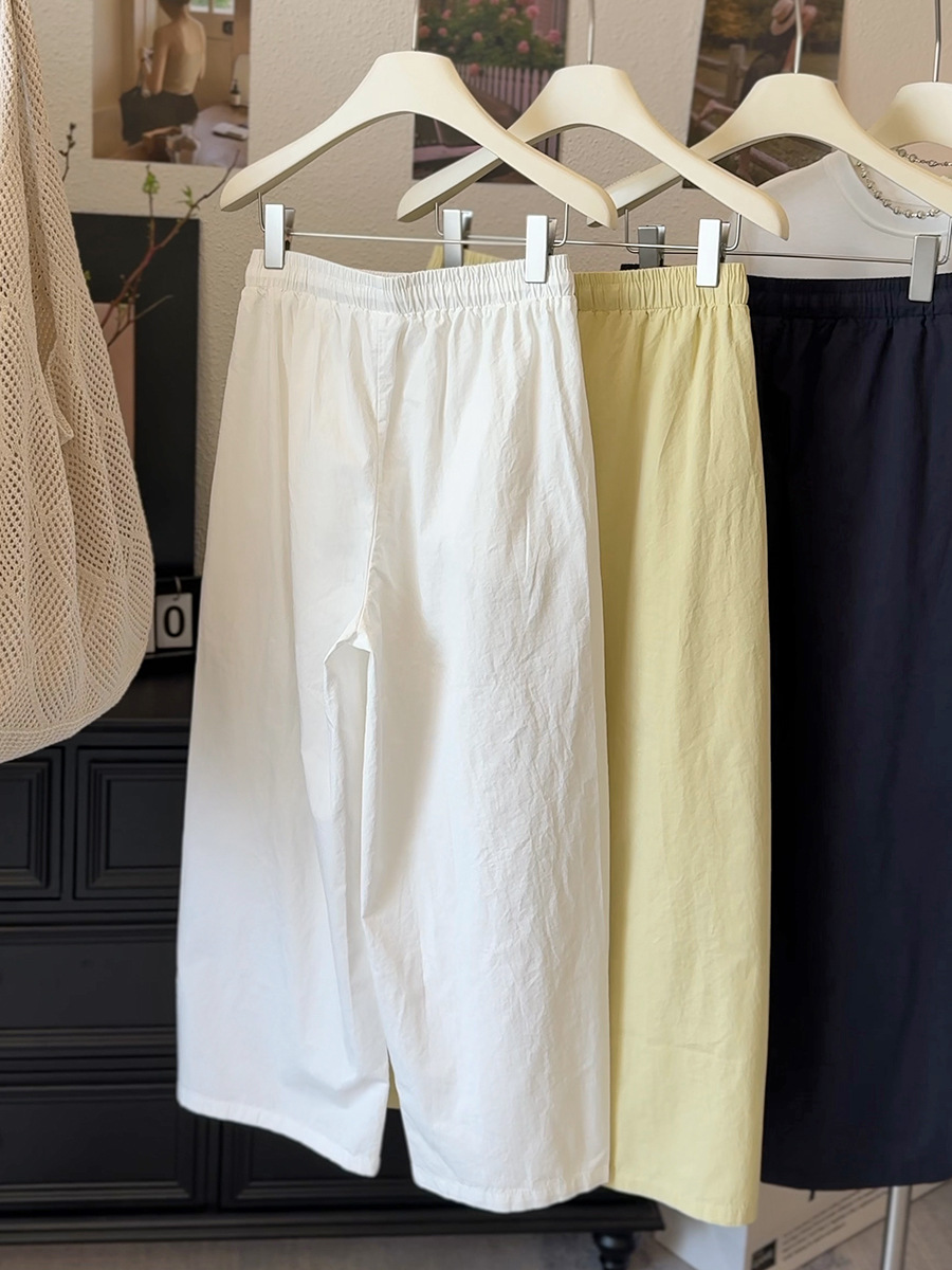 日韩小个子阔腿裤休闲九分裤~夏季薄款洗水棉质宽松裤子纸片裤子