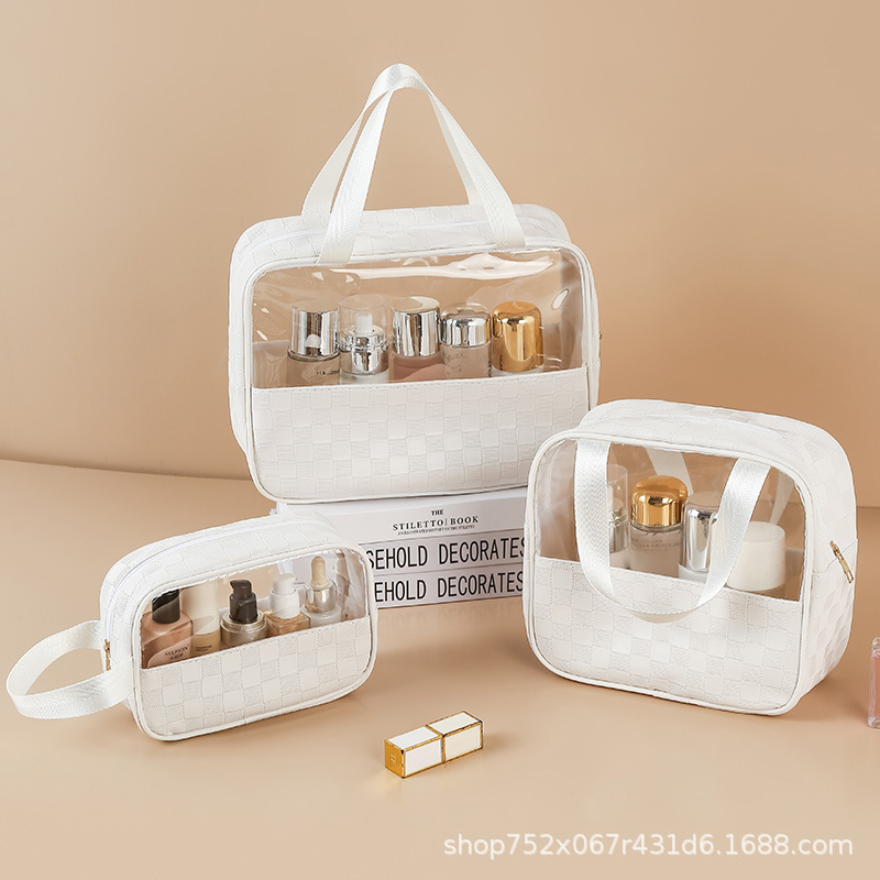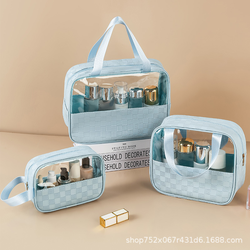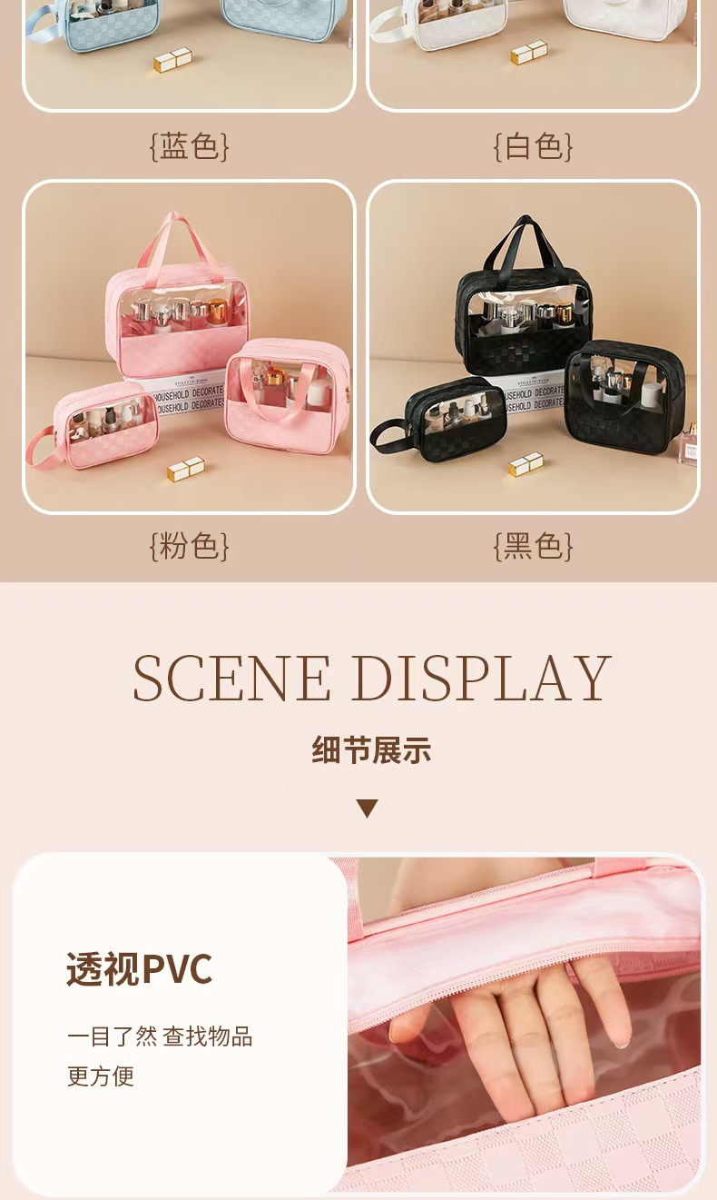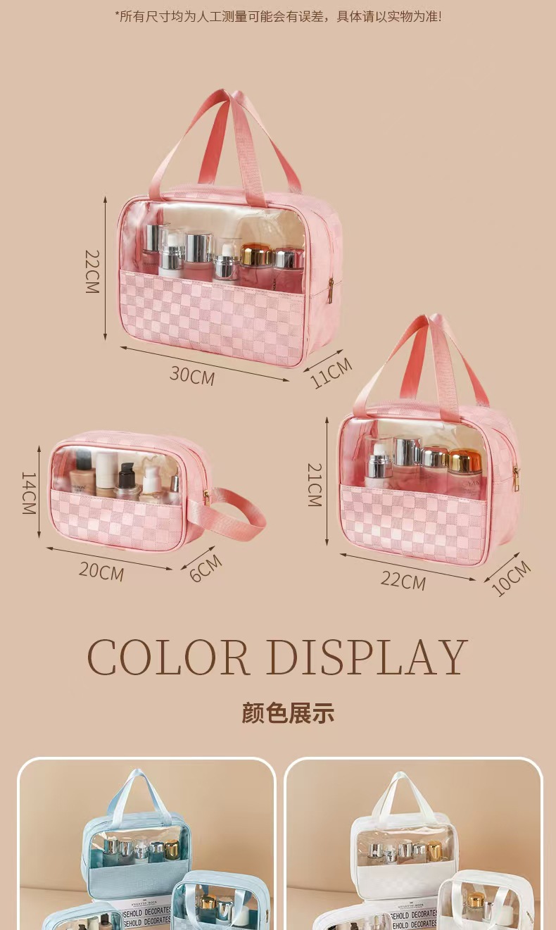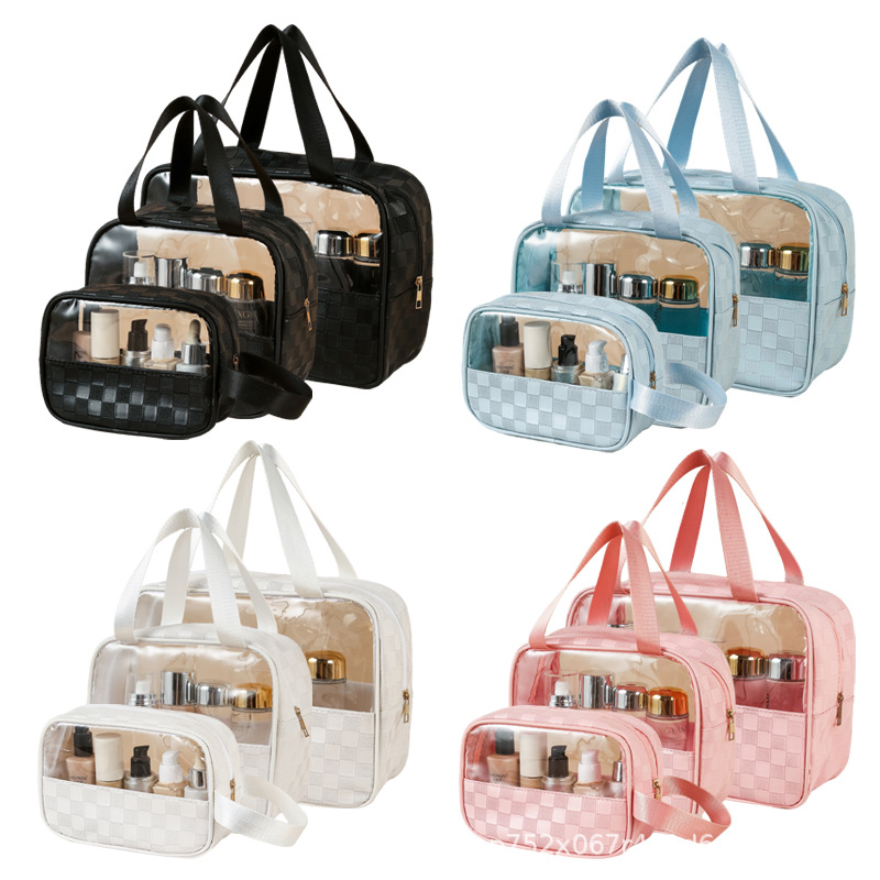 透明化妆包三件套高颜值大容量旅行洗漱包格纹化妆品收纳包pvc