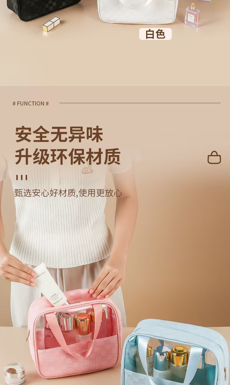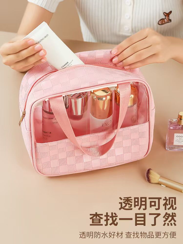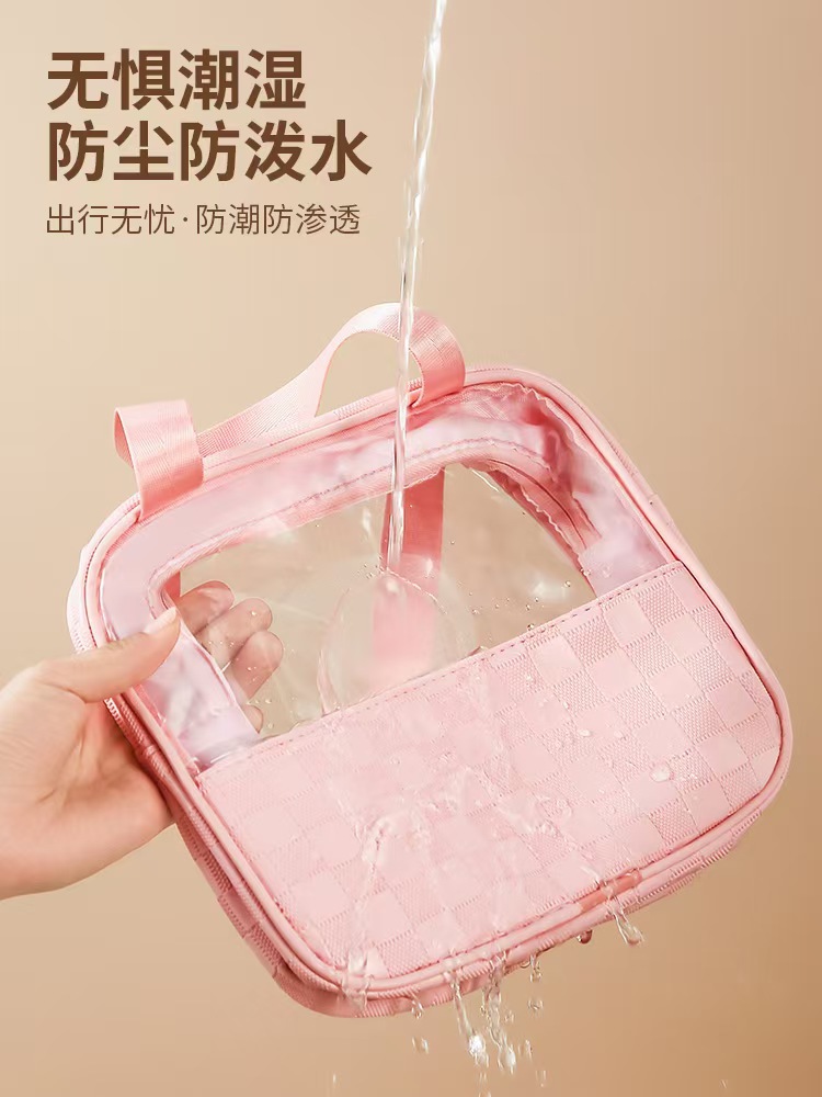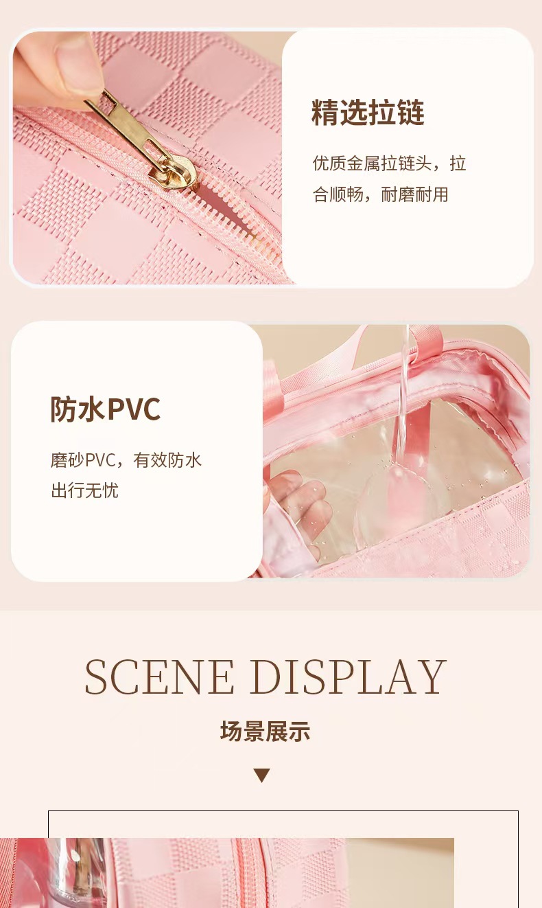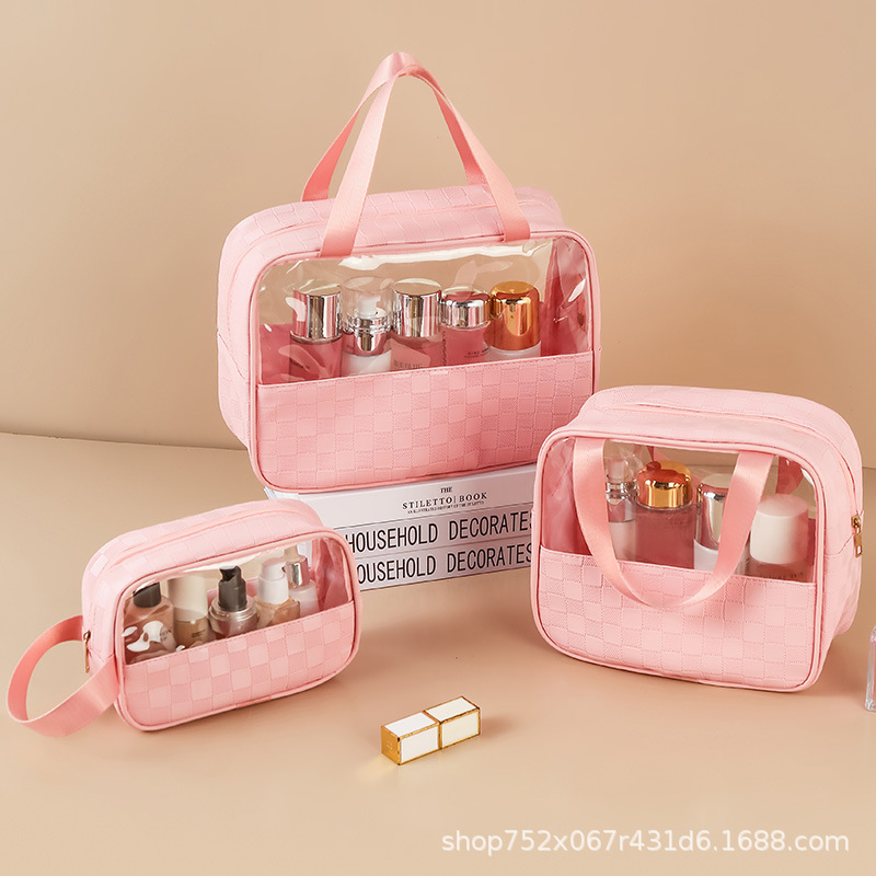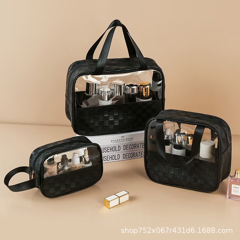 透明化妆包三件套高颜值大容量旅行洗漱包格纹化妆品收纳包pvc