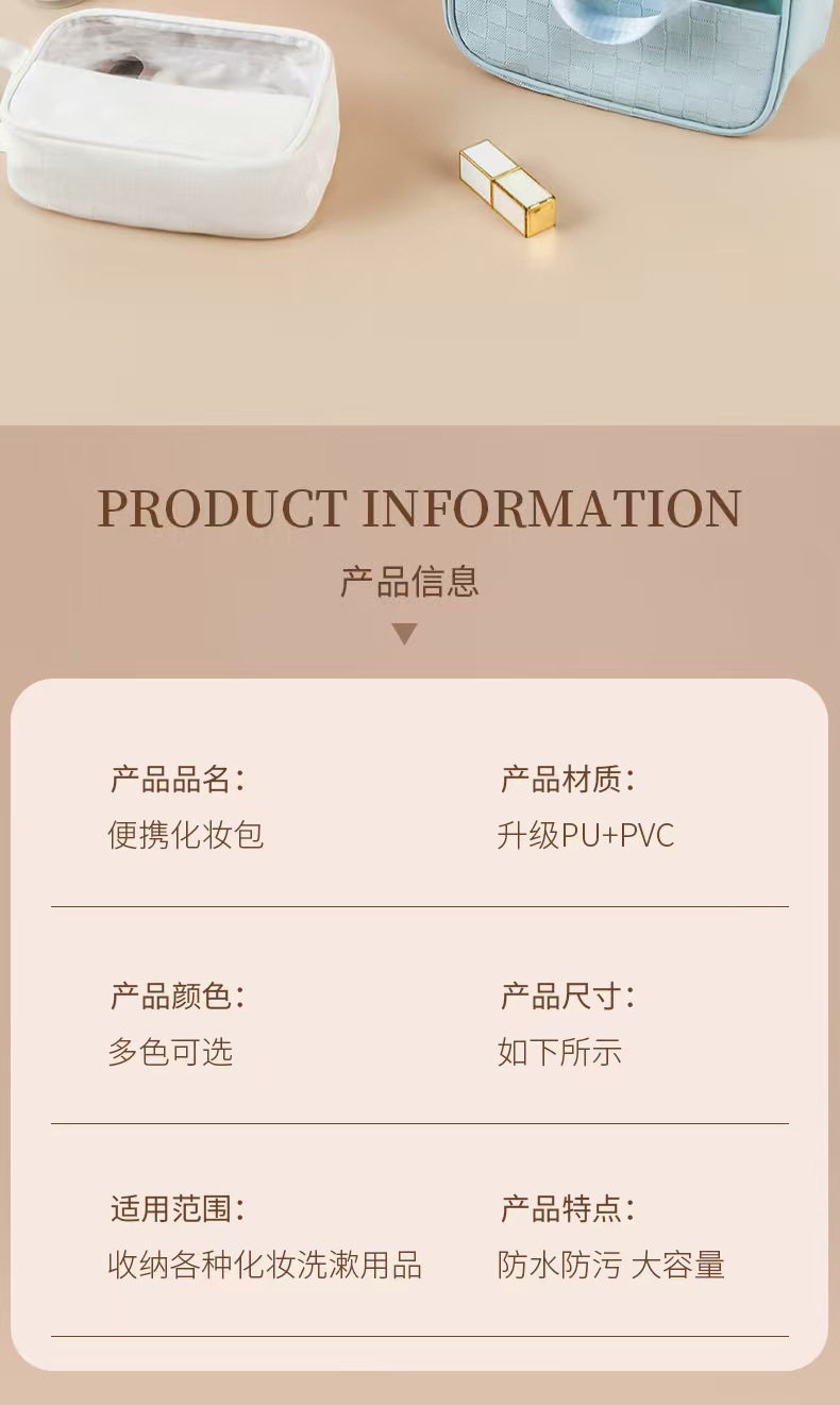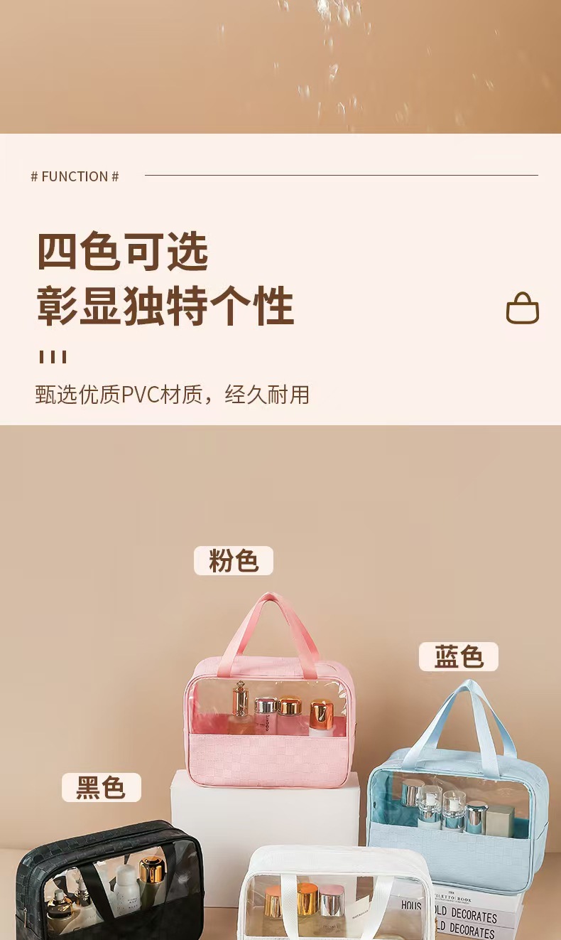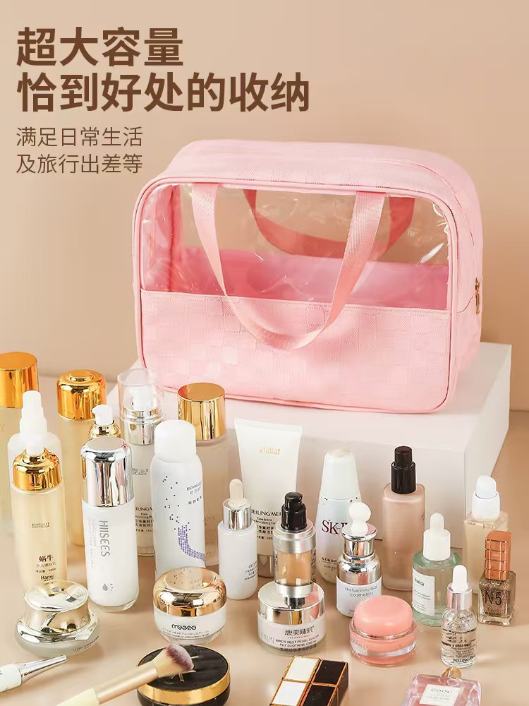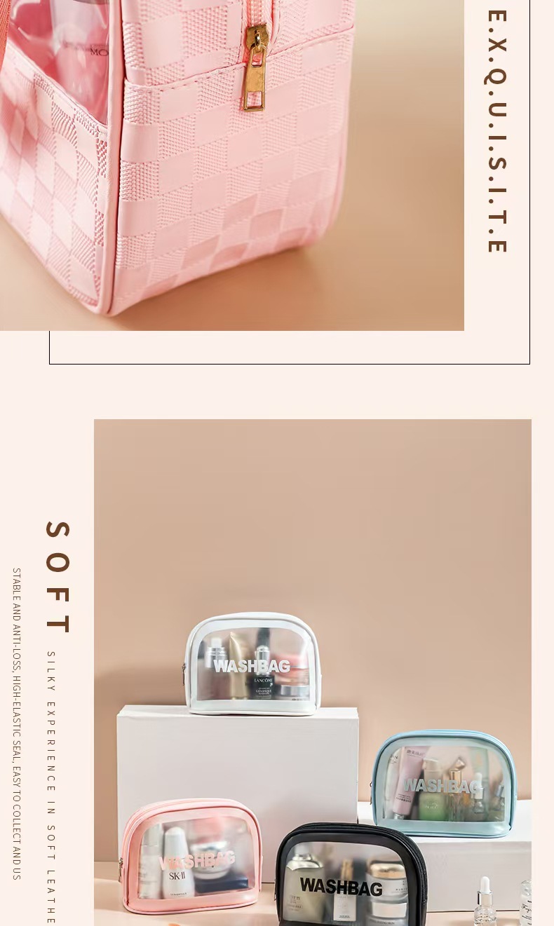 透明化妆包三件套高颜值大容量旅行洗漱包格纹化妆品收纳包pvc