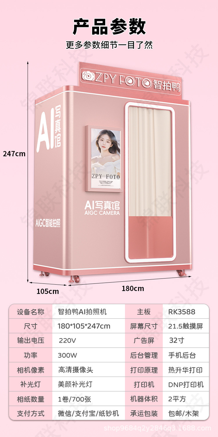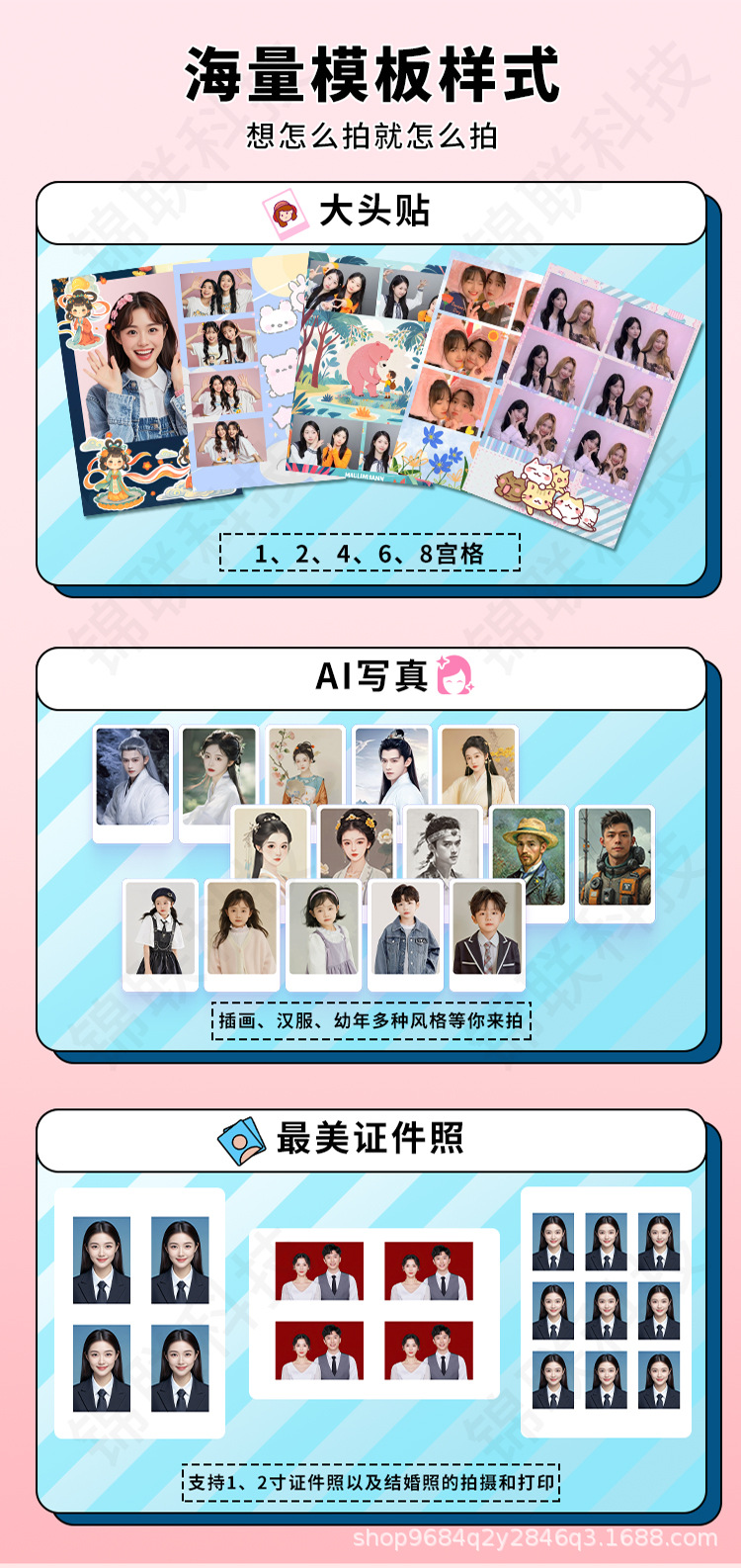 大头贴拍照机ai拍贴机商场拍照机创业小本项目无人自助拍照一体机