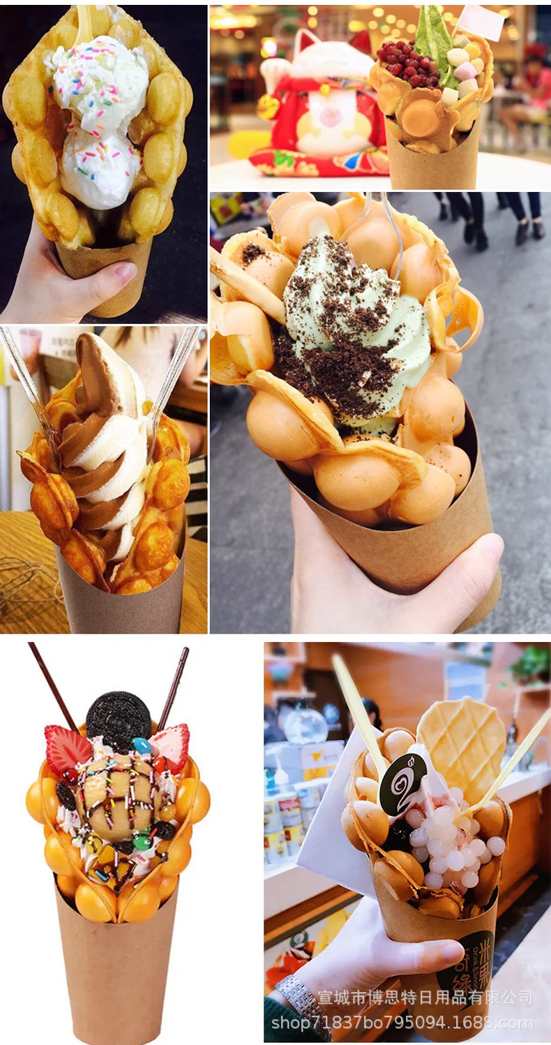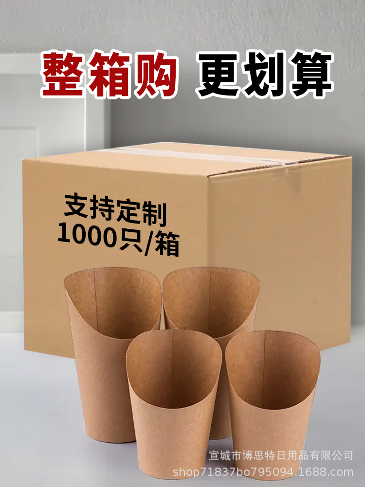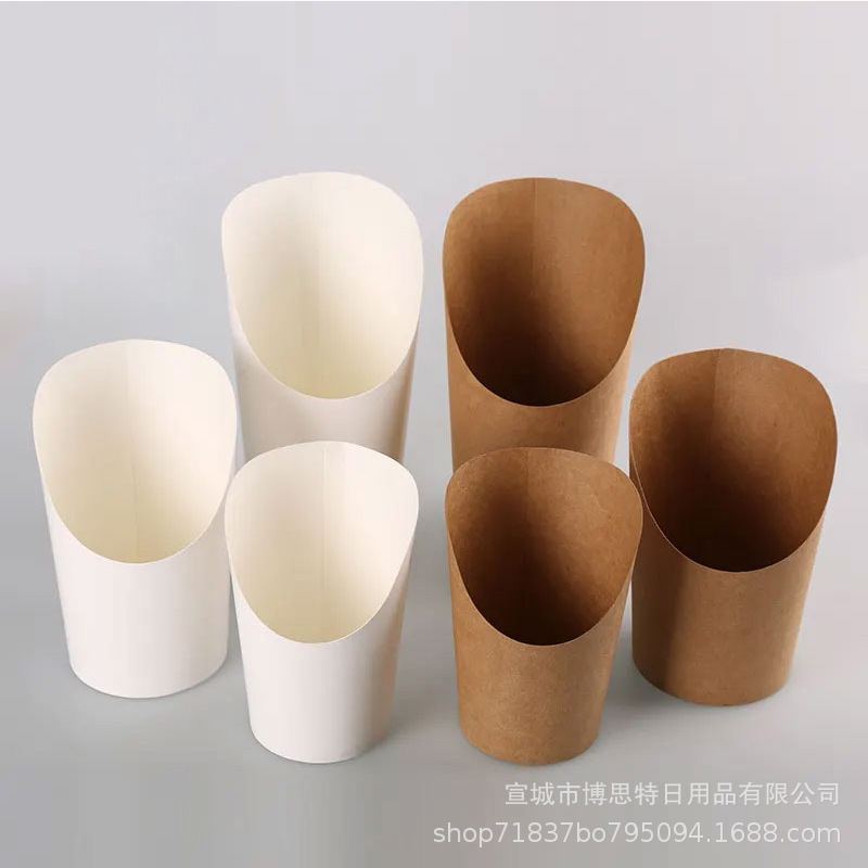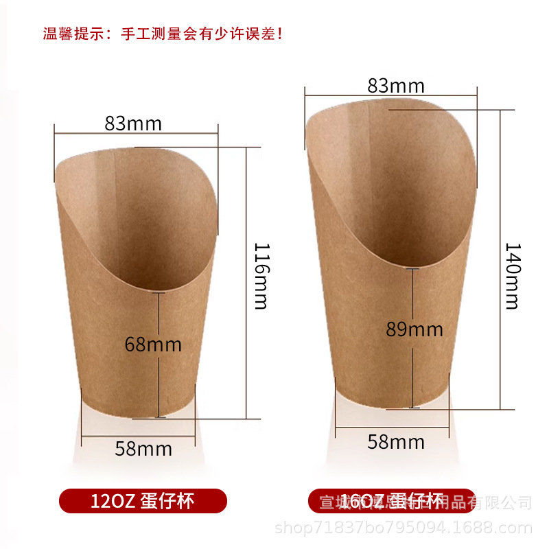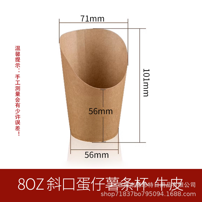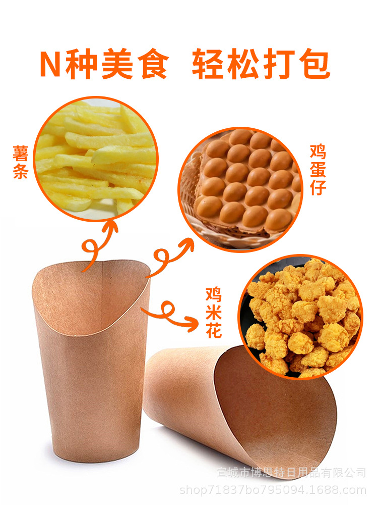 一次性鸡蛋仔杯批发加厚牛皮斜口杯薯条杯烘焙包装盒整箱出口外带