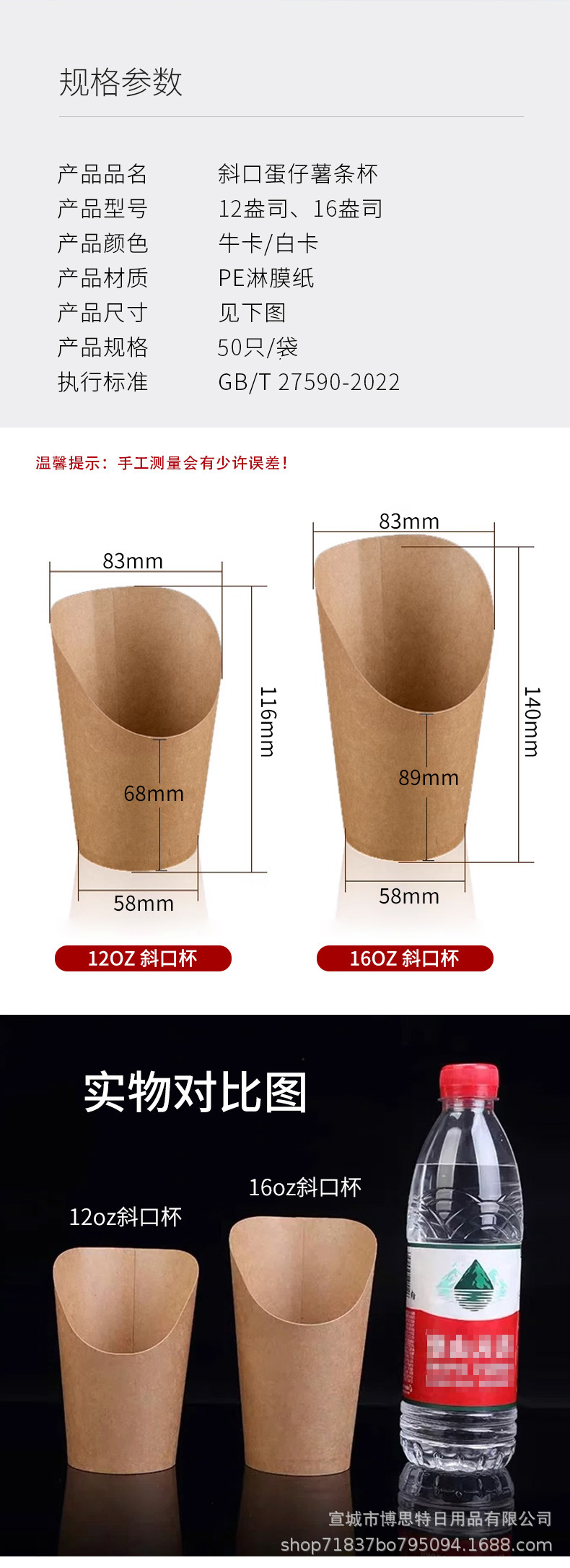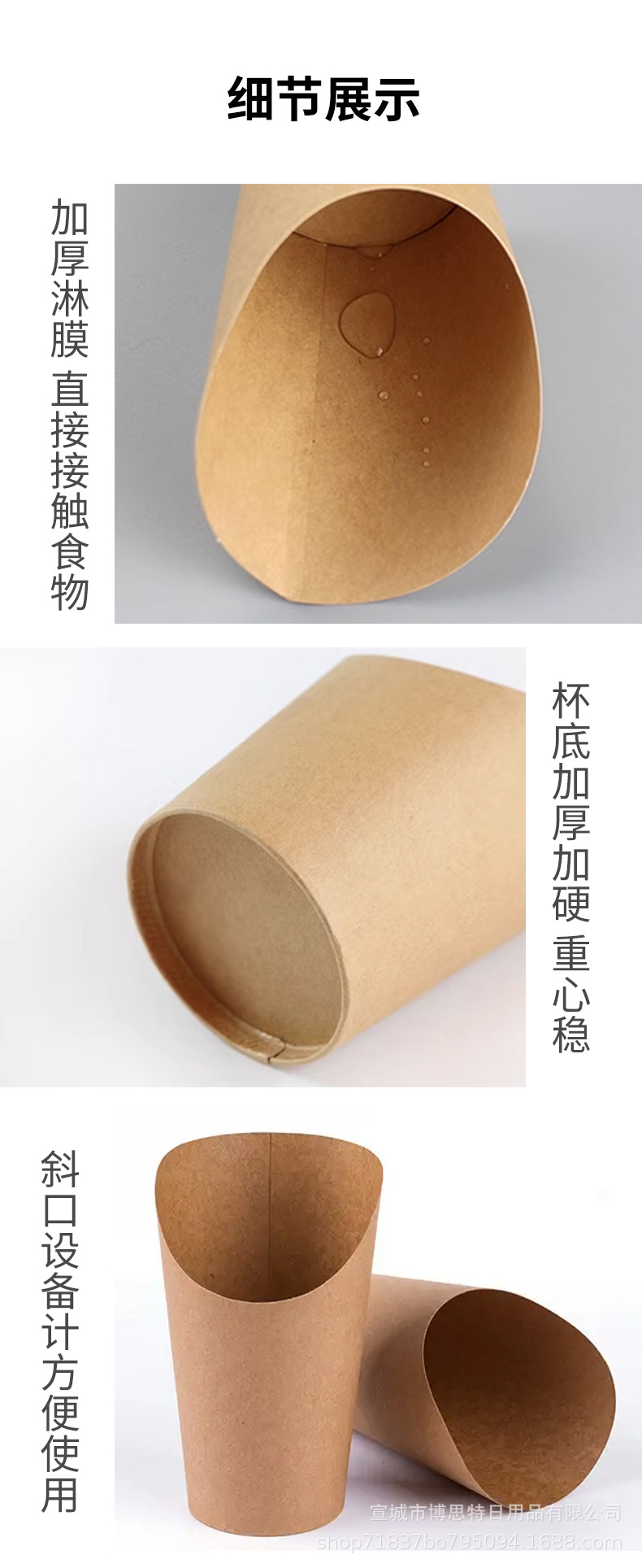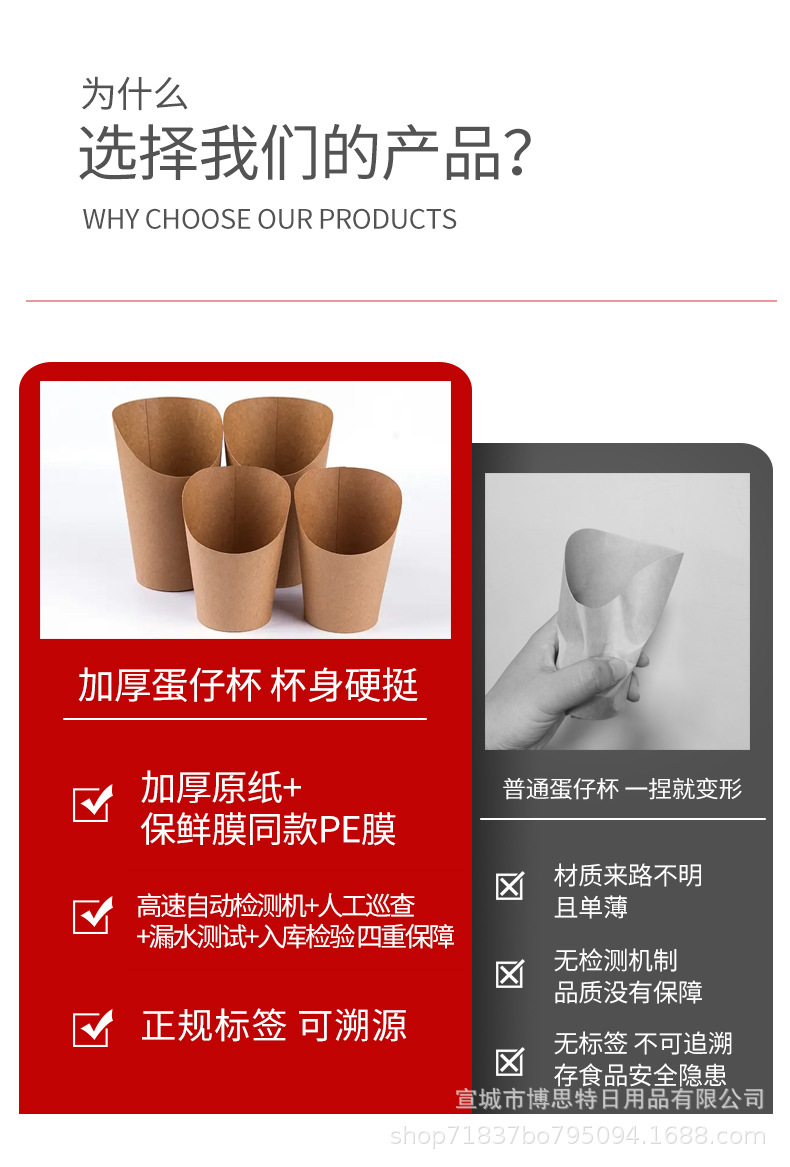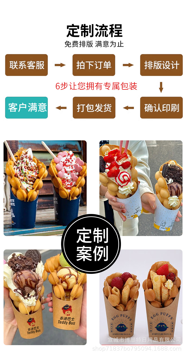 一次性鸡蛋仔杯批发加厚牛皮斜口杯薯条杯烘焙包装盒整箱出口外带
