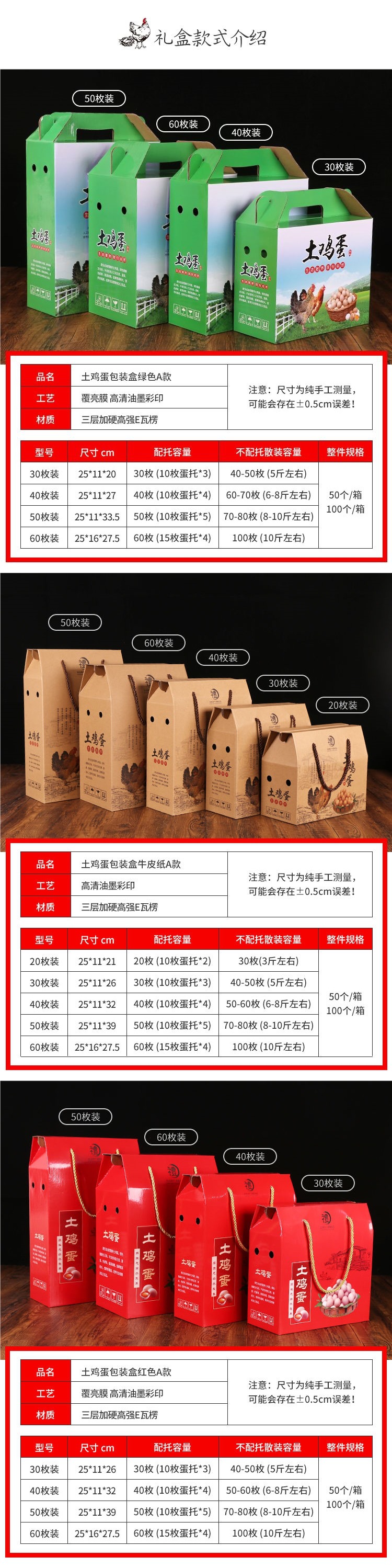 现货土鸡蛋包装盒高档礼品手提盒蛋托钉制纸箱20枚-100空箱