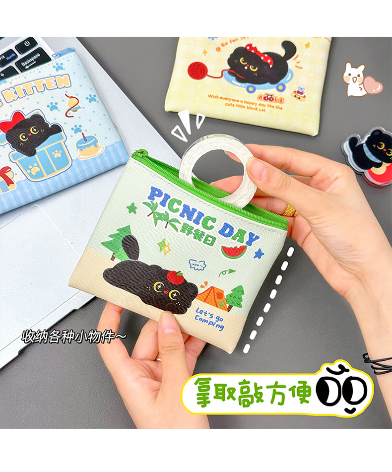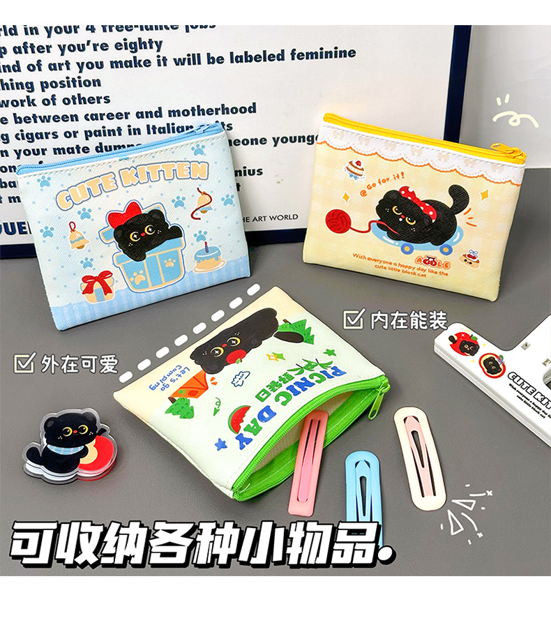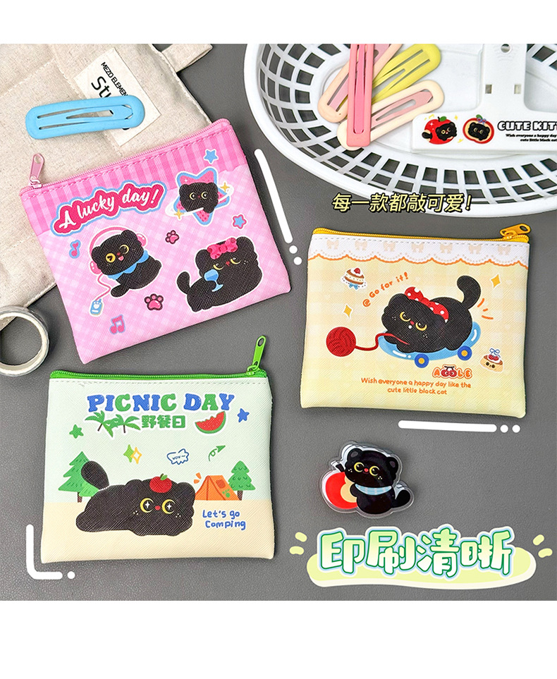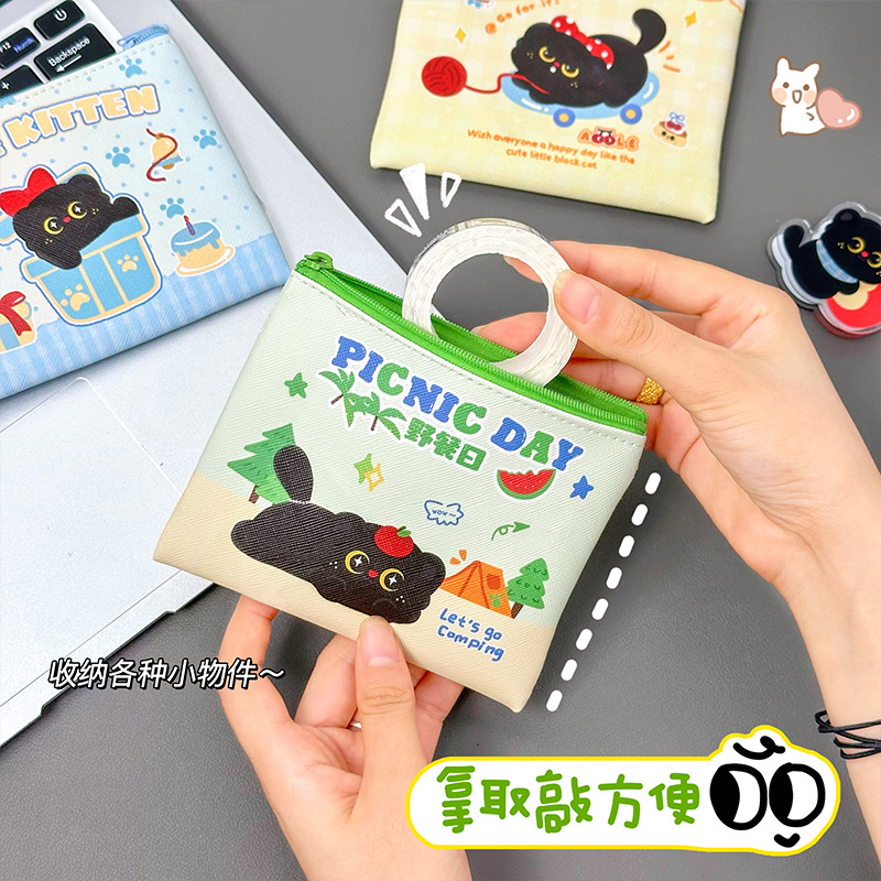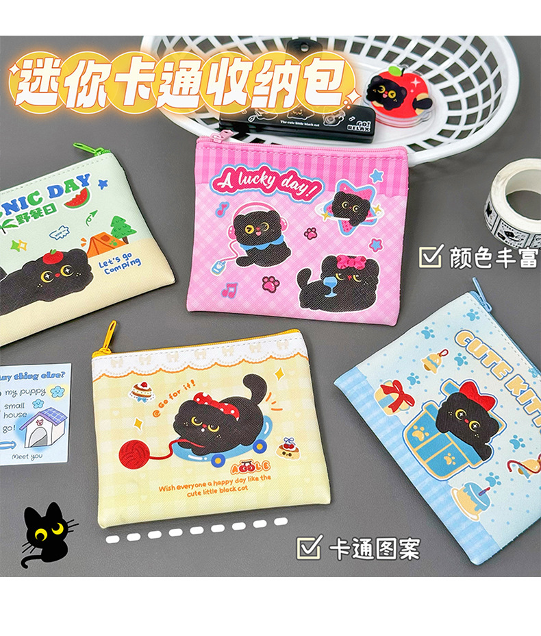 黑色小猫零钱包可爱苹果猫迷你零钱袋学生便携钥匙包收纳包钱包
