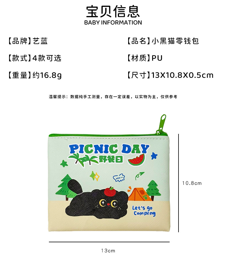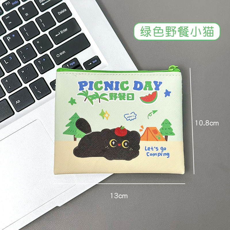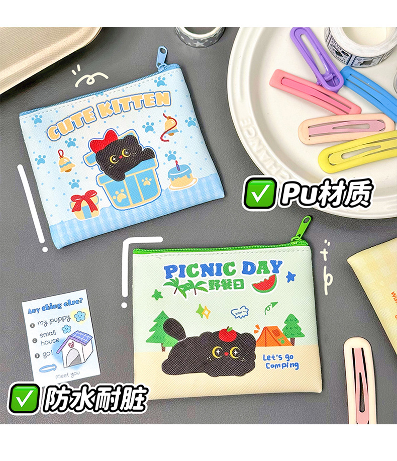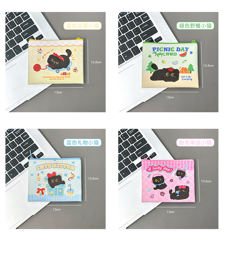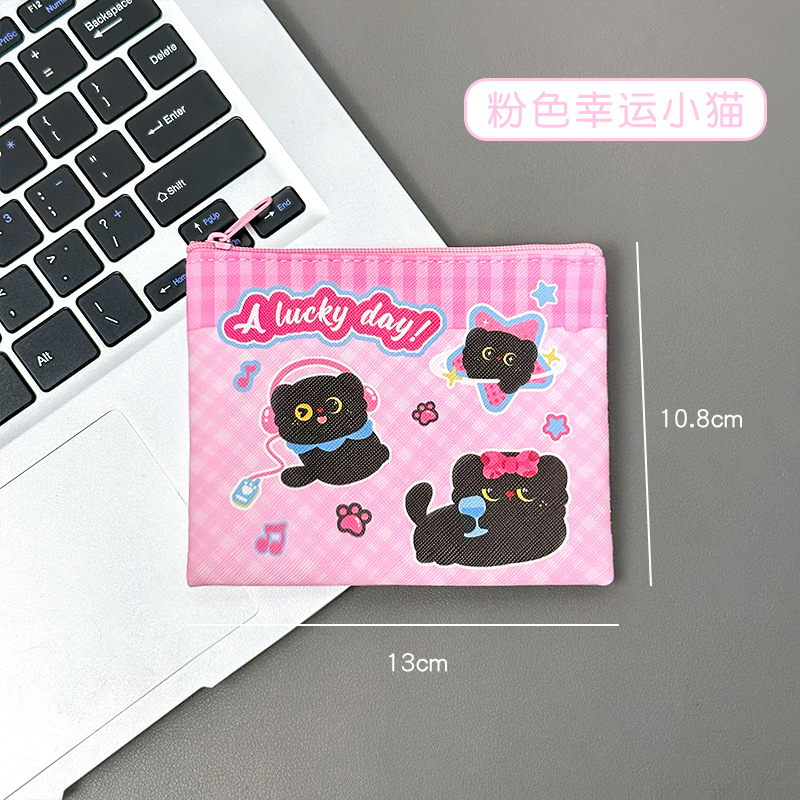 黑色小猫零钱包可爱苹果猫迷你零钱袋学生便携钥匙包收纳包钱包