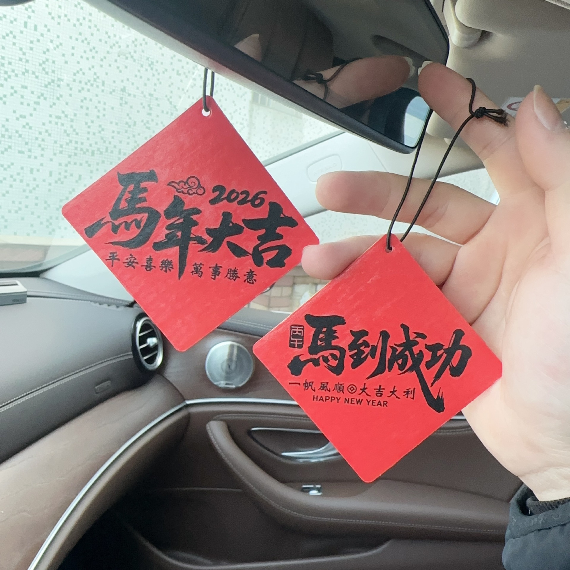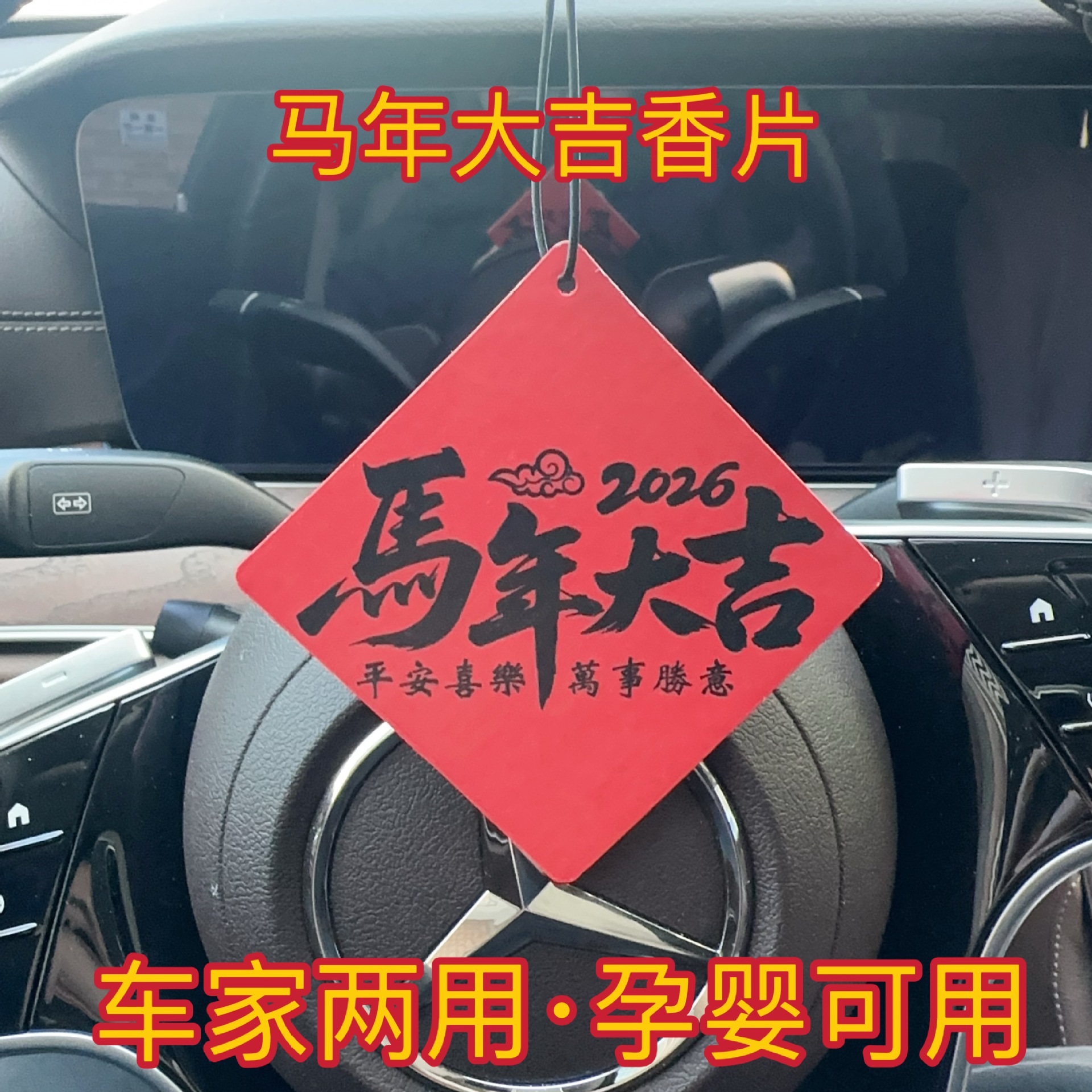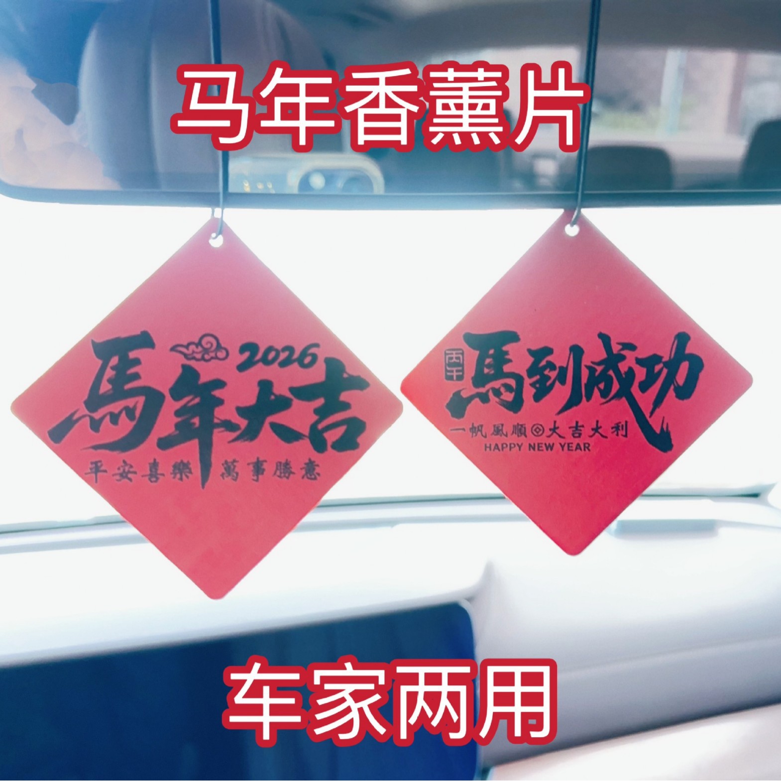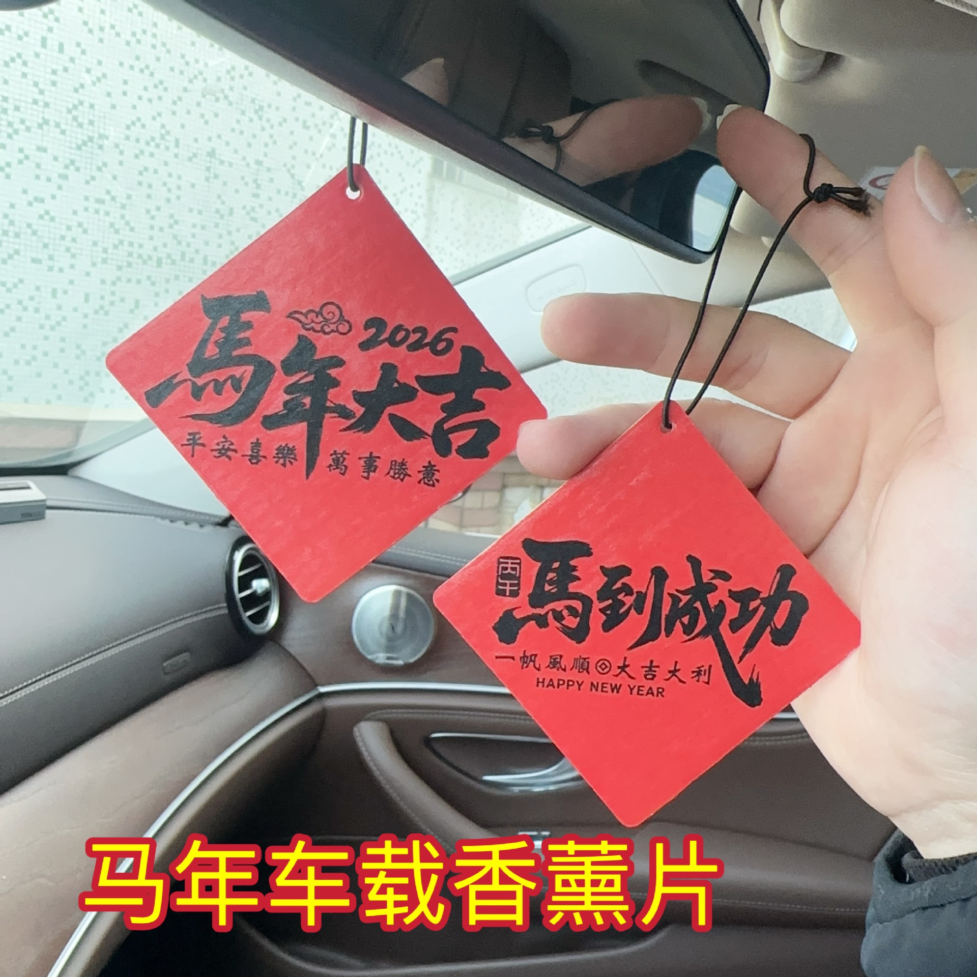 新款马年文字香片后视镜汽车香片车载香薰片挂件现货批发代发