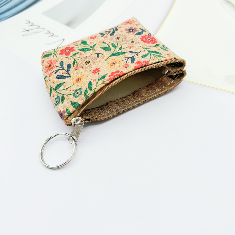 跨境TEMU Shein女士软木纹零钱包迷你硬币袋时尚软拉链硬币小钱包