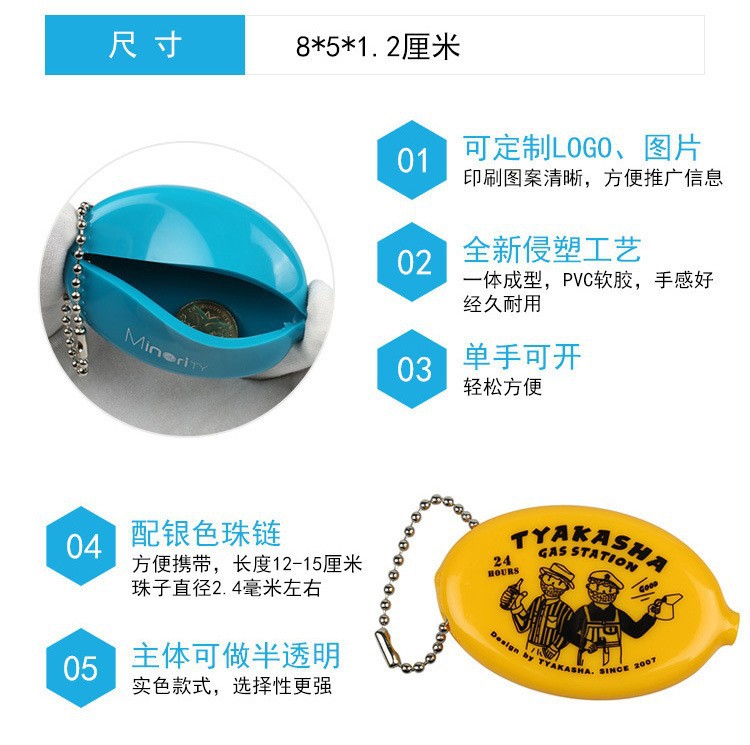 PVC软胶硬币包糖果色现货圆形椭圆形零钱包收纳袋 定 制LOGO图案