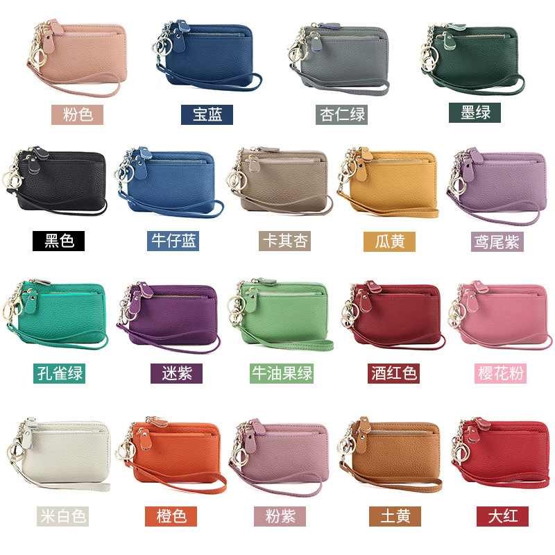 跨境头层牛皮手拿小钱包多卡位钥匙扣硬币零钱袋手拎真皮零钱包女