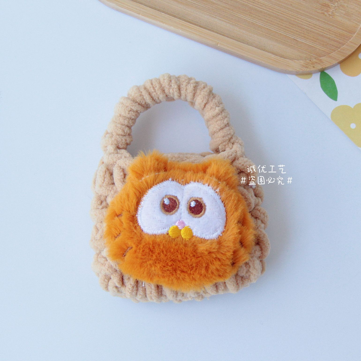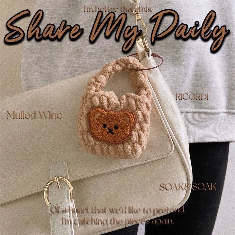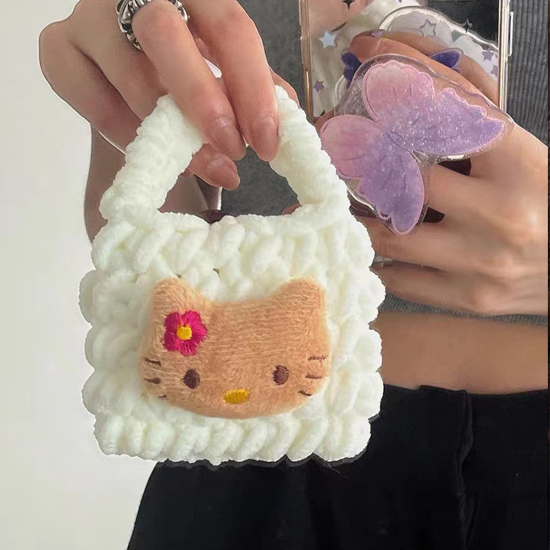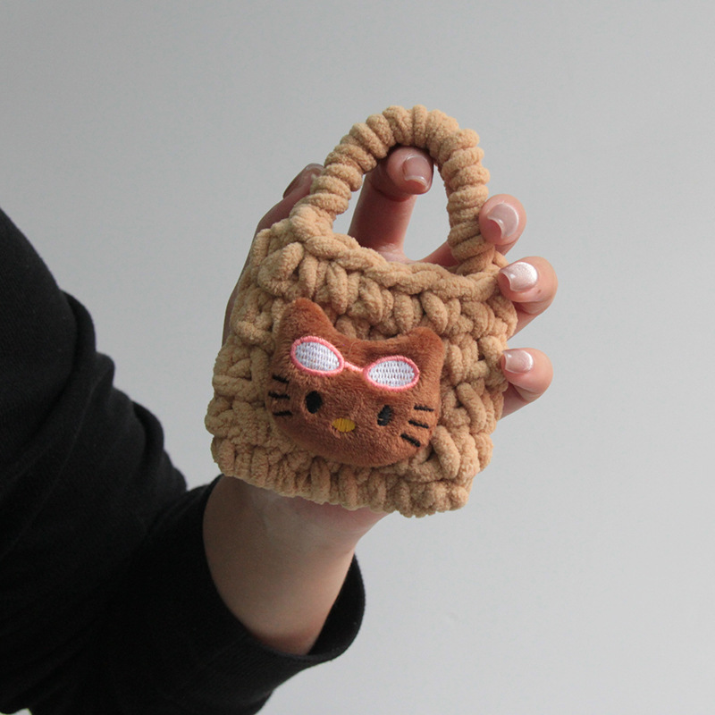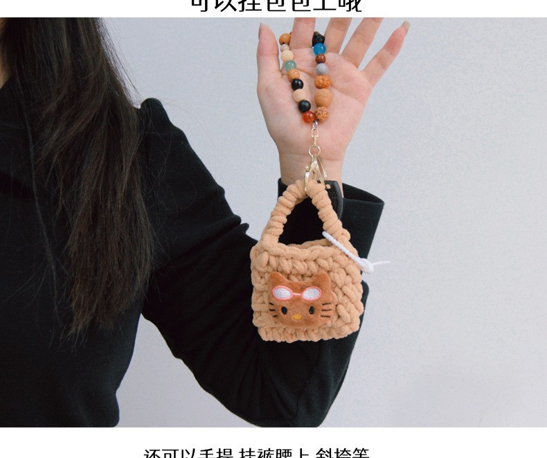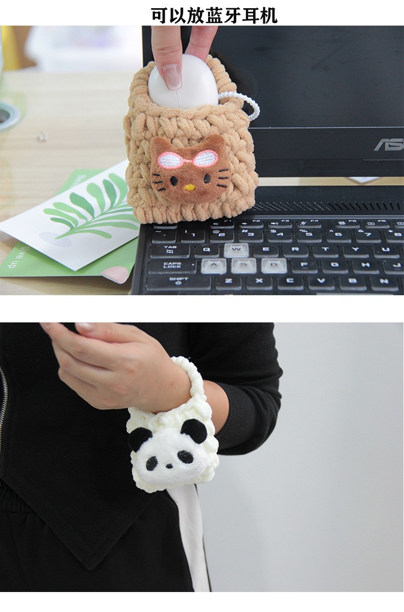 热卖卡通毛绒编织零钱包随身耳机线收纳袋可爱少女心手工钩耳机包