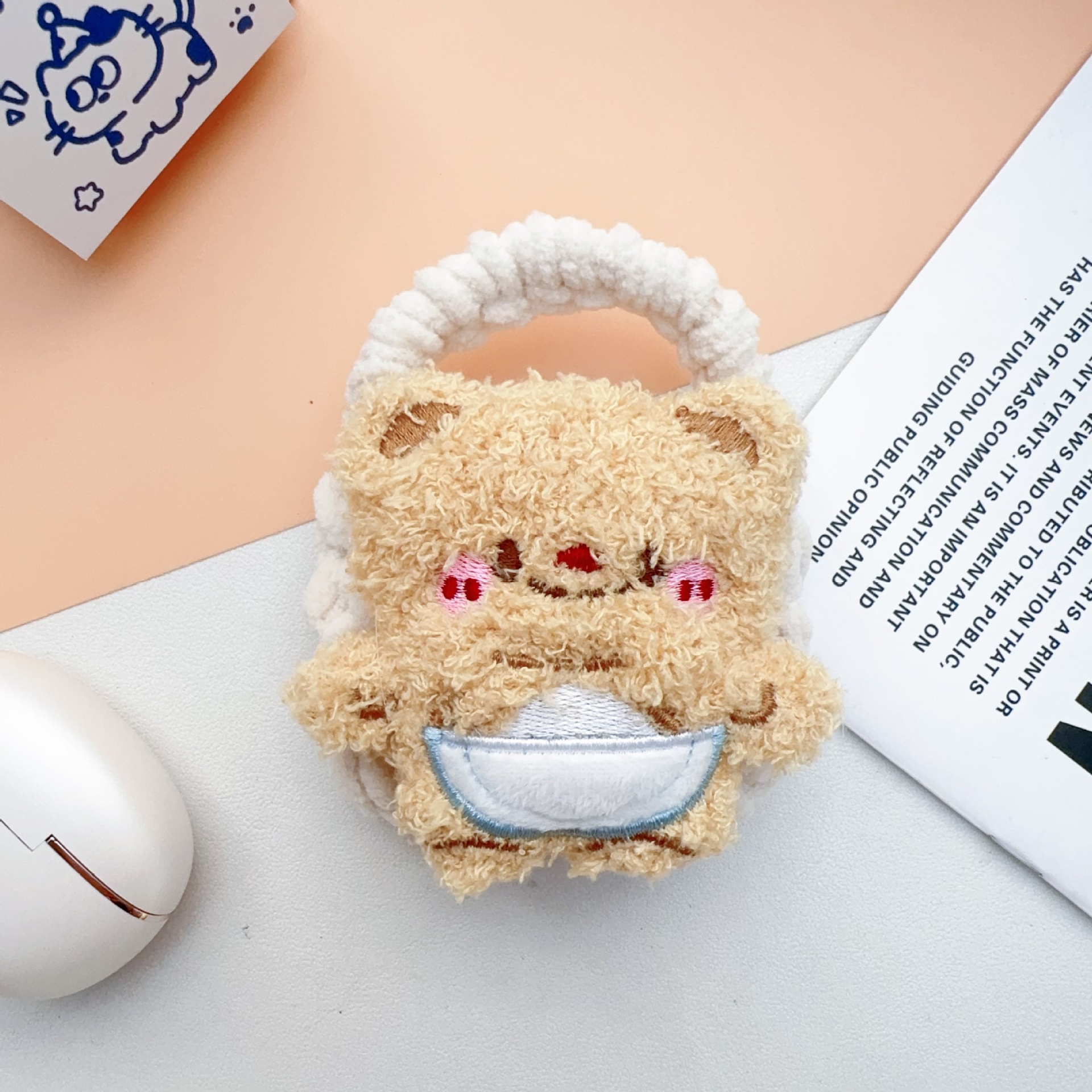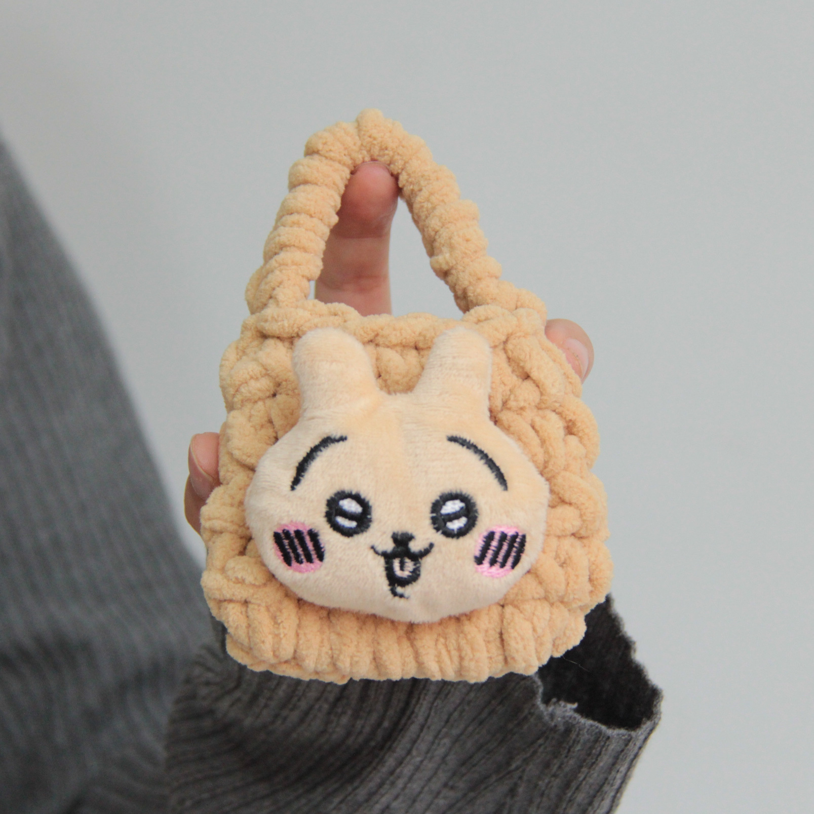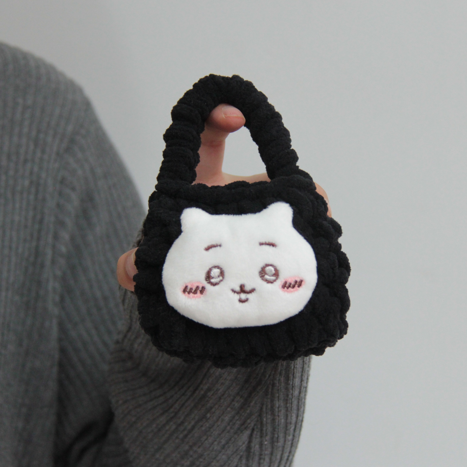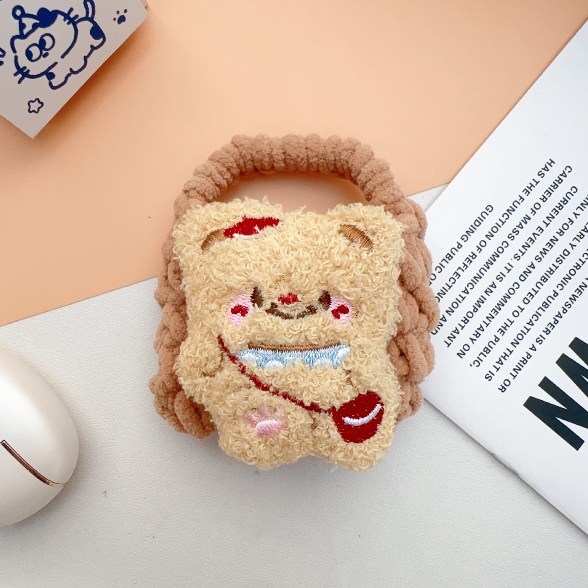 热卖卡通毛绒编织零钱包随身耳机线收纳袋可爱少女心手工钩耳机包
