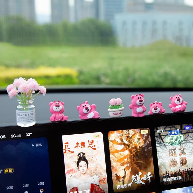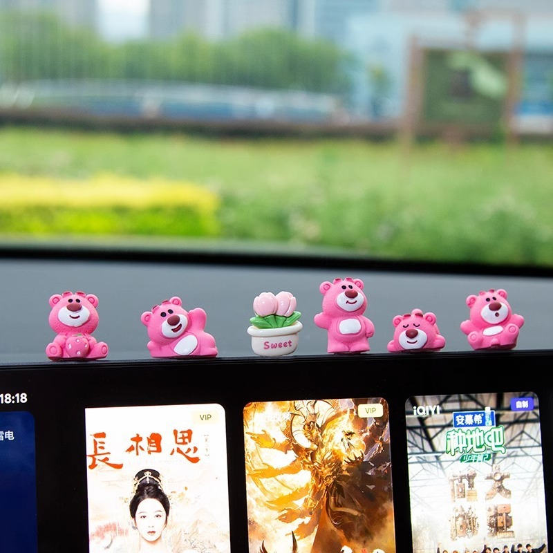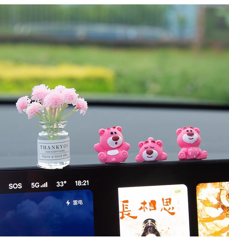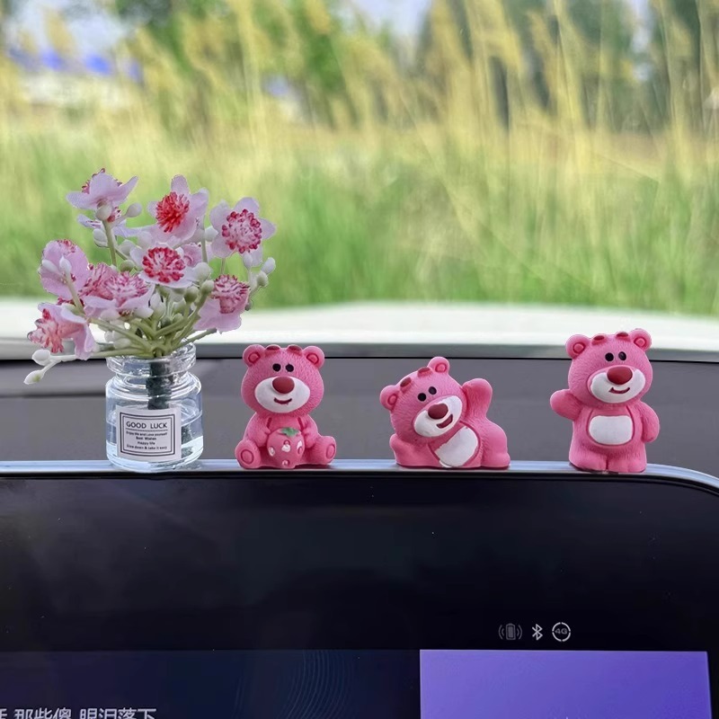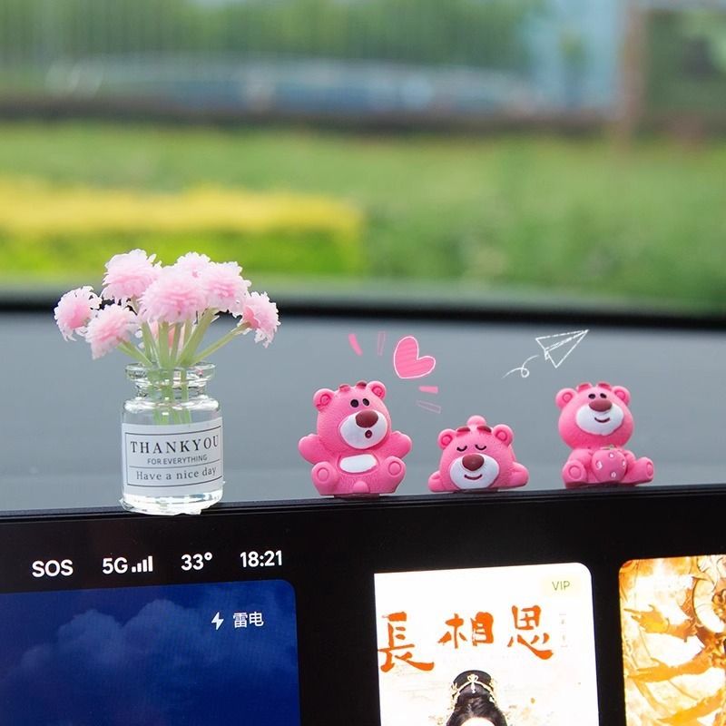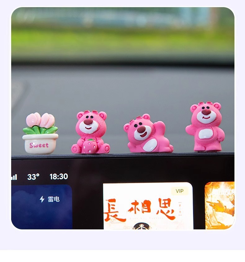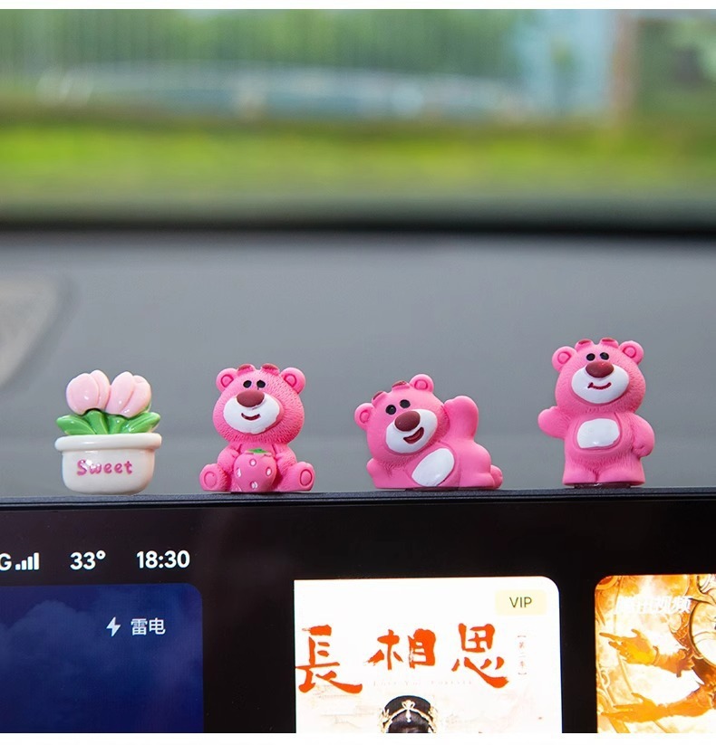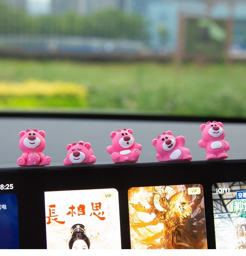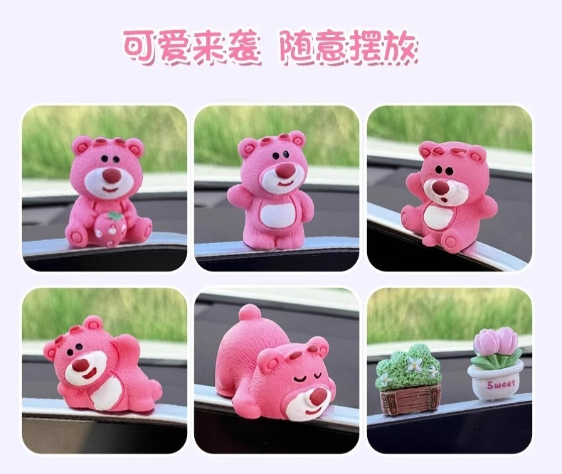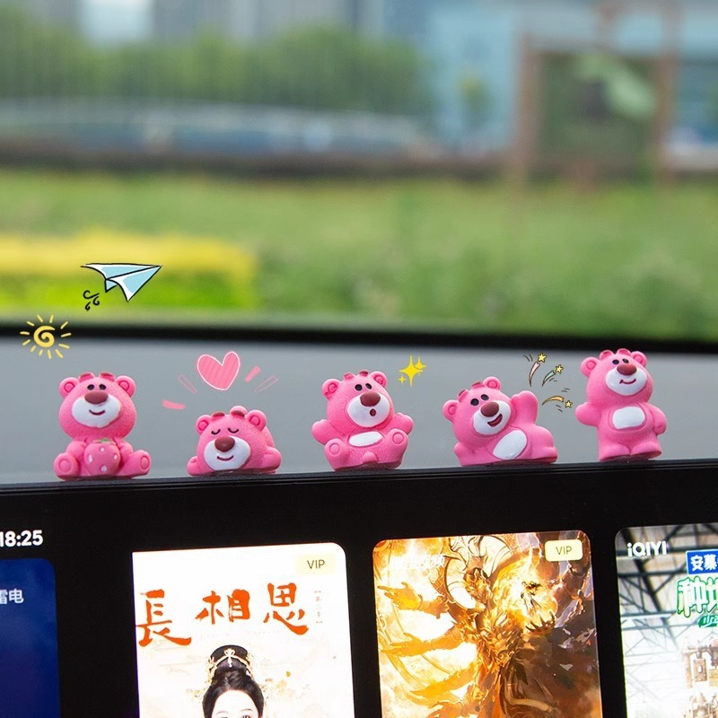 汽车摆件可爱草莓熊中控屏幕解压小公仔车内饰品摆件网红装饰摆件