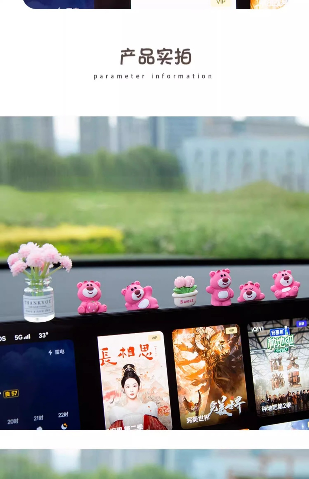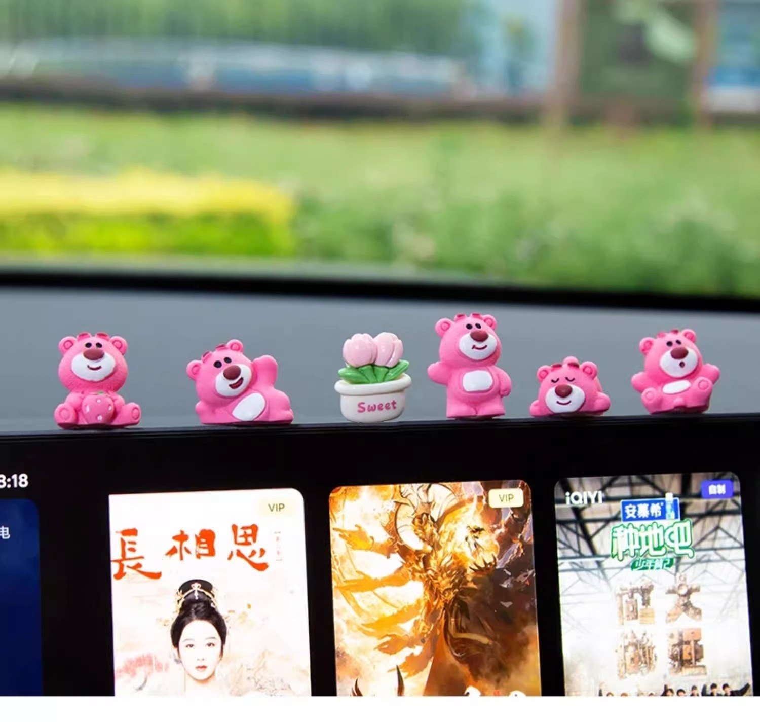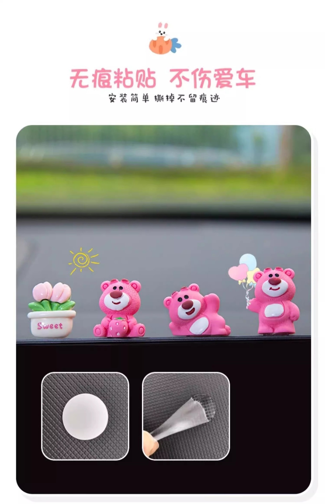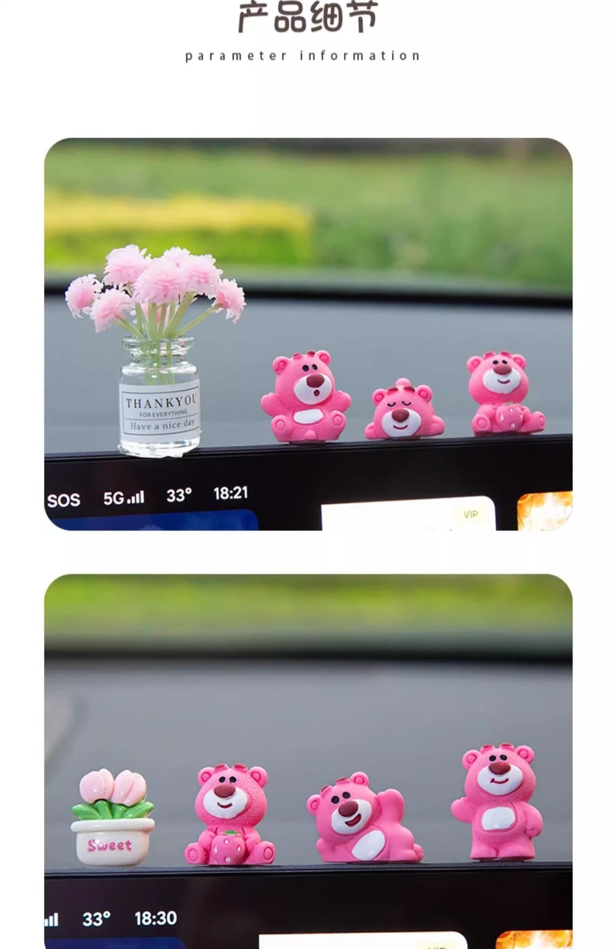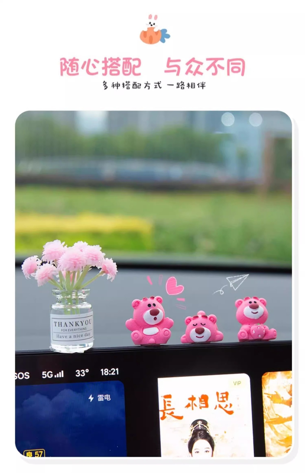 汽车摆件可爱草莓熊中控屏幕解压小公仔车内饰品摆件网红装饰摆件