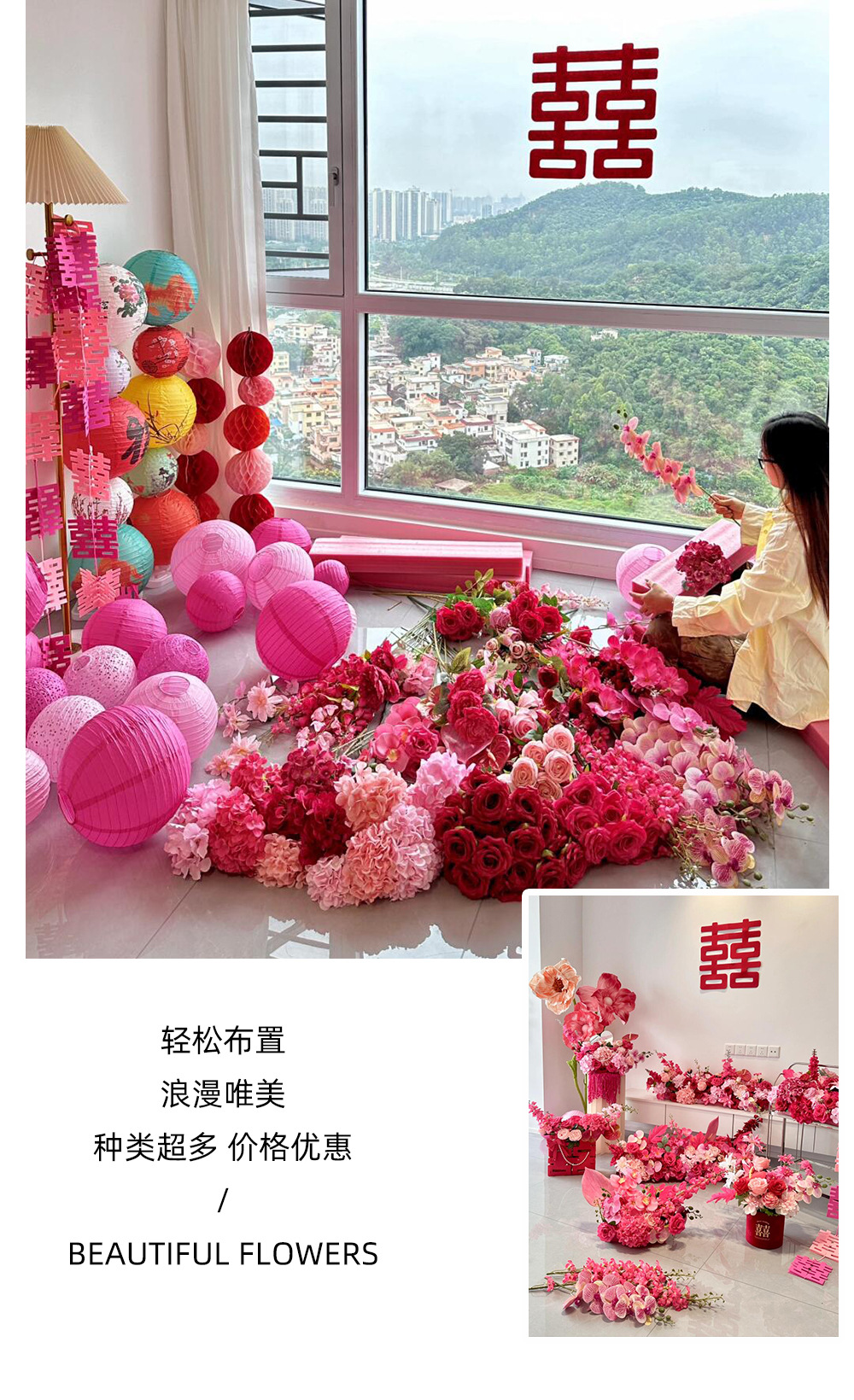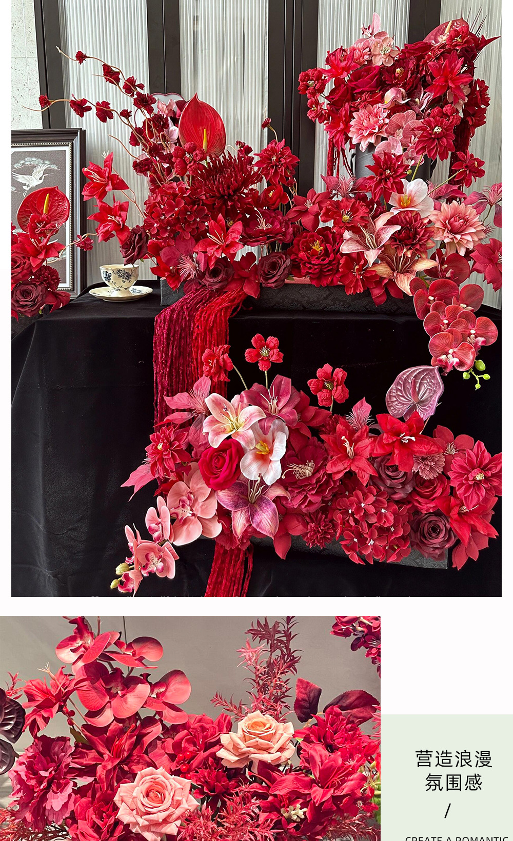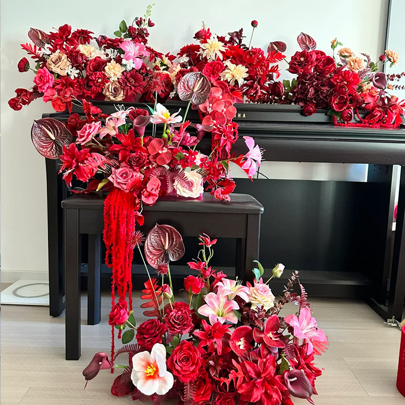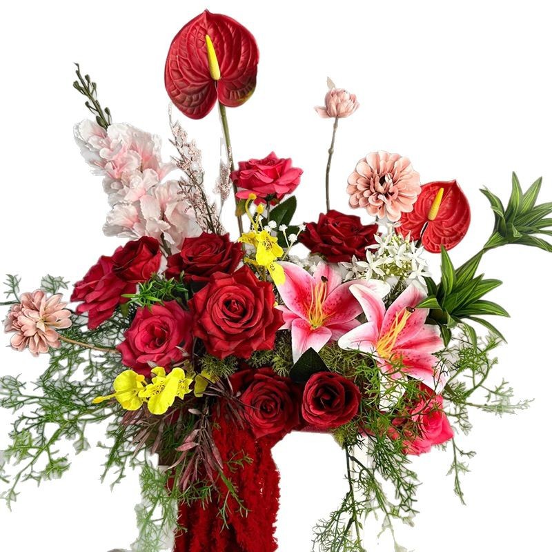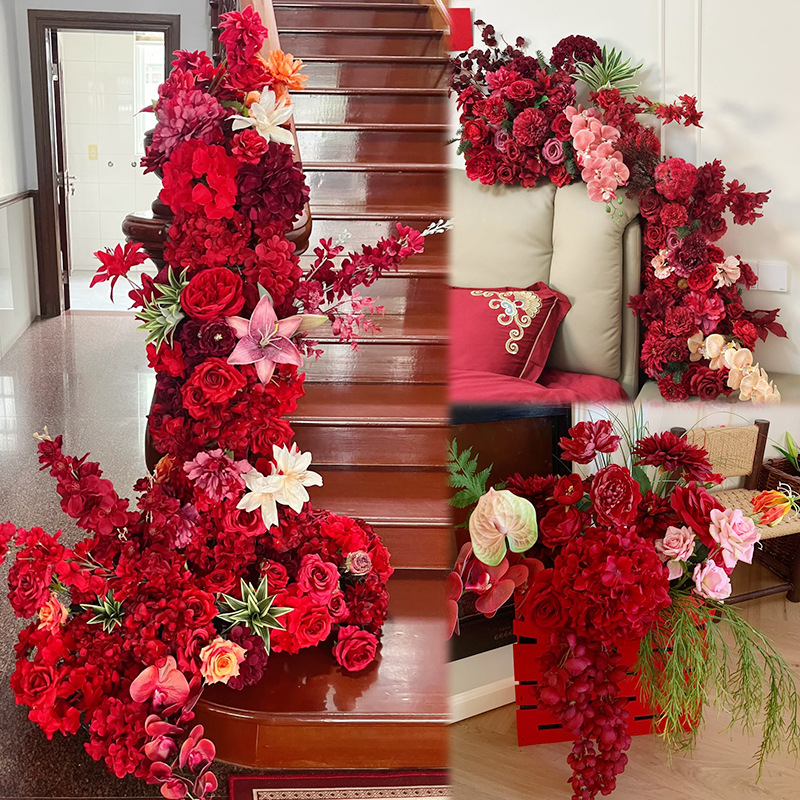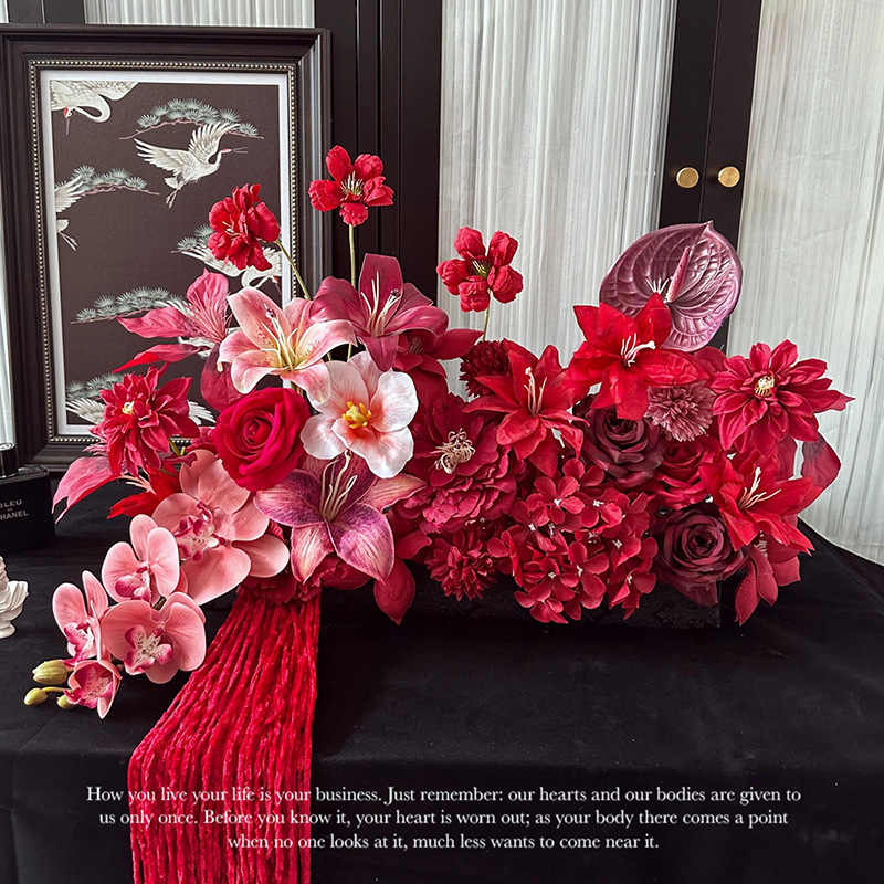 婚房摆件仿真花红色喜庆高级婚礼布置结婚插花抱抱桶假花仿真花艺