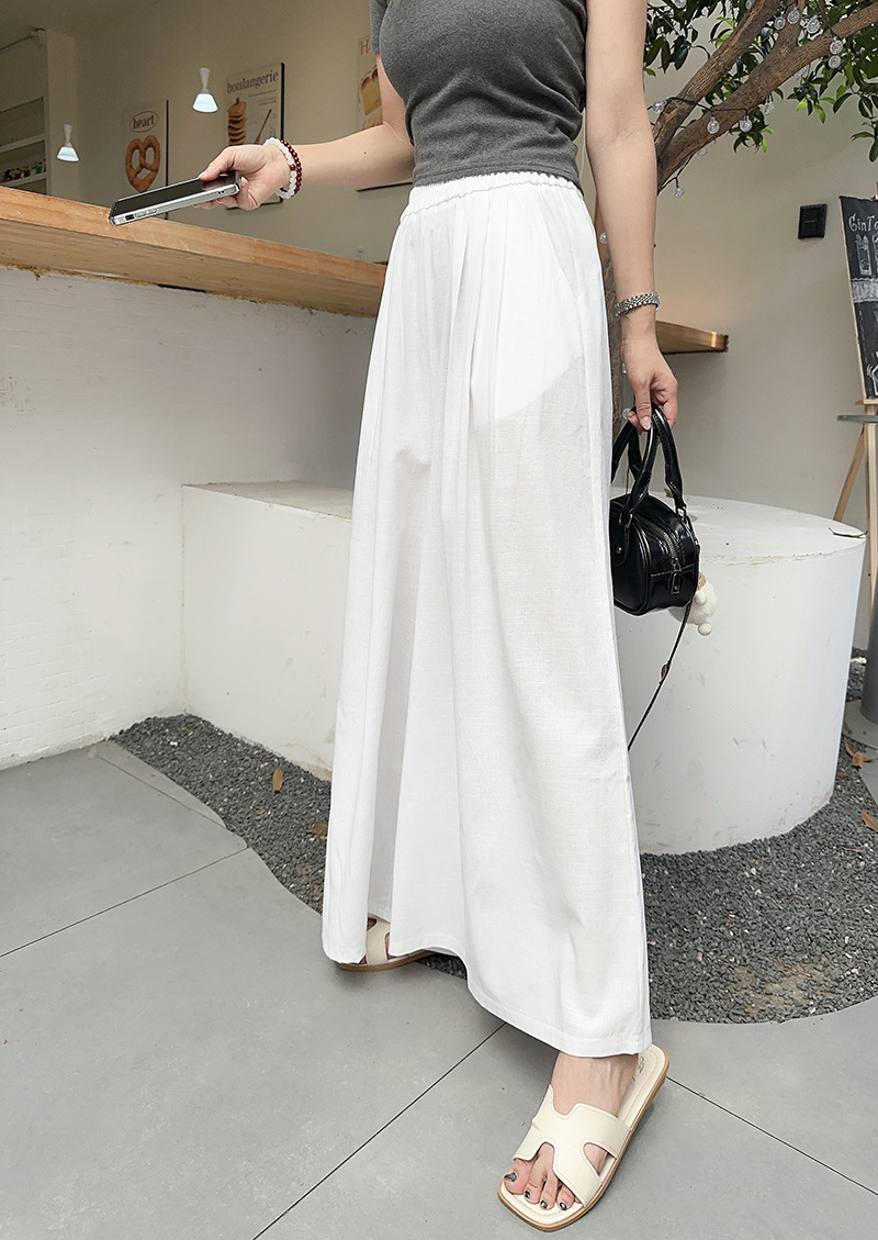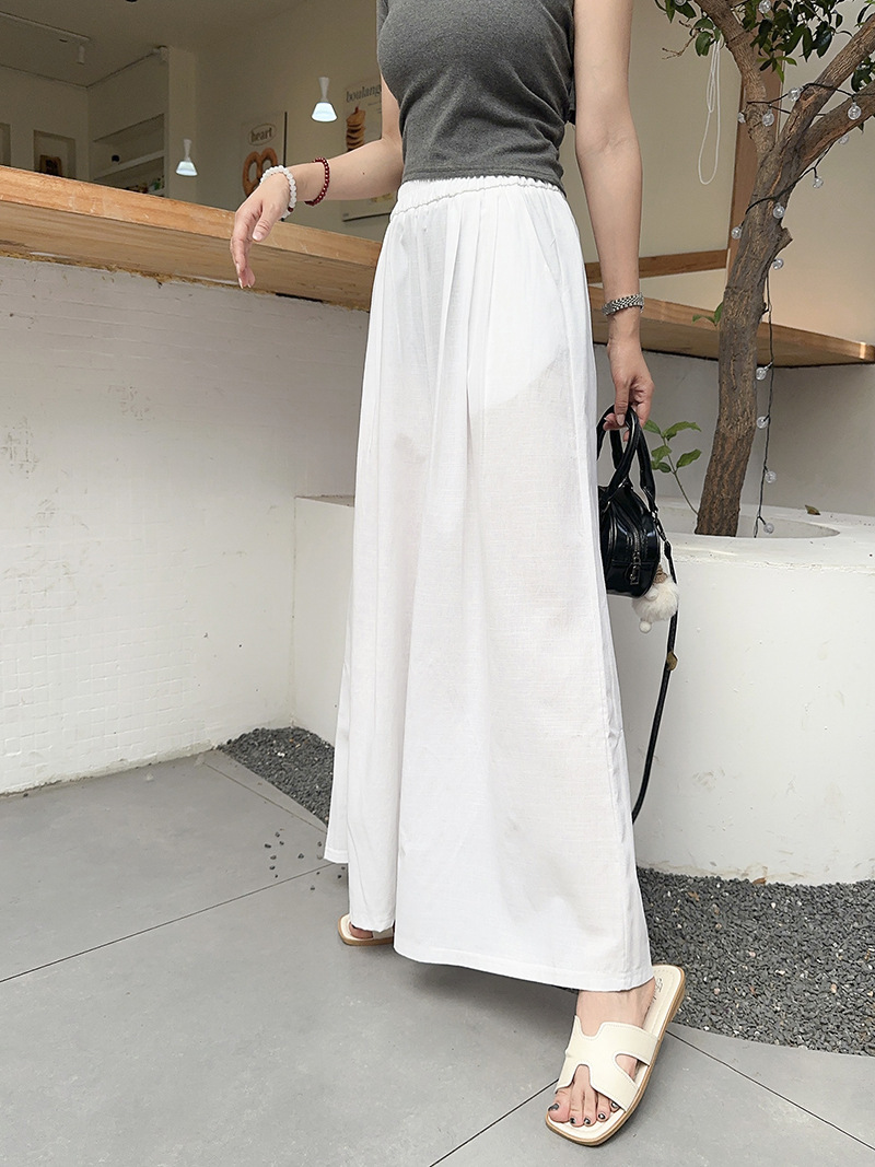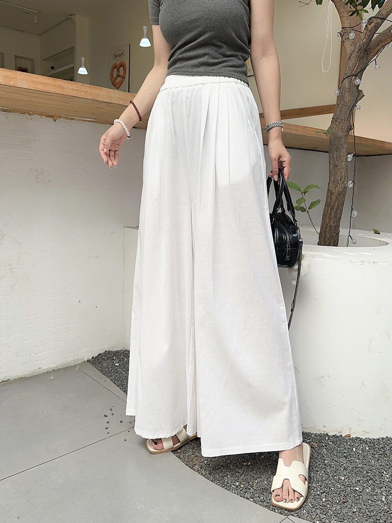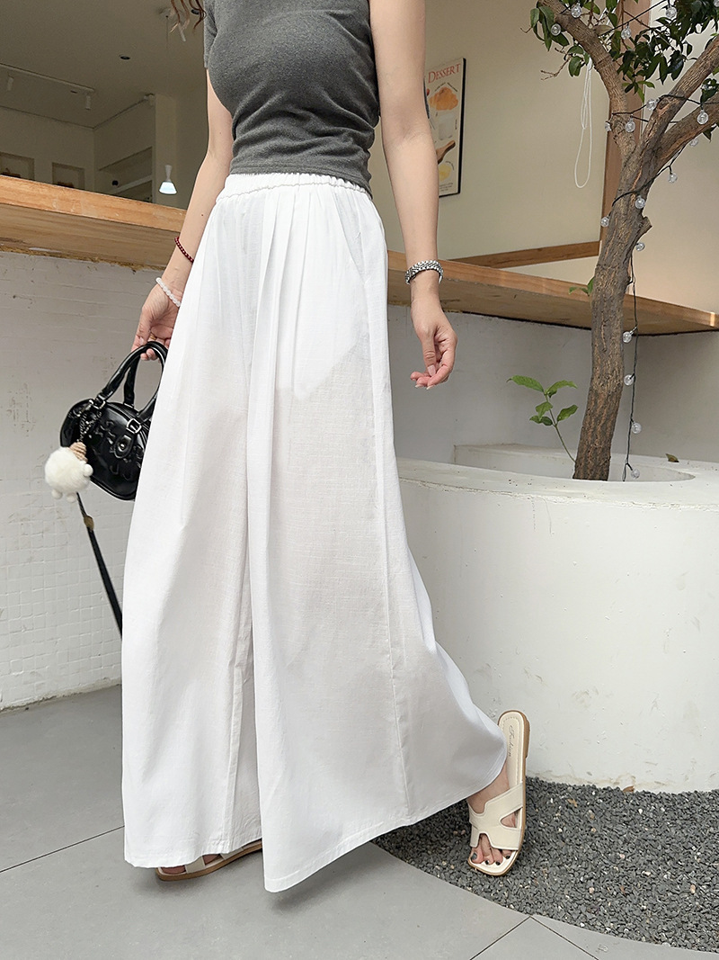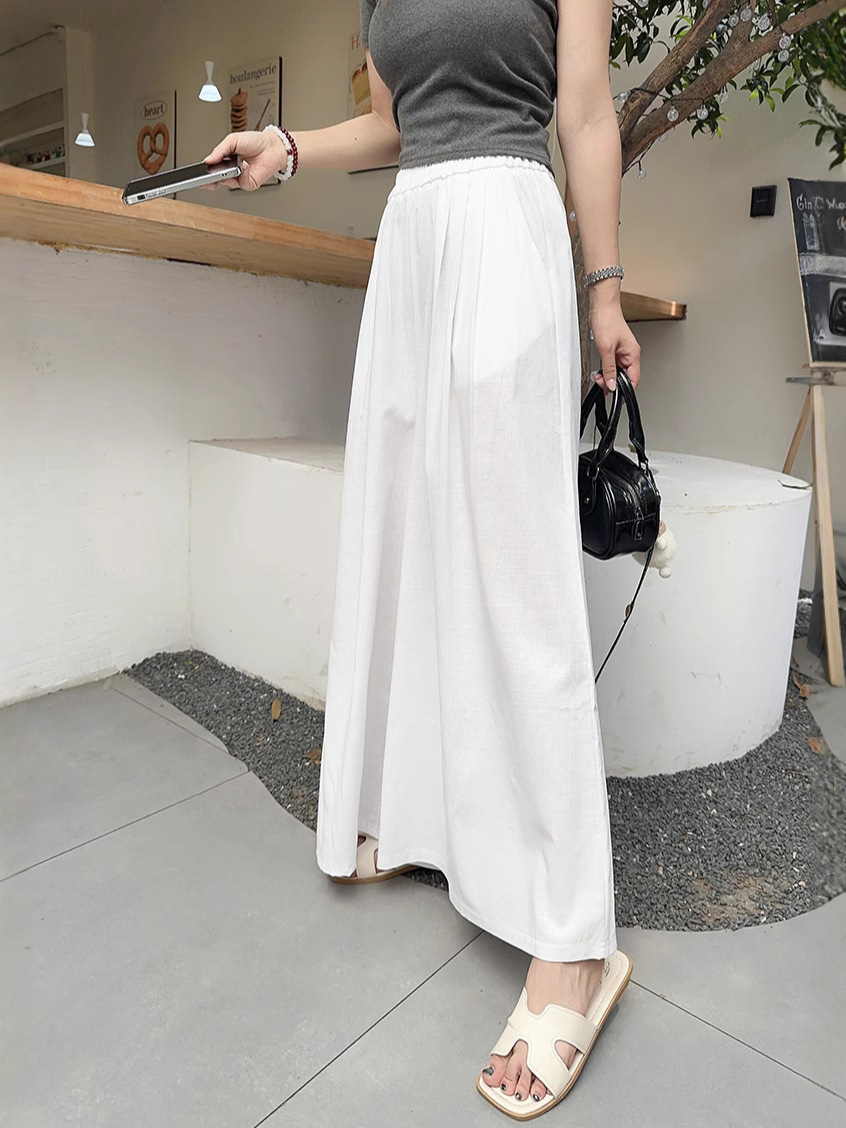 白色棉麻感山本裤女夏薄2025新款高腰宽松垂感冰丝显瘦大摆阔腿裤