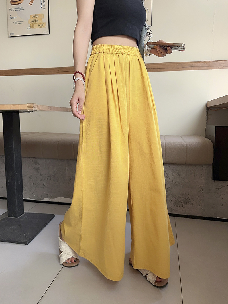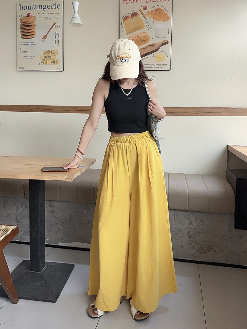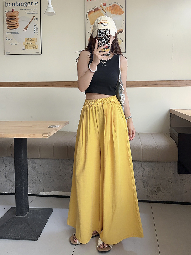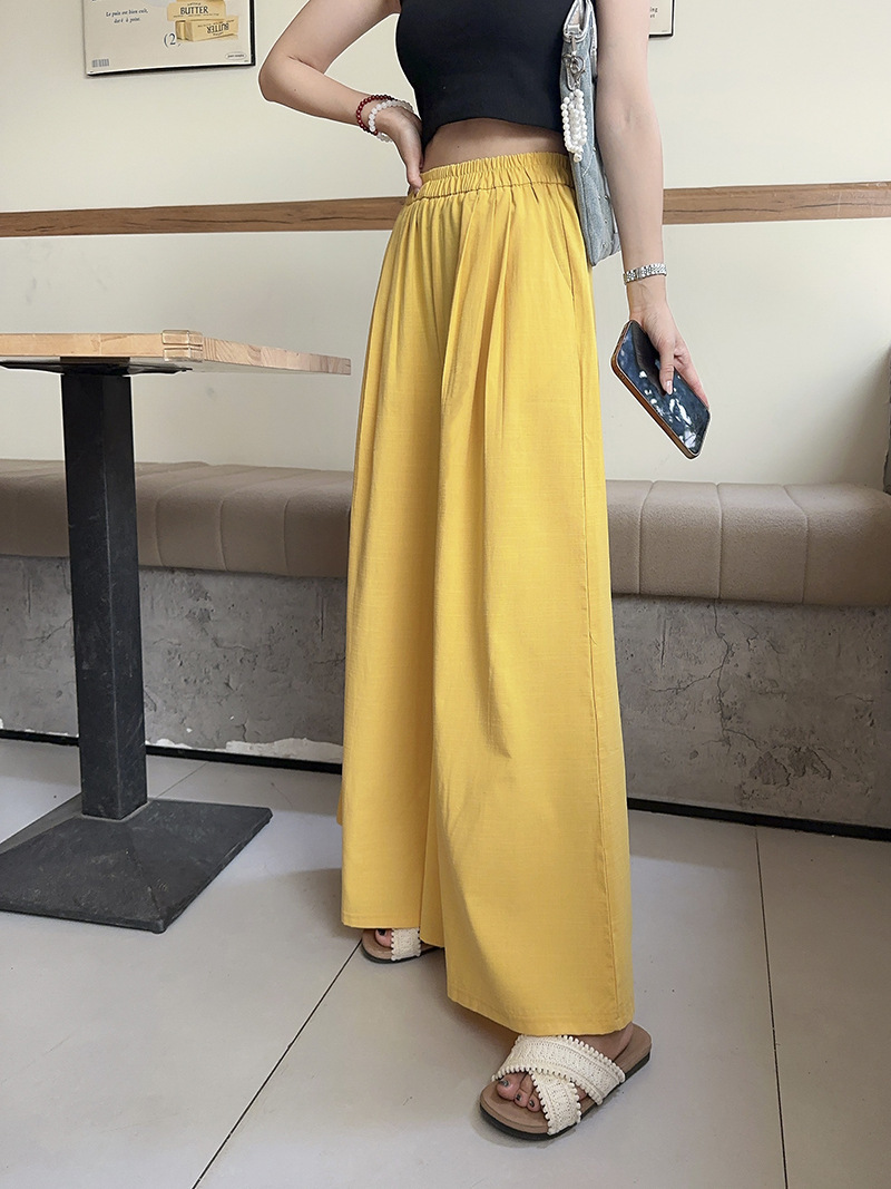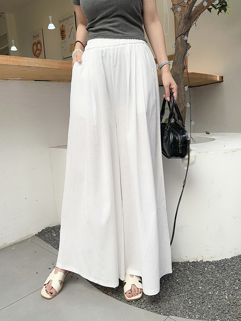 白色棉麻感山本裤女夏薄2025新款高腰宽松垂感冰丝显瘦大摆阔腿裤