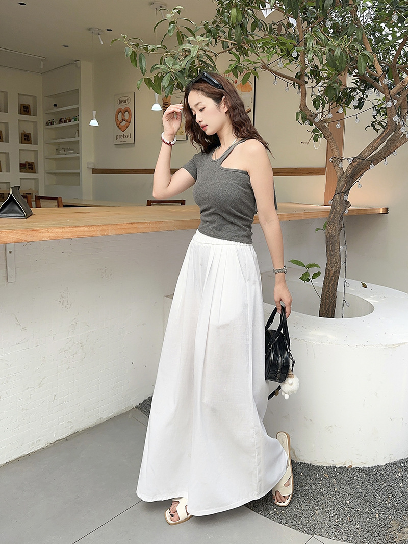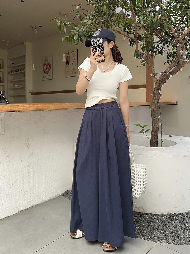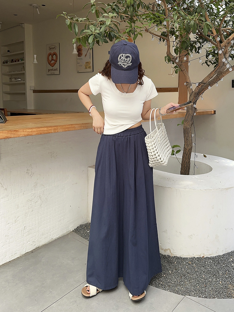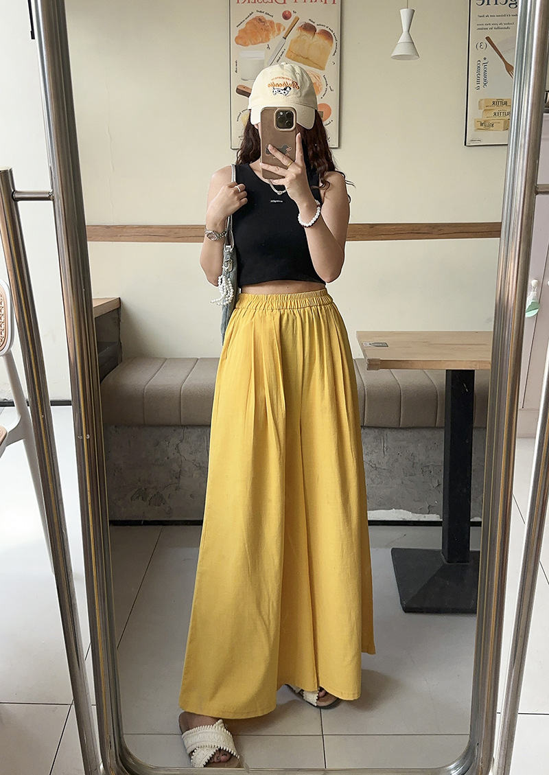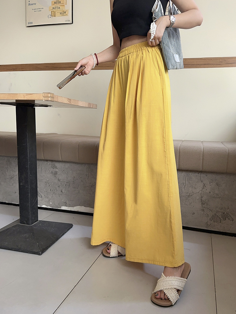 白色棉麻感山本裤女夏薄2025新款高腰宽松垂感冰丝显瘦大摆阔腿裤