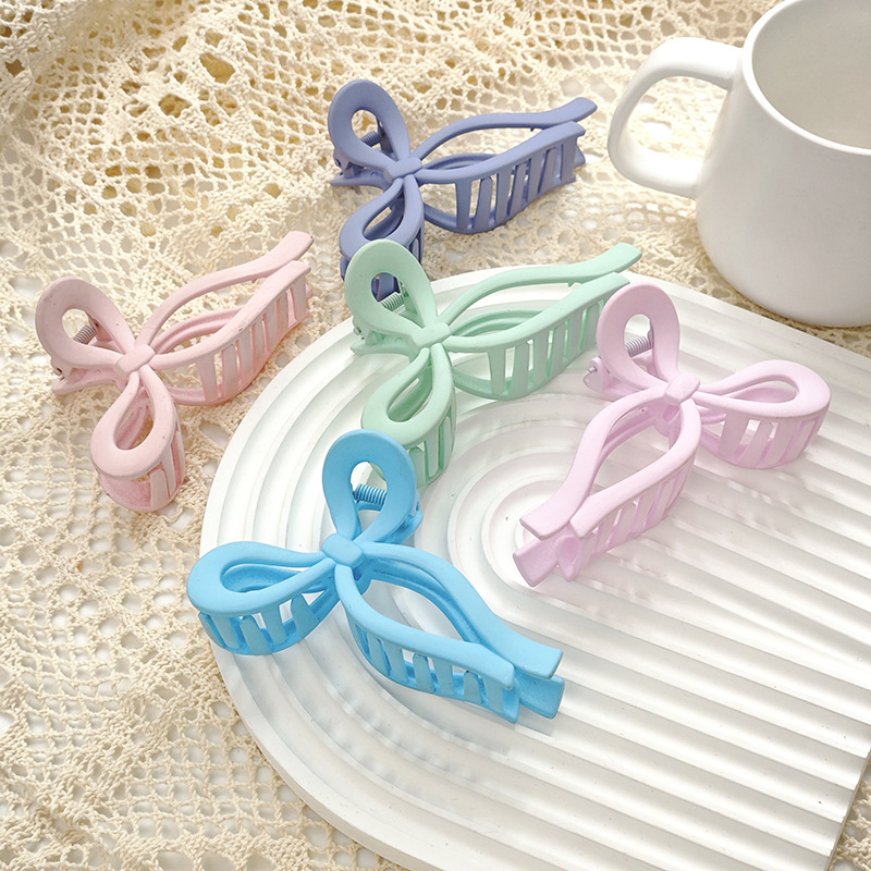 simple macaron color series bow claw clip high-grade back head hair clips hair accessories korean style large shark clip women