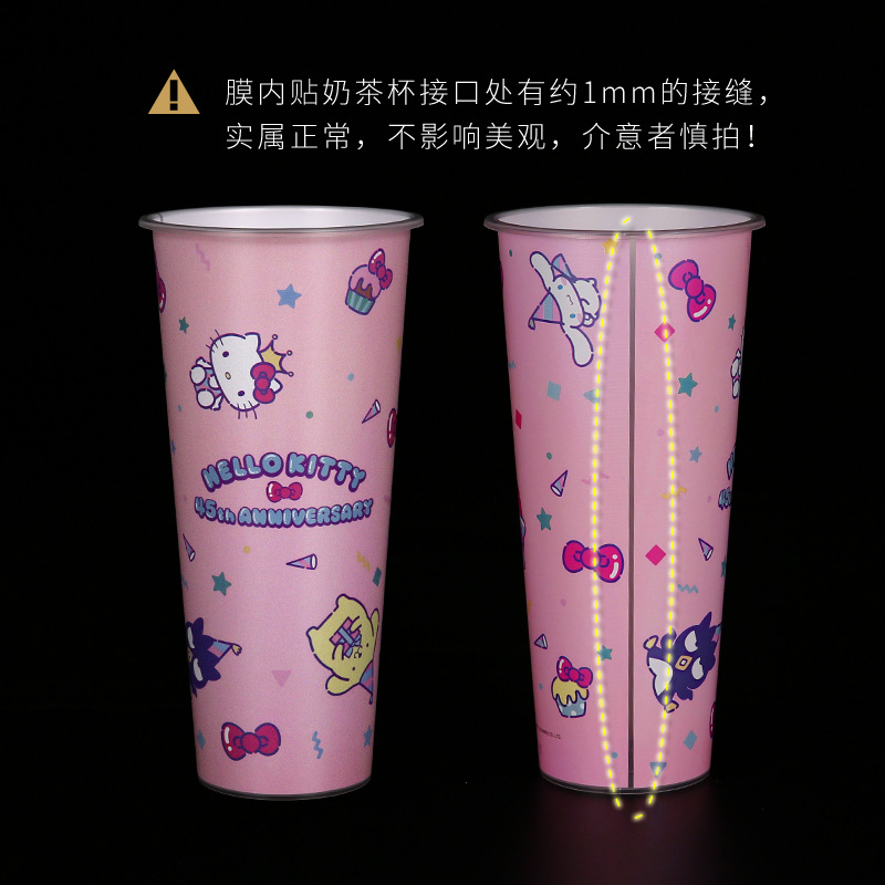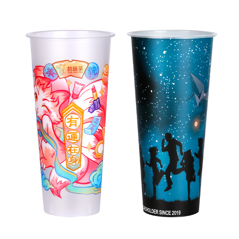 高端90口径注塑杯奶茶杯子磨砂杯膜内贴奶茶杯高档高级感图案