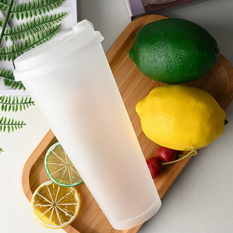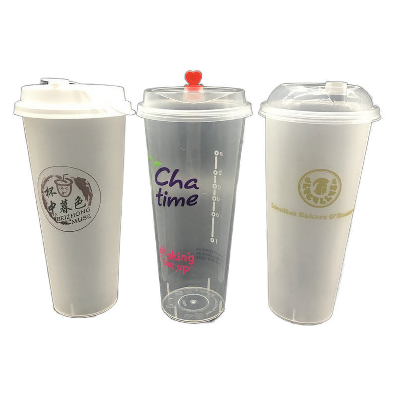 一次性PP注塑杯520ml650ml高脚奶茶杯U型饮料杯定制奶茶店专用