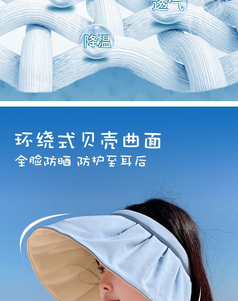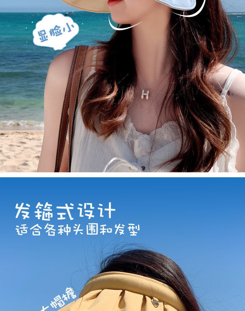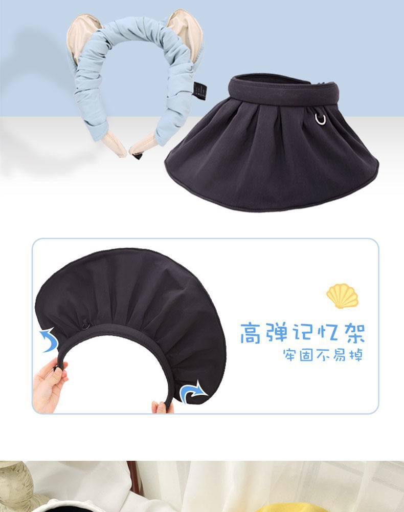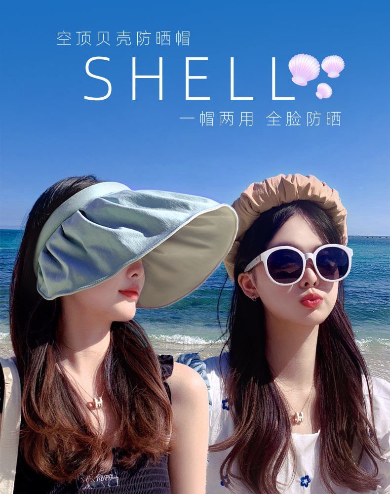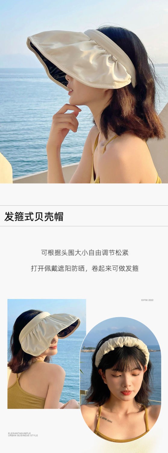 黑胶贝壳帽夏季防晒帽遮阳折叠发箍帽子女遮阳帽防晒空顶太阳帽子
