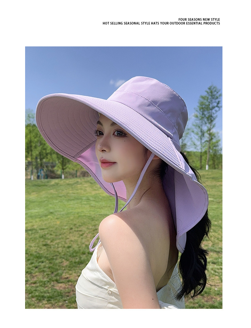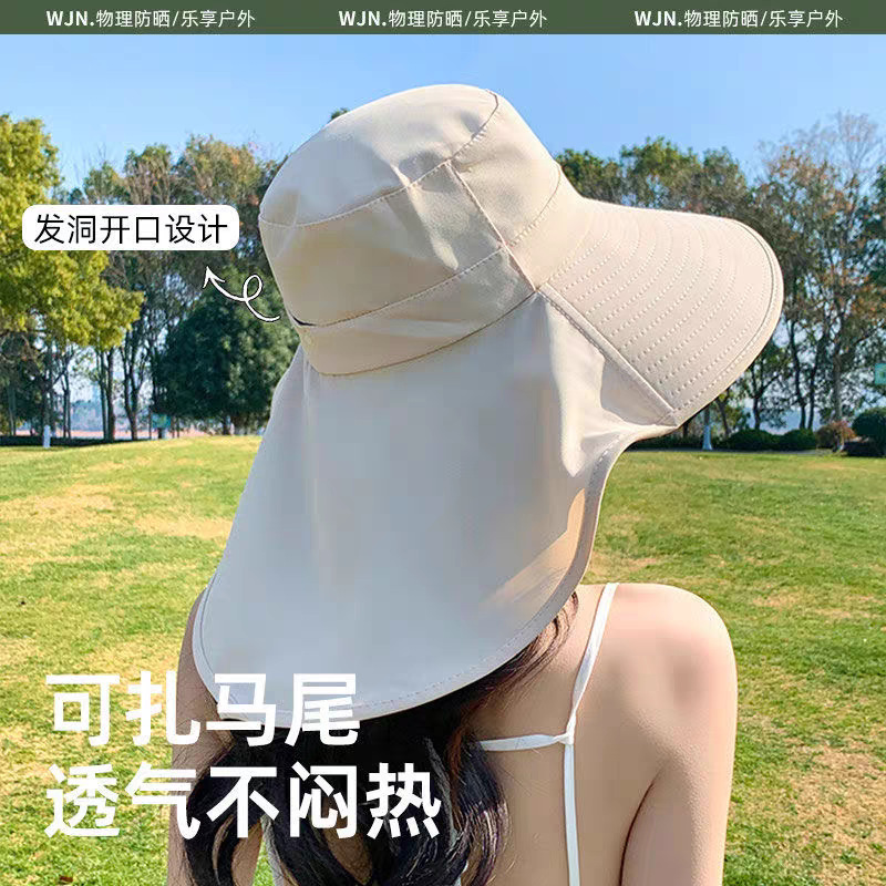 大帽檐防晒帽女夏季遮脸防紫外线披肩太阳帽户外骑车盆帽透气防晒