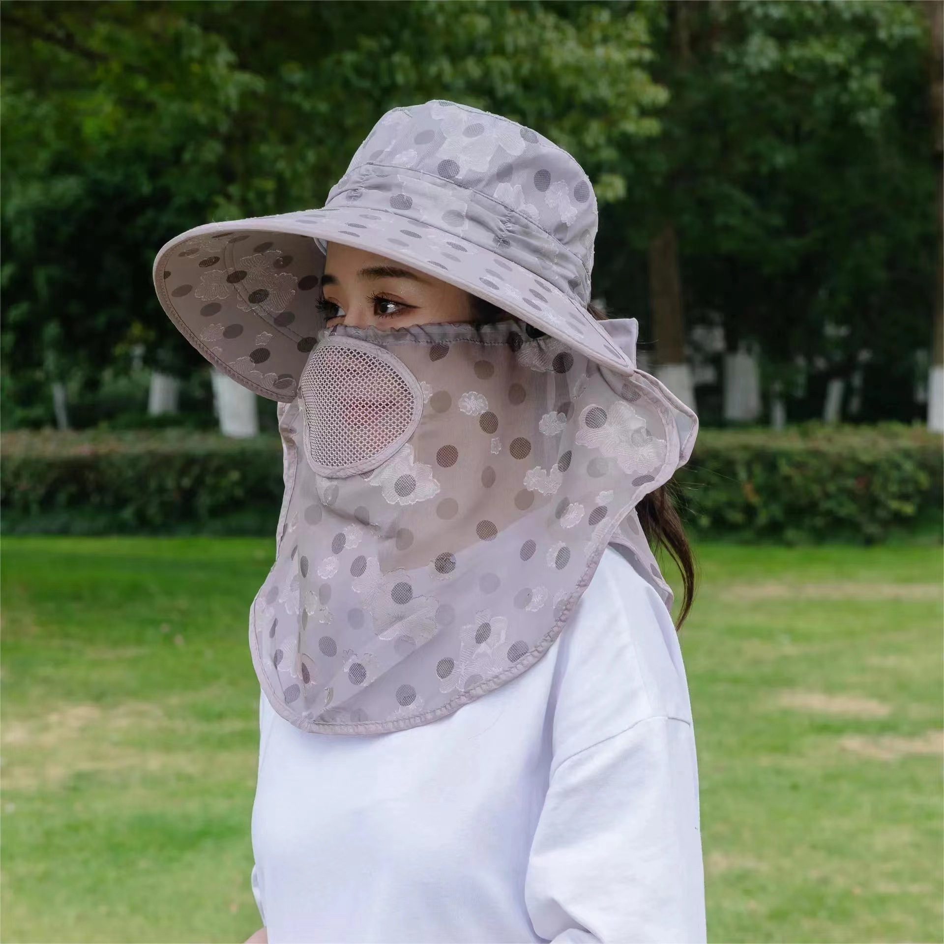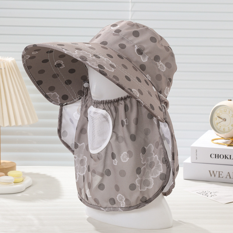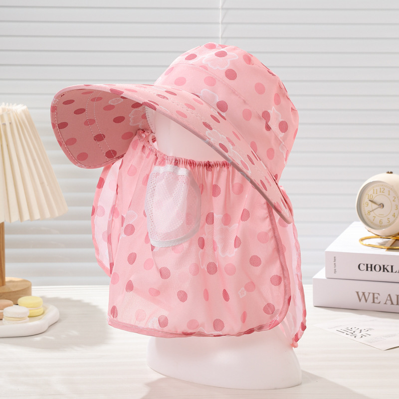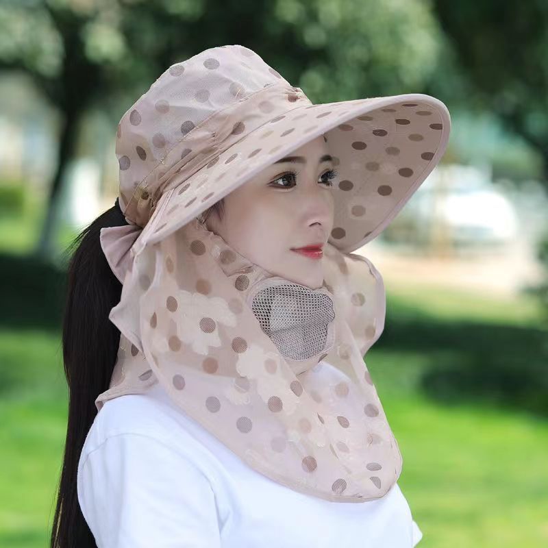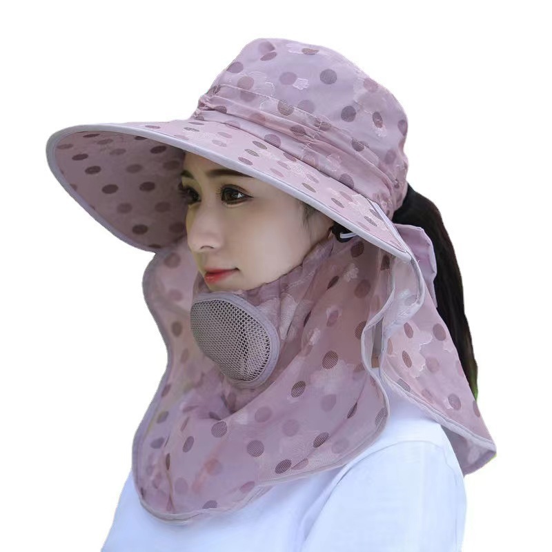 女遮阳防晒帽子采茶遮脸遮阳帽子韩版大檐口罩披肩户外骑车太阳帽
