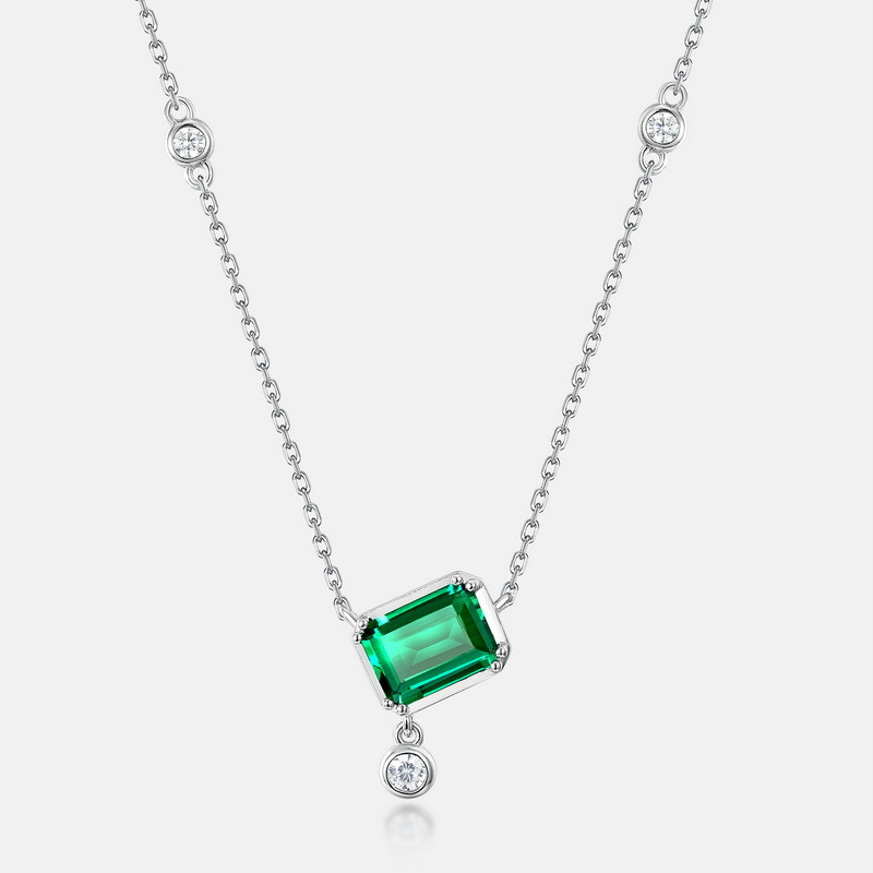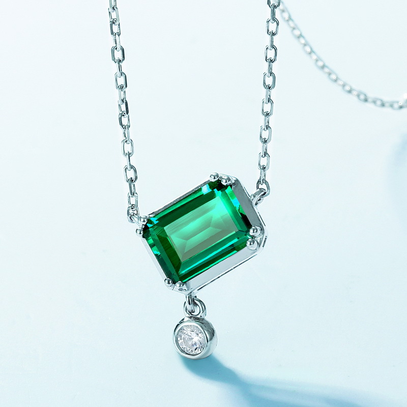 跨境新款几何培育祖母绿项链女S925银灵动彩宝复古锁骨链欧美轻奢