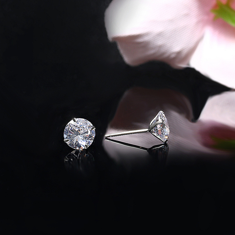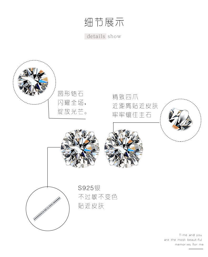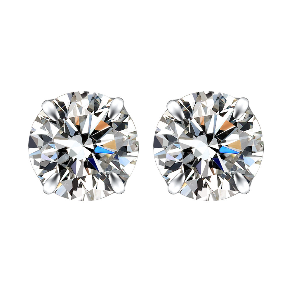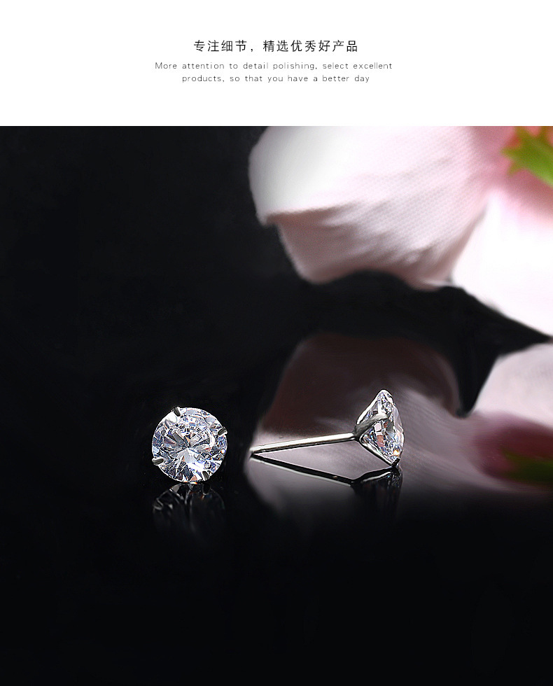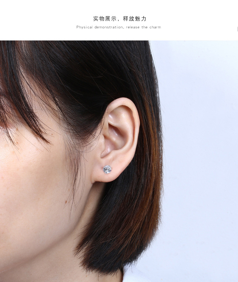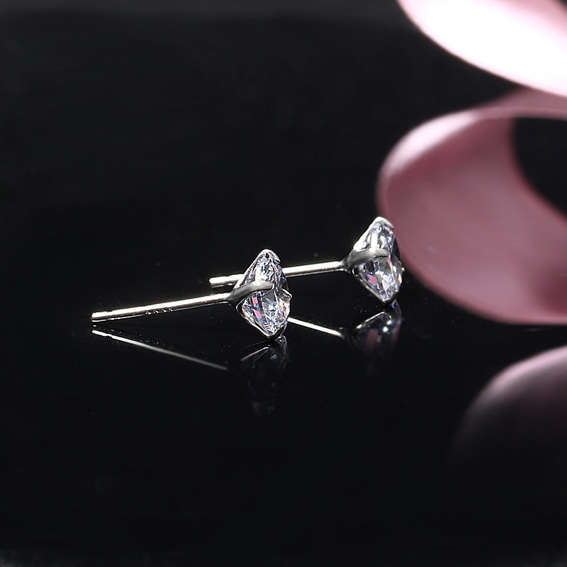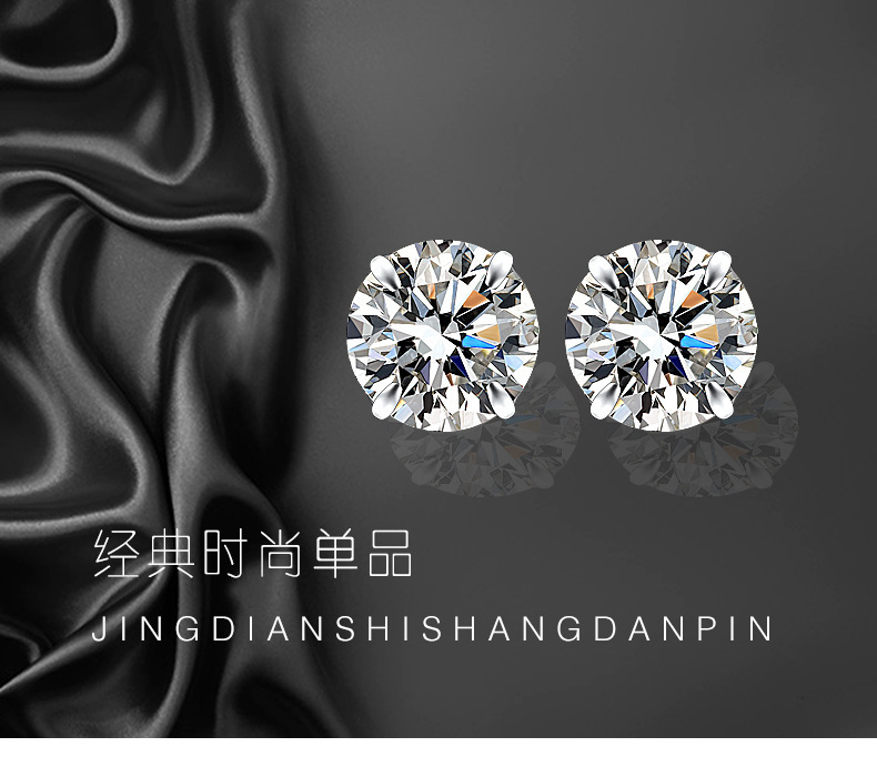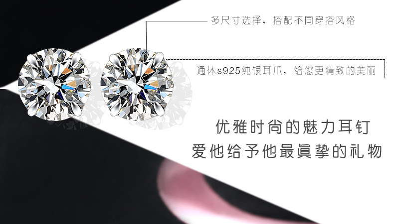 契爱 S925银四爪镶钻耳饰韩版简约耳环时尚气质男女锆石耳钉跨境