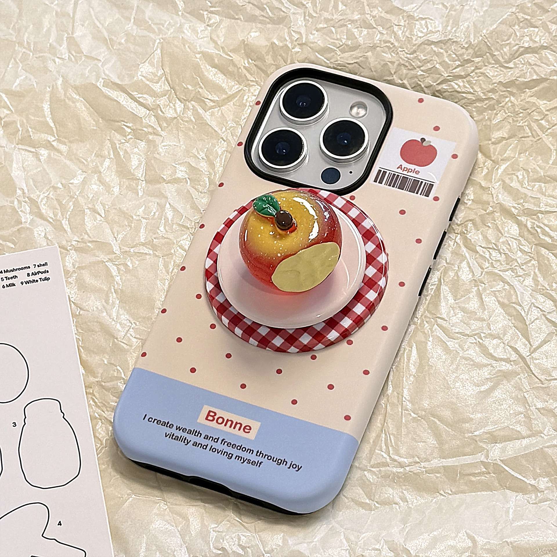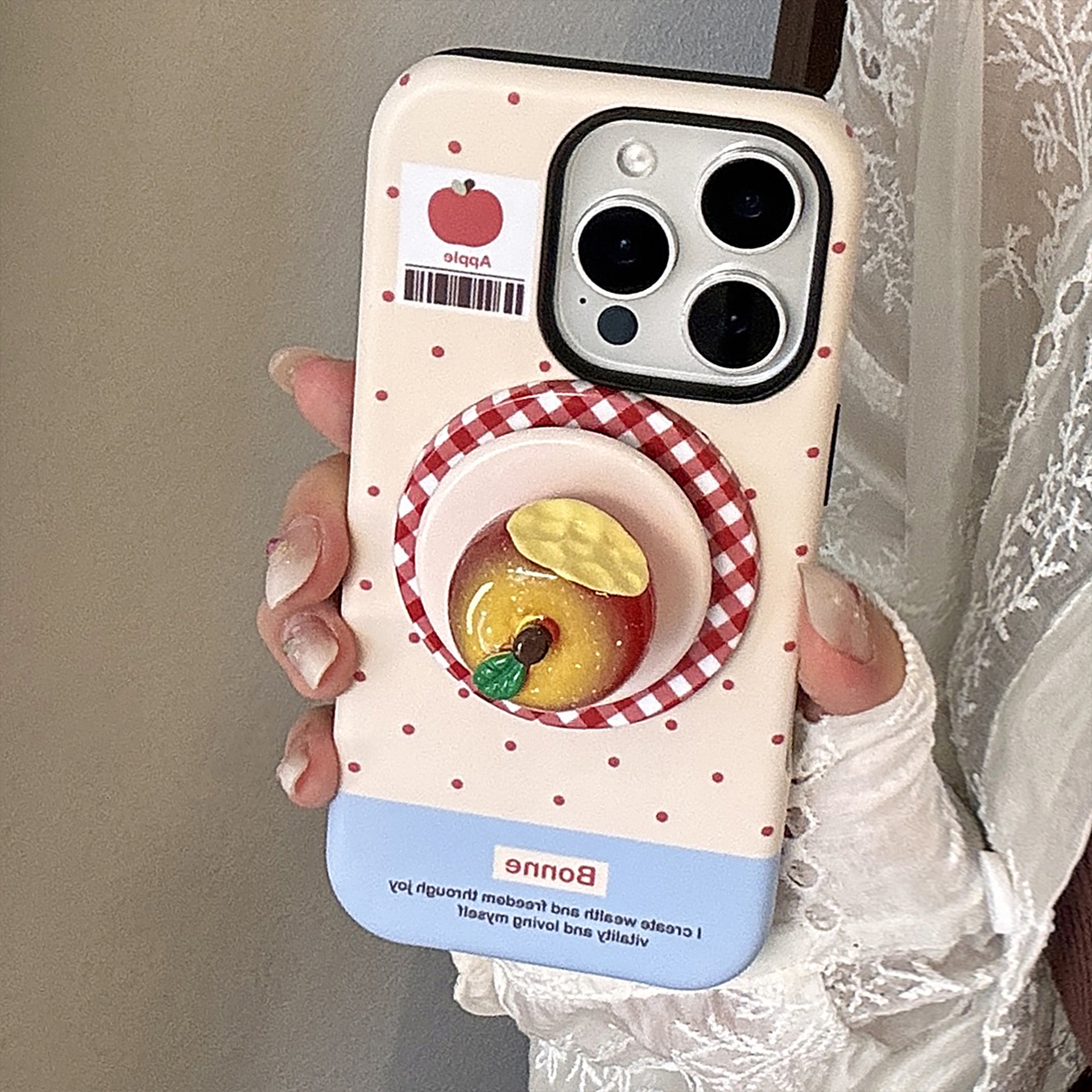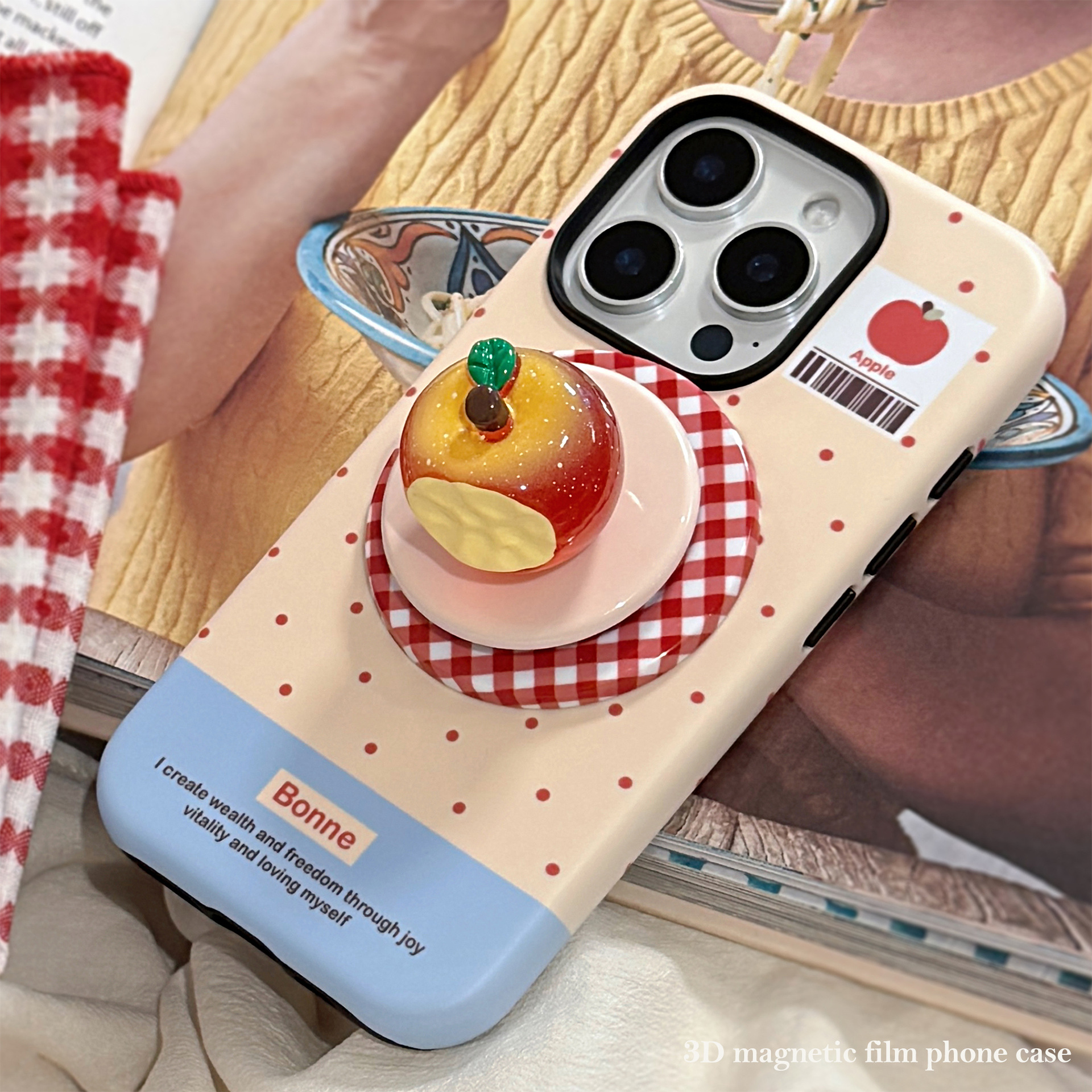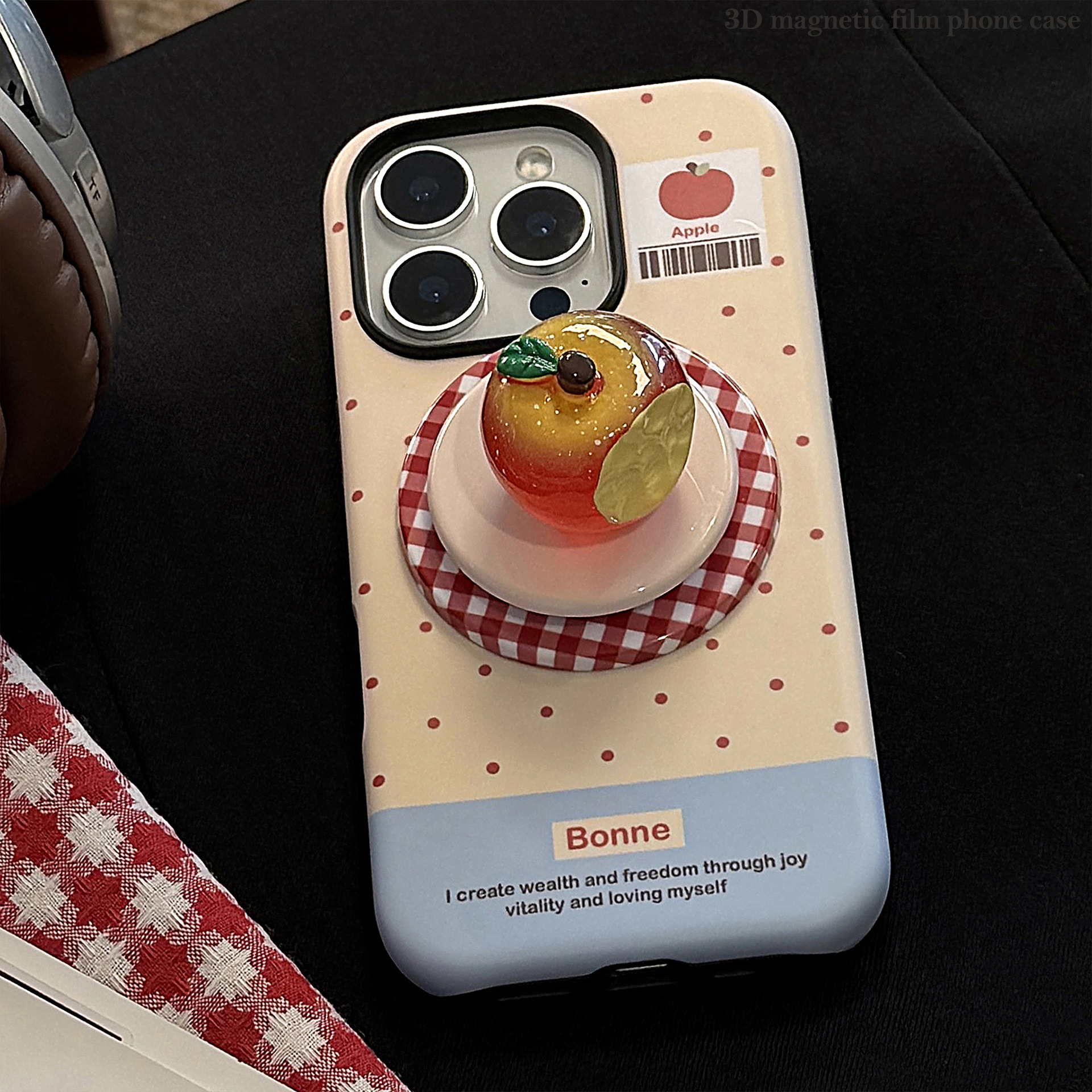 立体夜光水晶苹果16手机壳iPhone17promax适用14磁吸支架11韩系13
