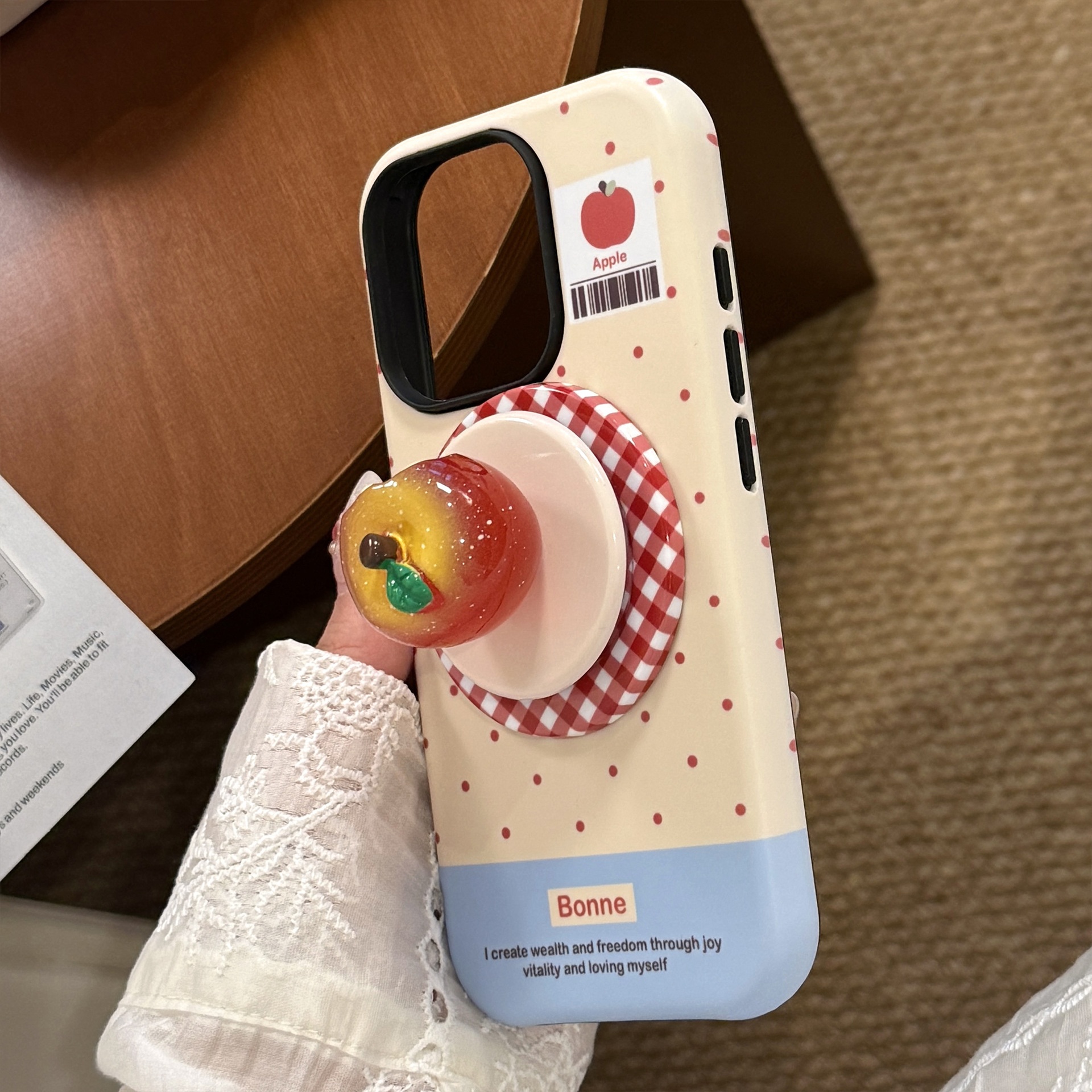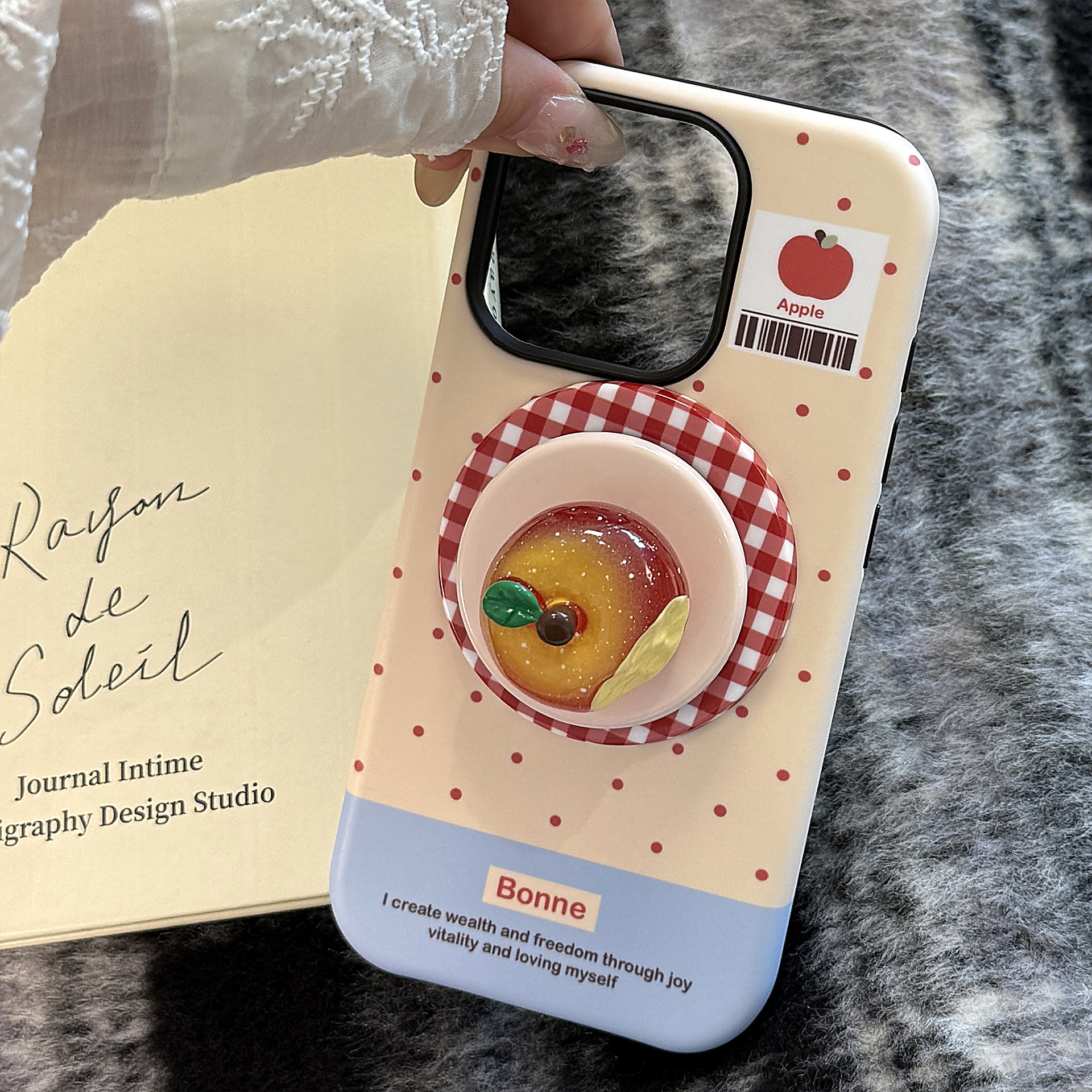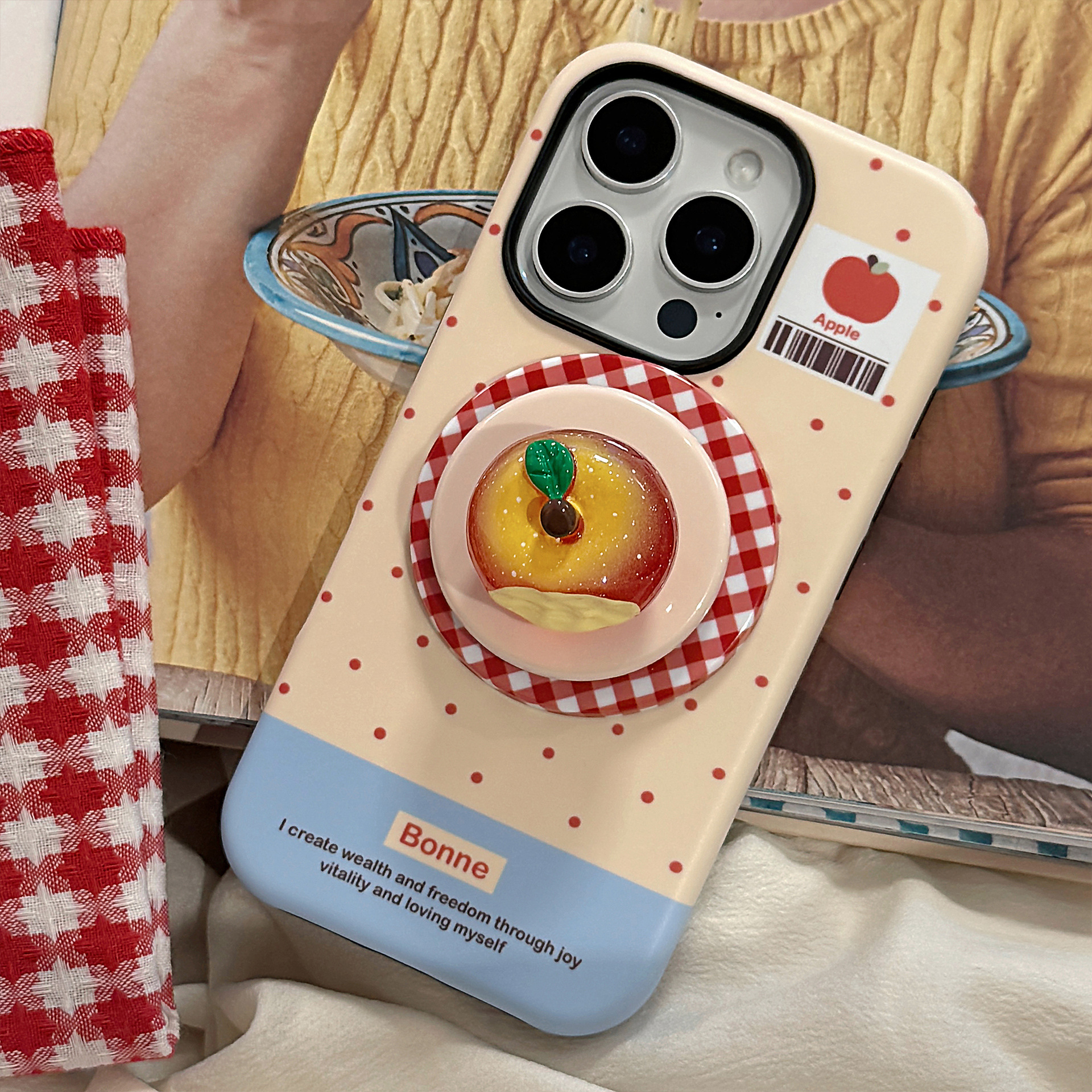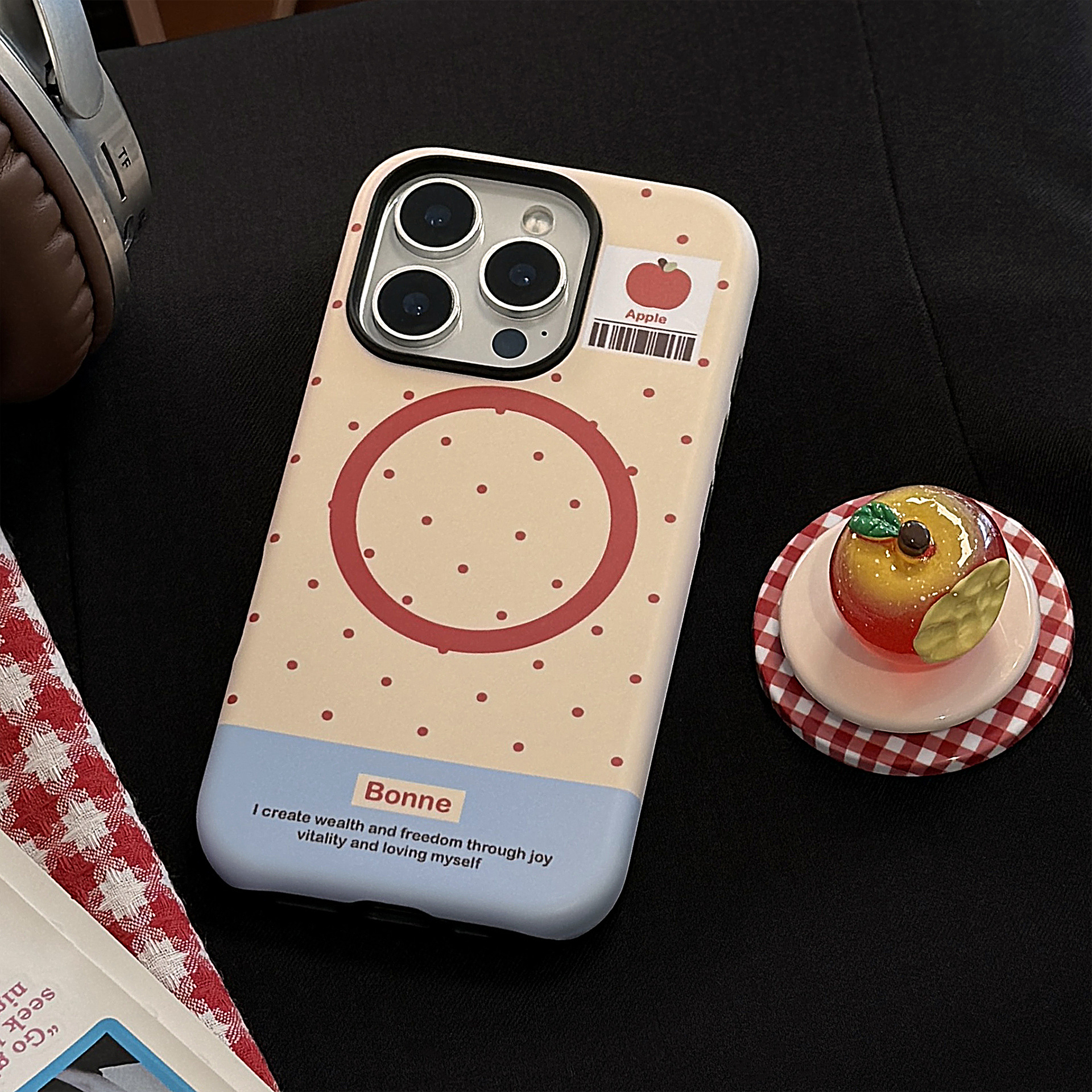 立体夜光水晶苹果16手机壳iPhone17promax适用14磁吸支架11韩系13