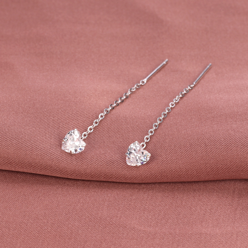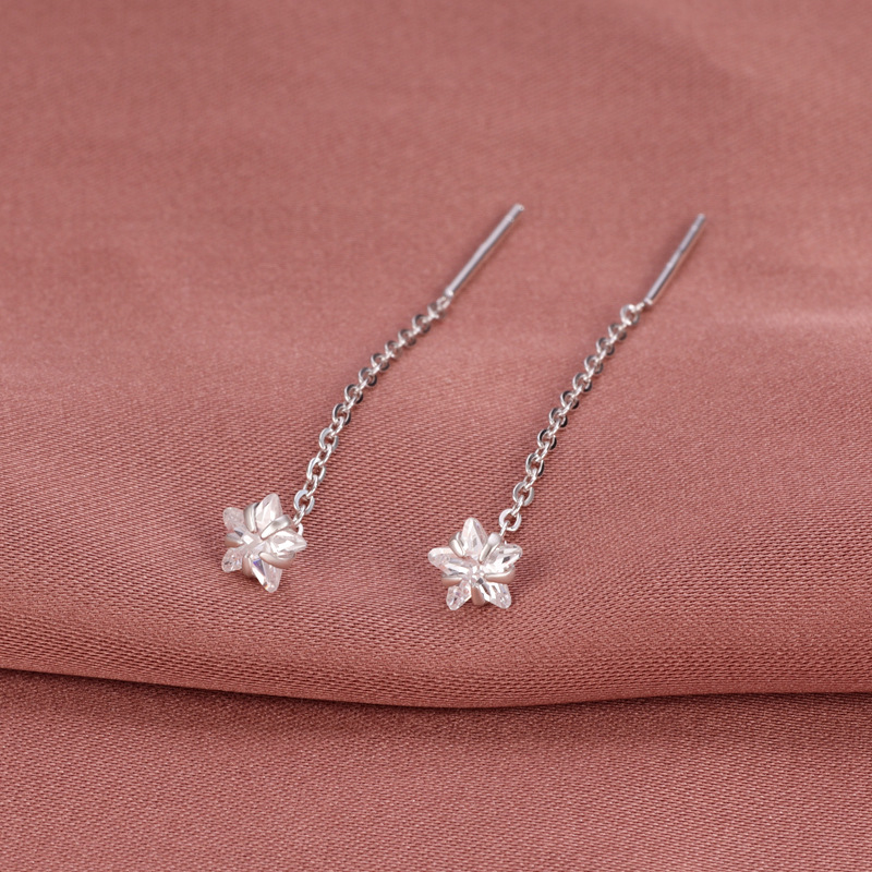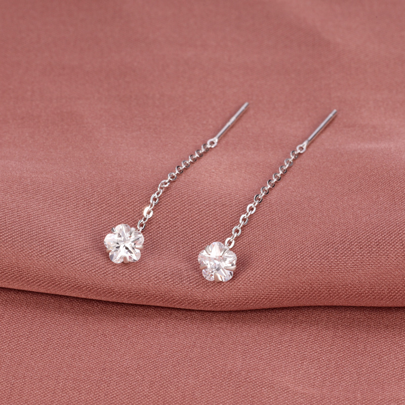 契爱 S925银锆石流苏耳线简约单钻耳饰品高级感花朵耳坠源头工厂