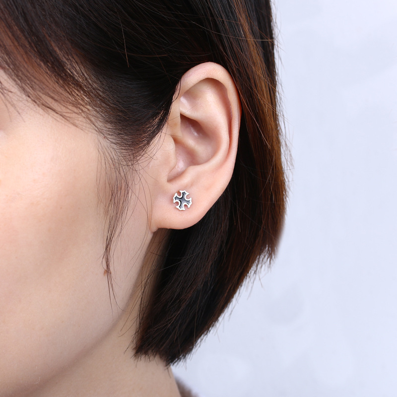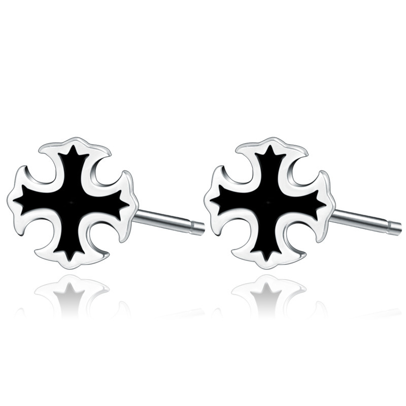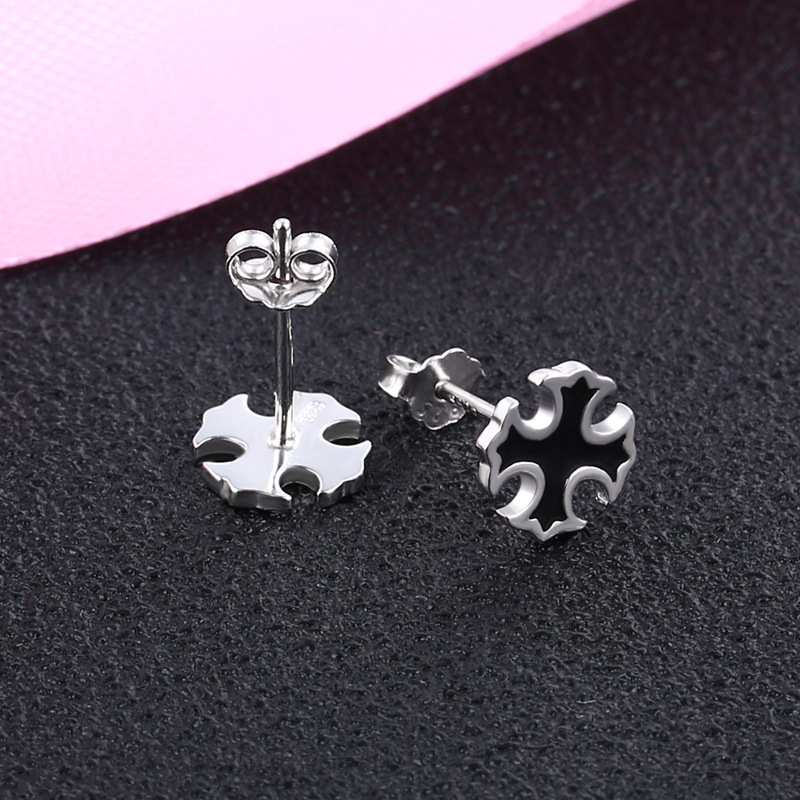 契爱 配饰S925银韩版男女士潮流十字架耳钉欧美时尚耳饰品跨境