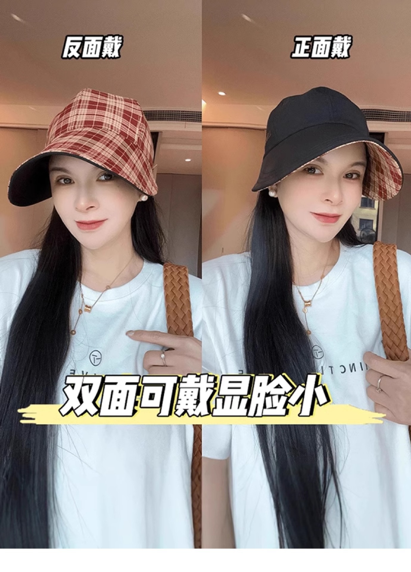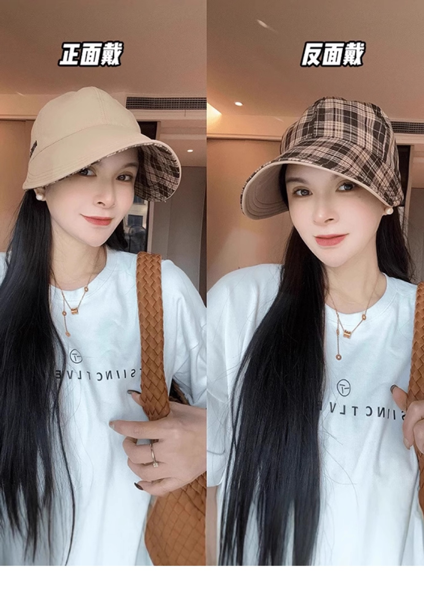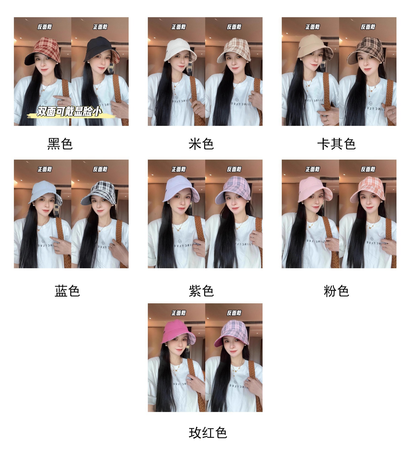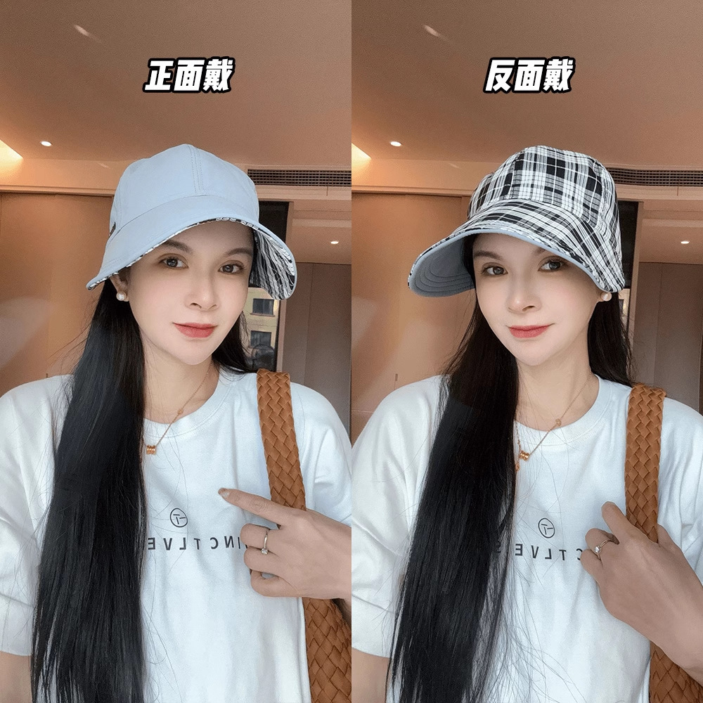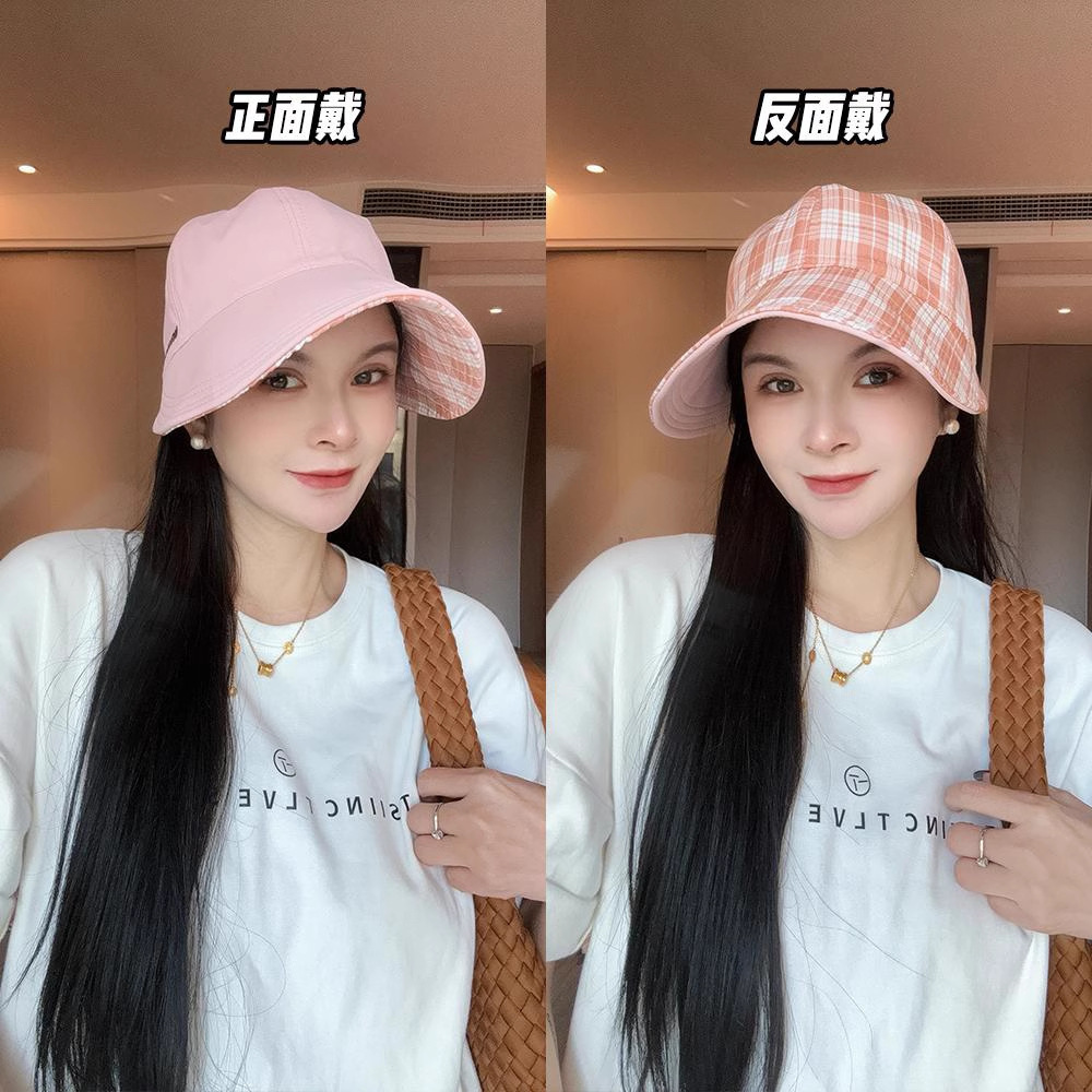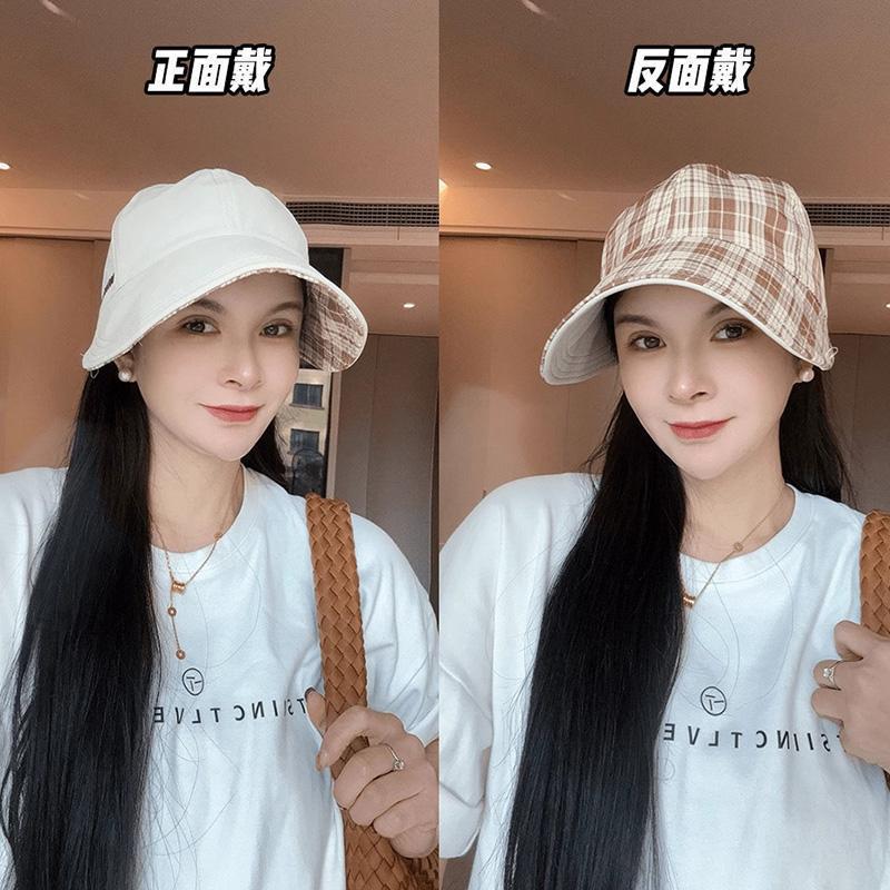 韩版百搭双面戴格纹鸭舌帽子女春夏新款休闲渔夫帽户外遮阳防晒帽
