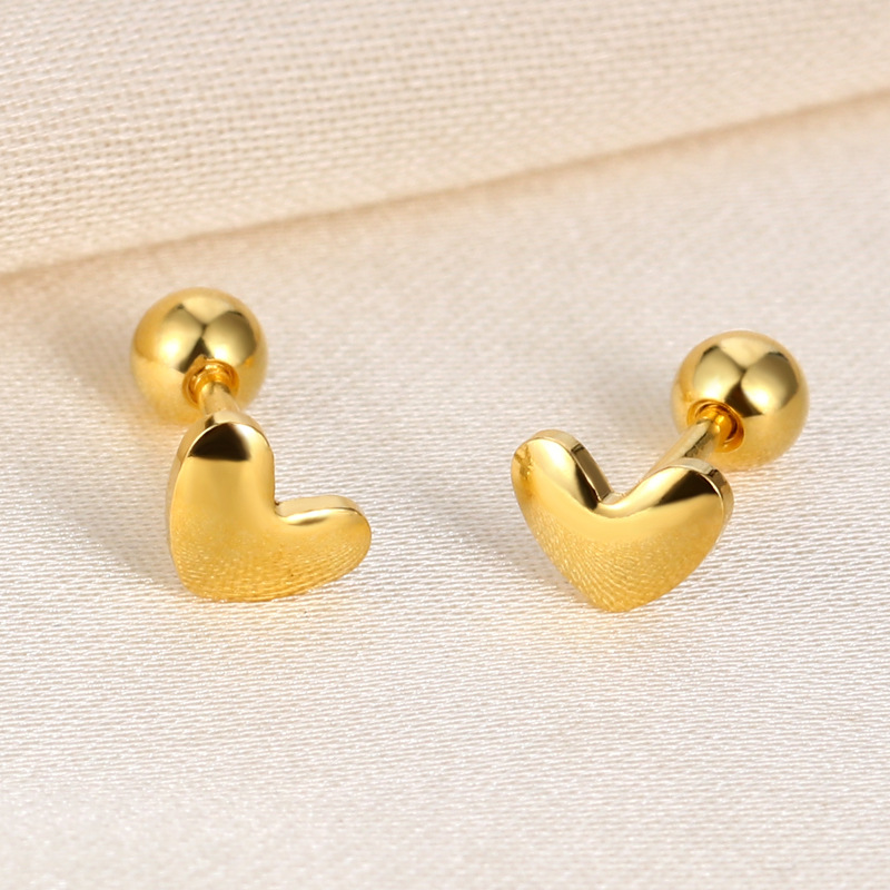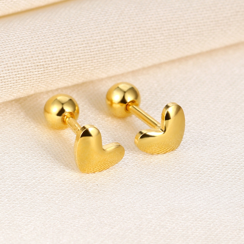 契爱 通体S925银心形螺丝耳钉韩版小巧爱心拧扣耳饰桃心耳骨钉