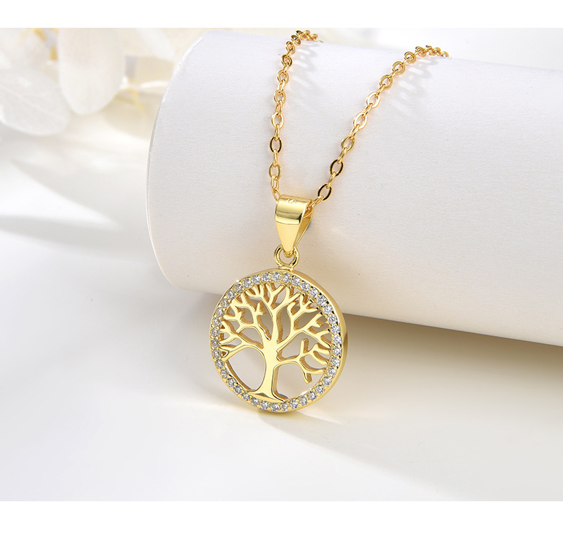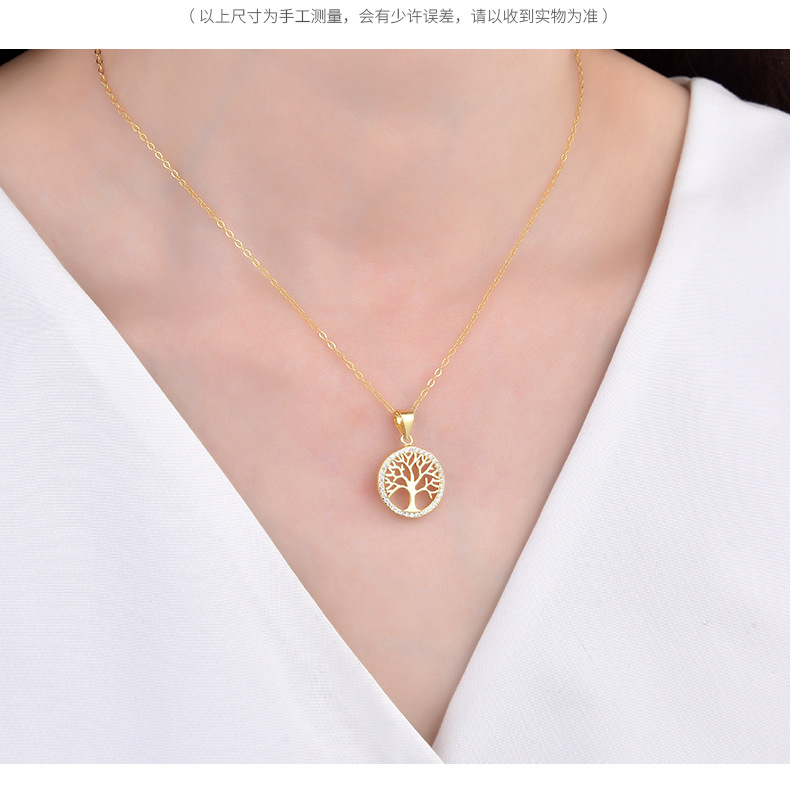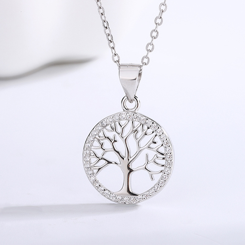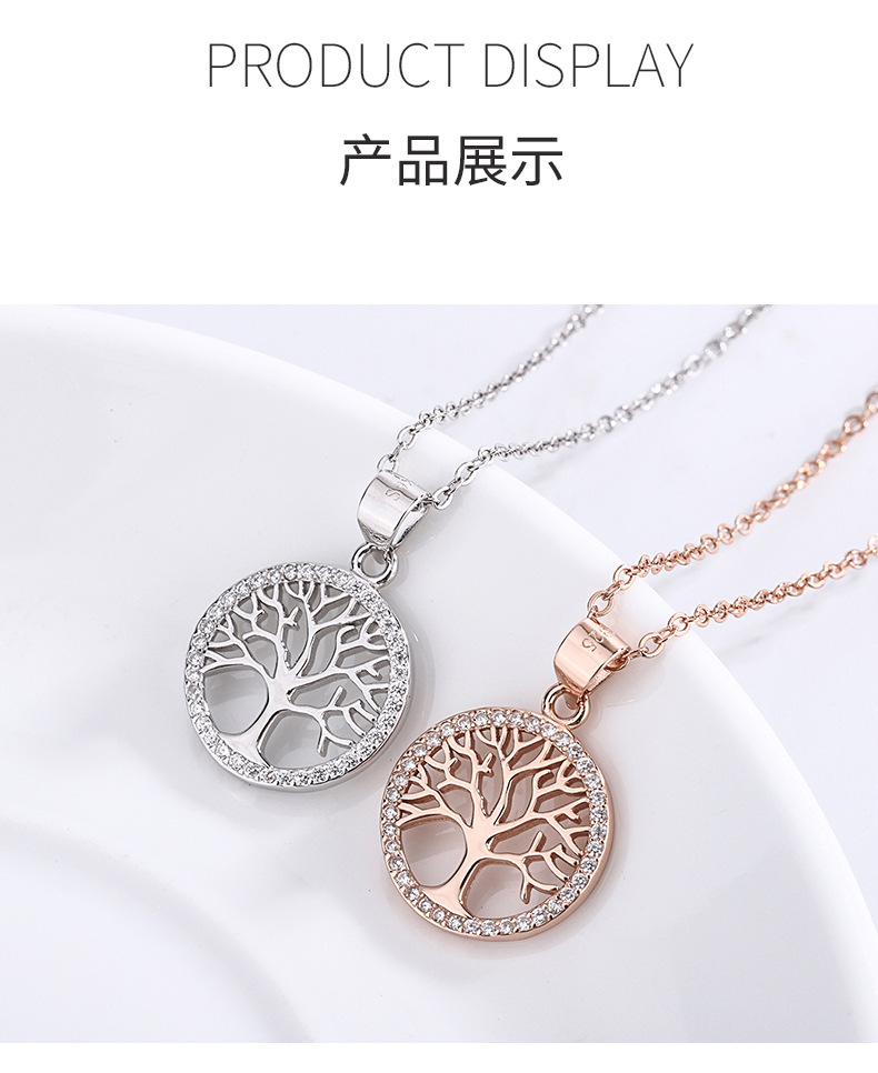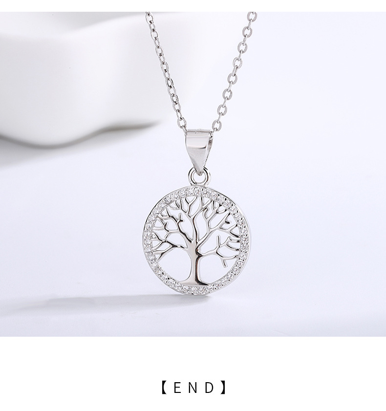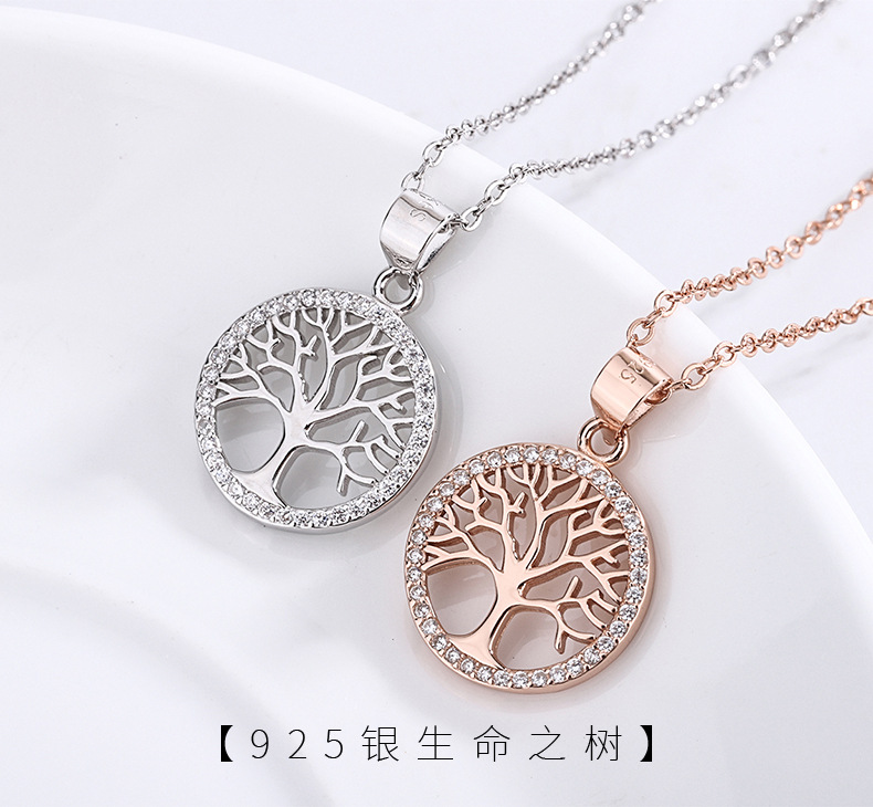 925纯银饰品项链女欧美时尚小众高级感镶钻圆形生命树吊坠锁骨链