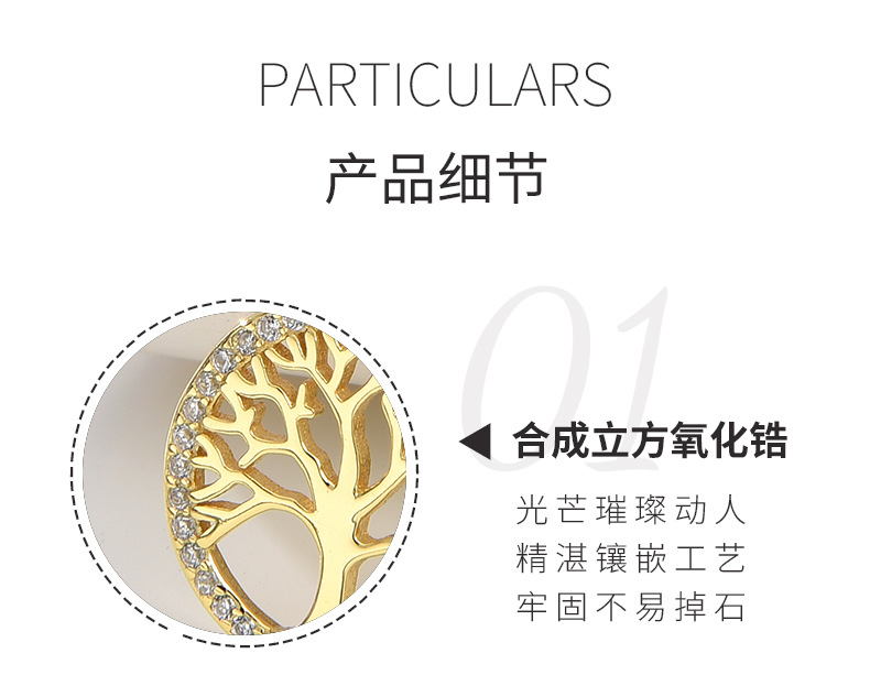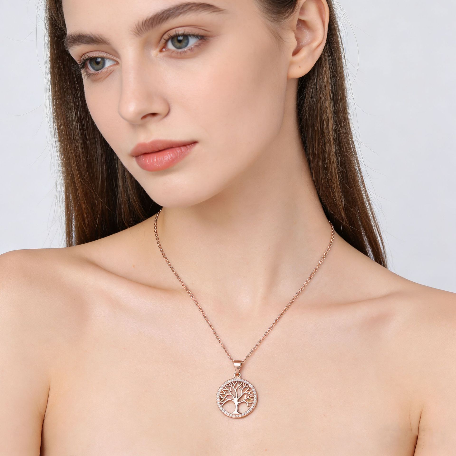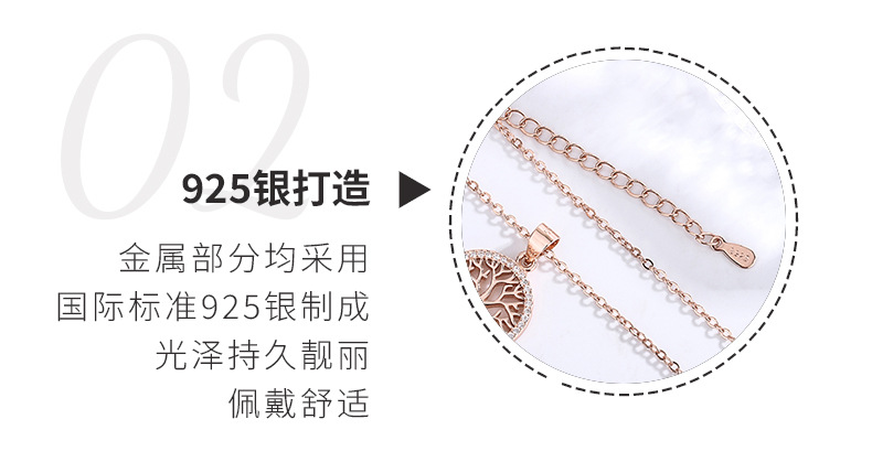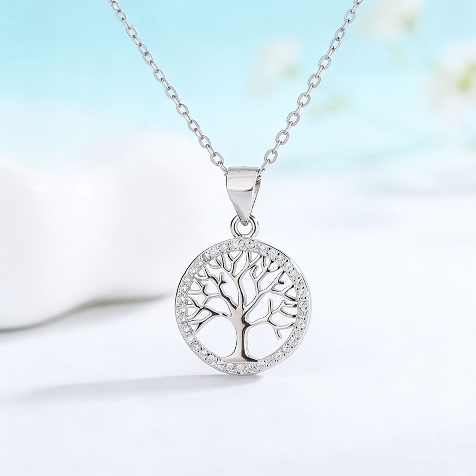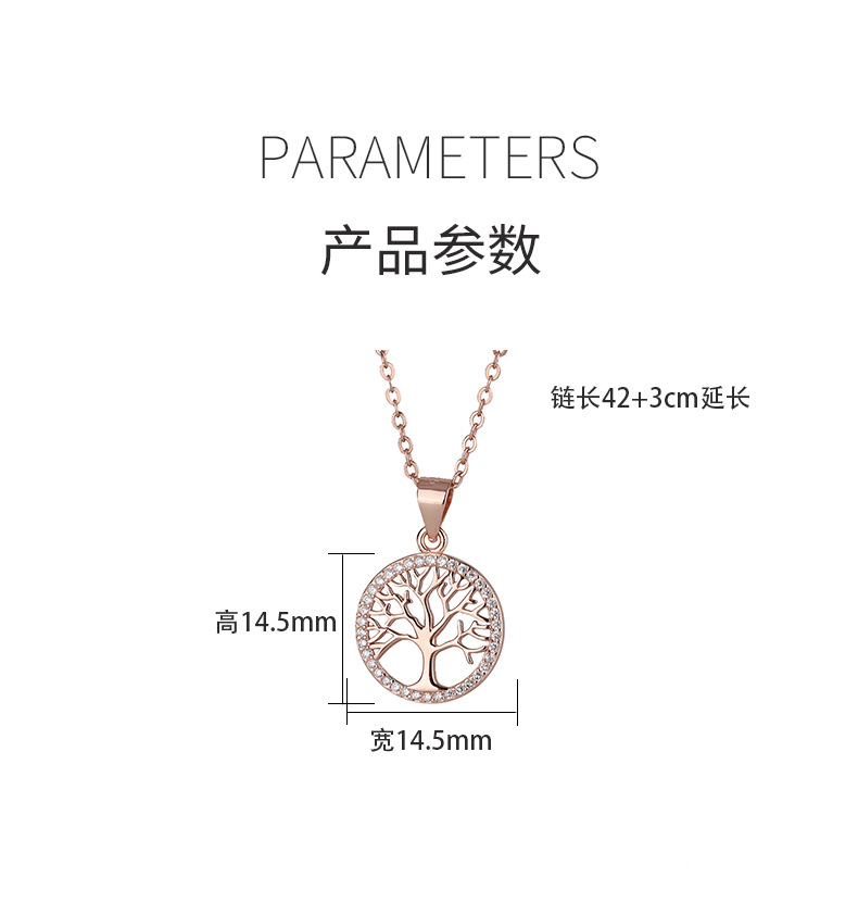 925纯银饰品项链女欧美时尚小众高级感镶钻圆形生命树吊坠锁骨链