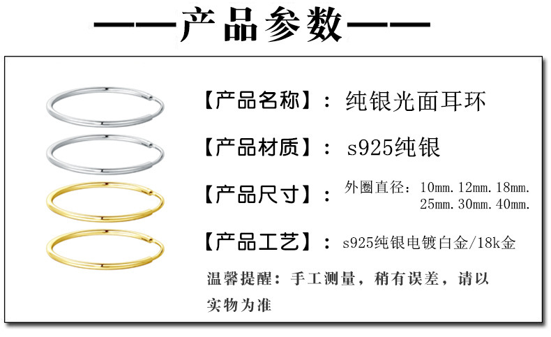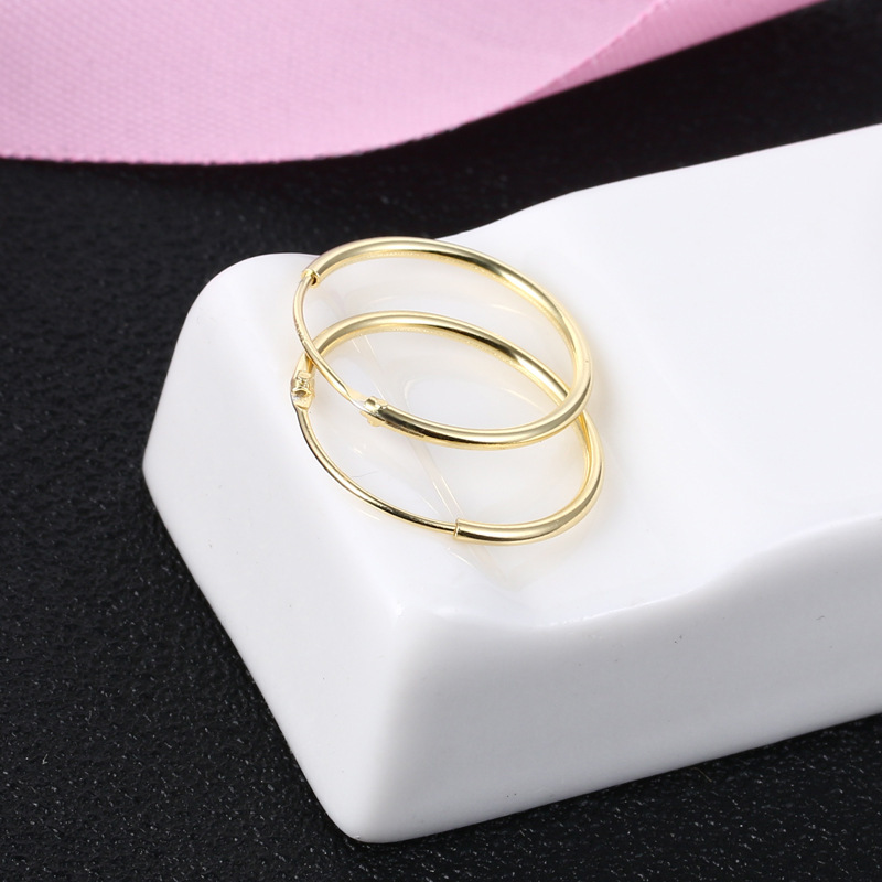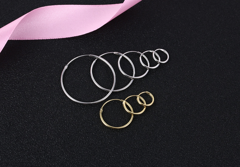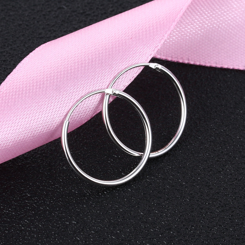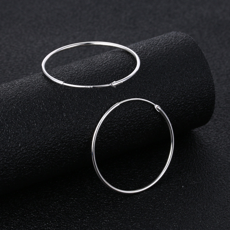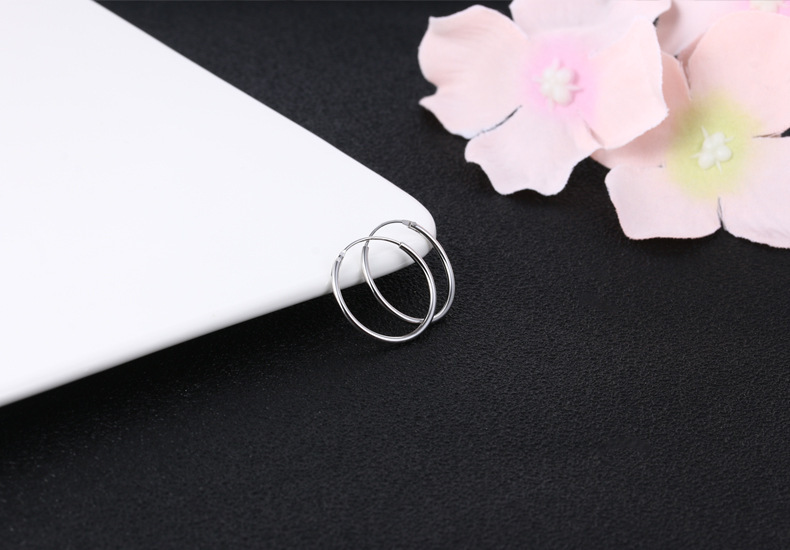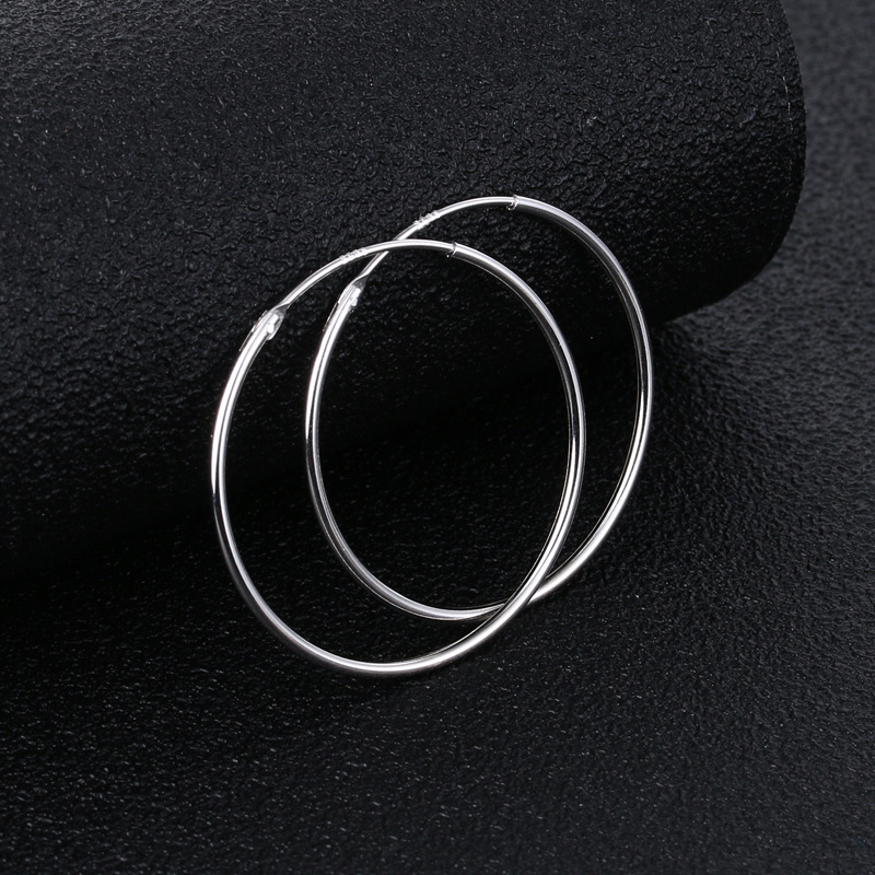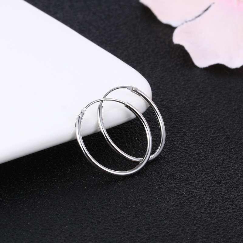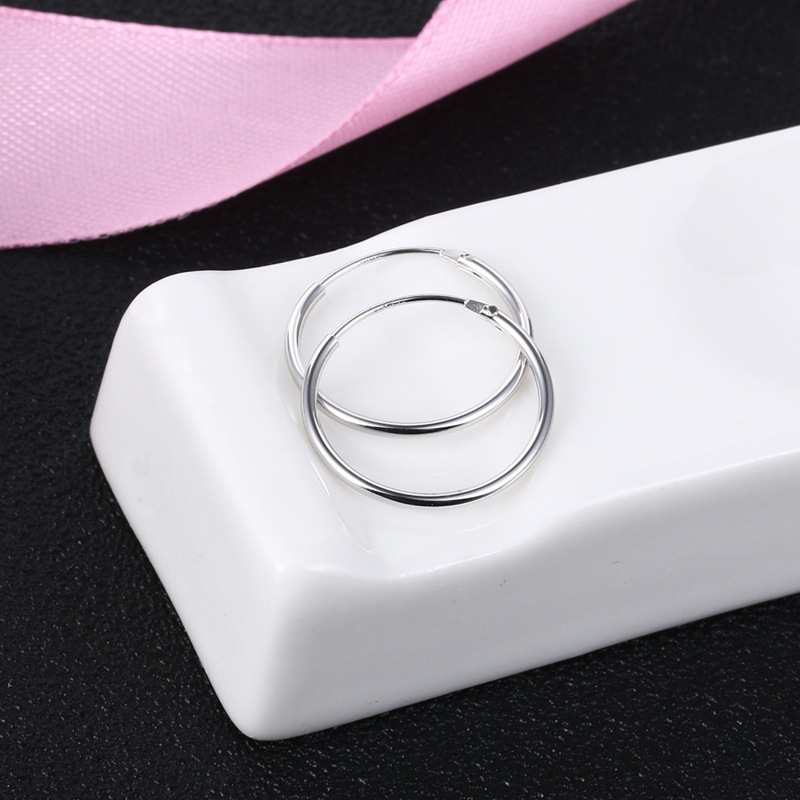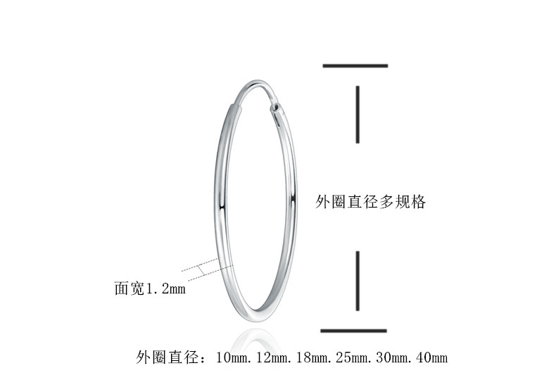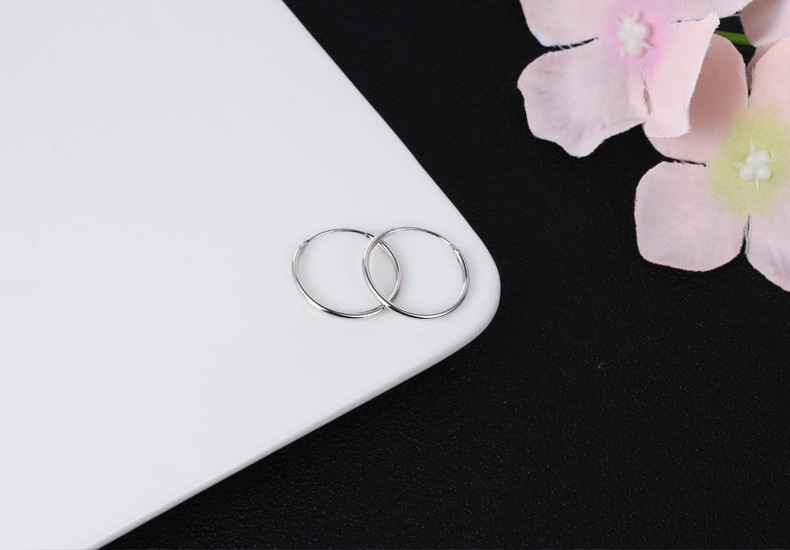 契爱 通体S925银圆圈耳环简约欧美气质男女耳扣超仙圆形耳圈耳饰