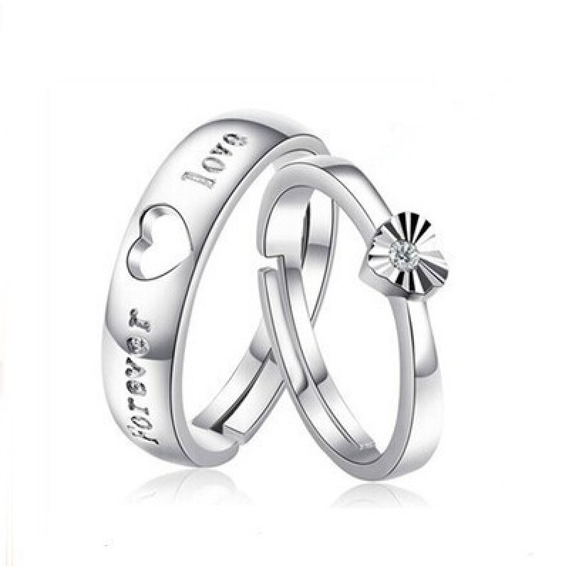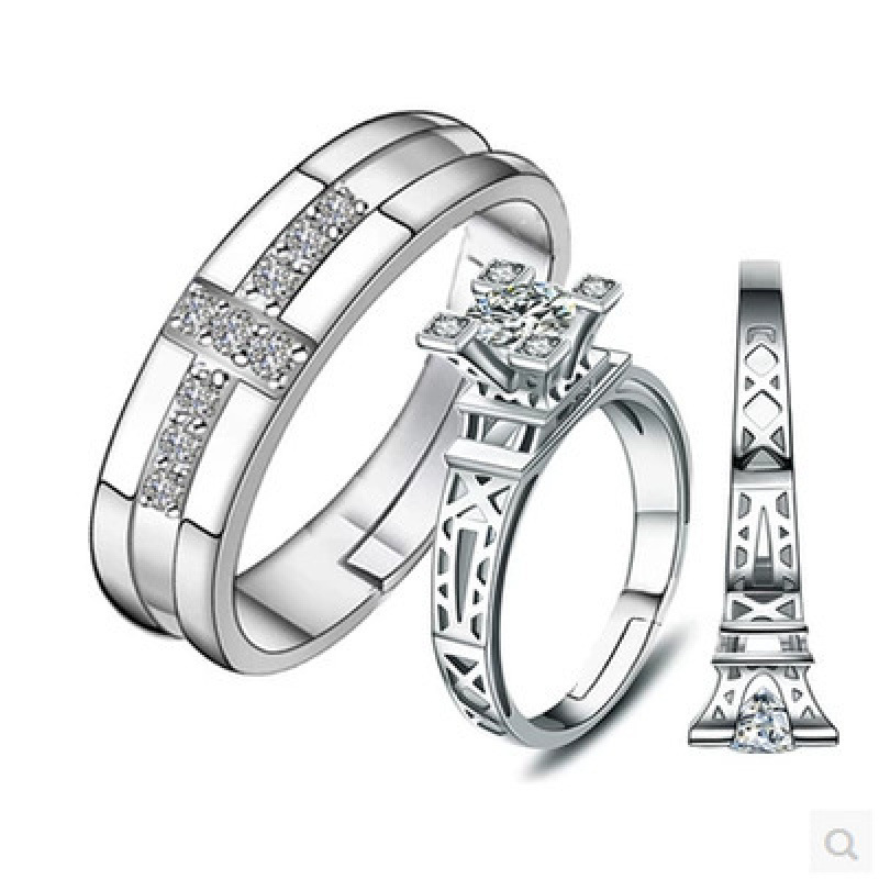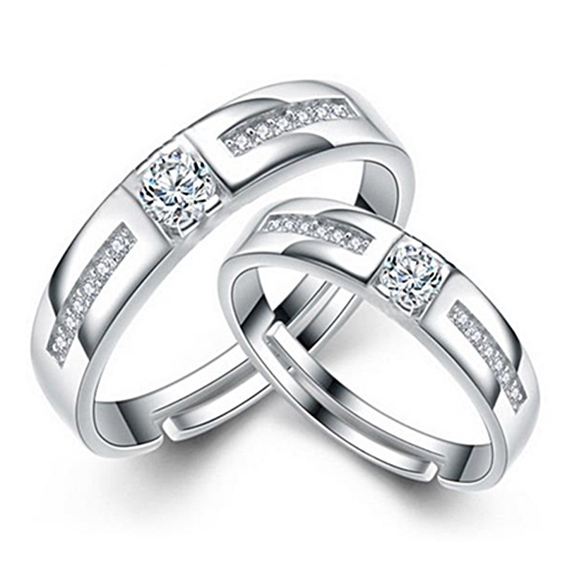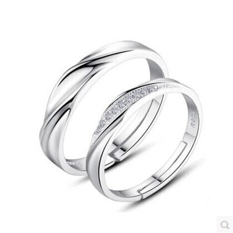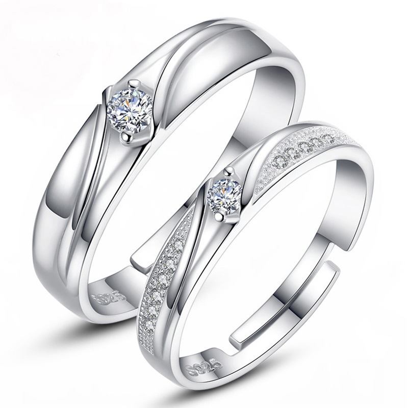 跨境货源欧美镀银饰品开口指女韩版锆石结婚钻戒活口对戒代