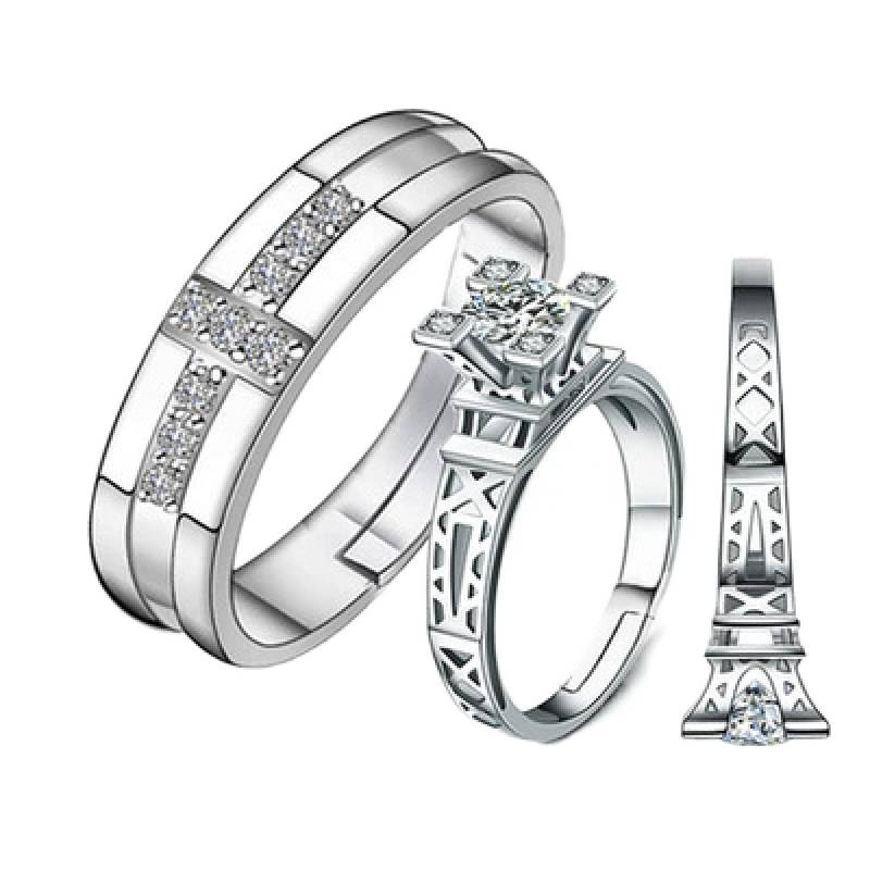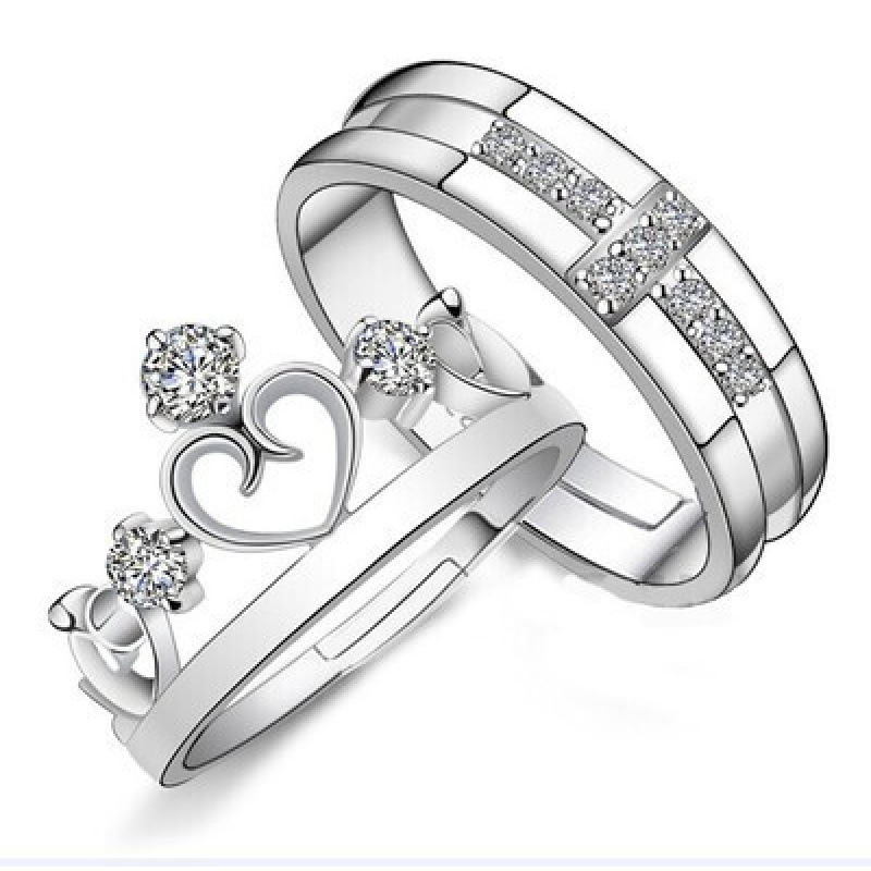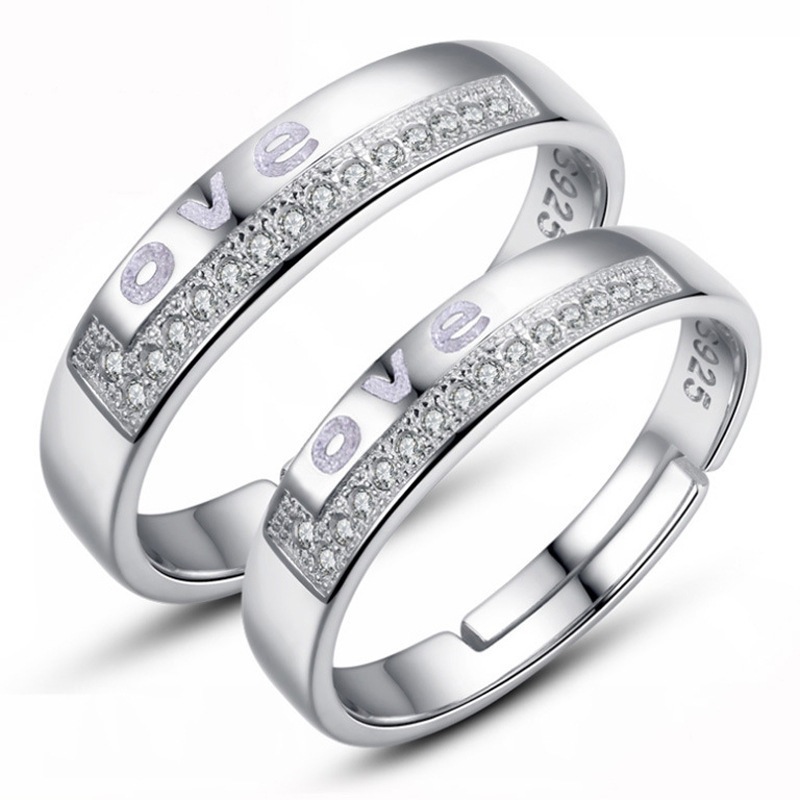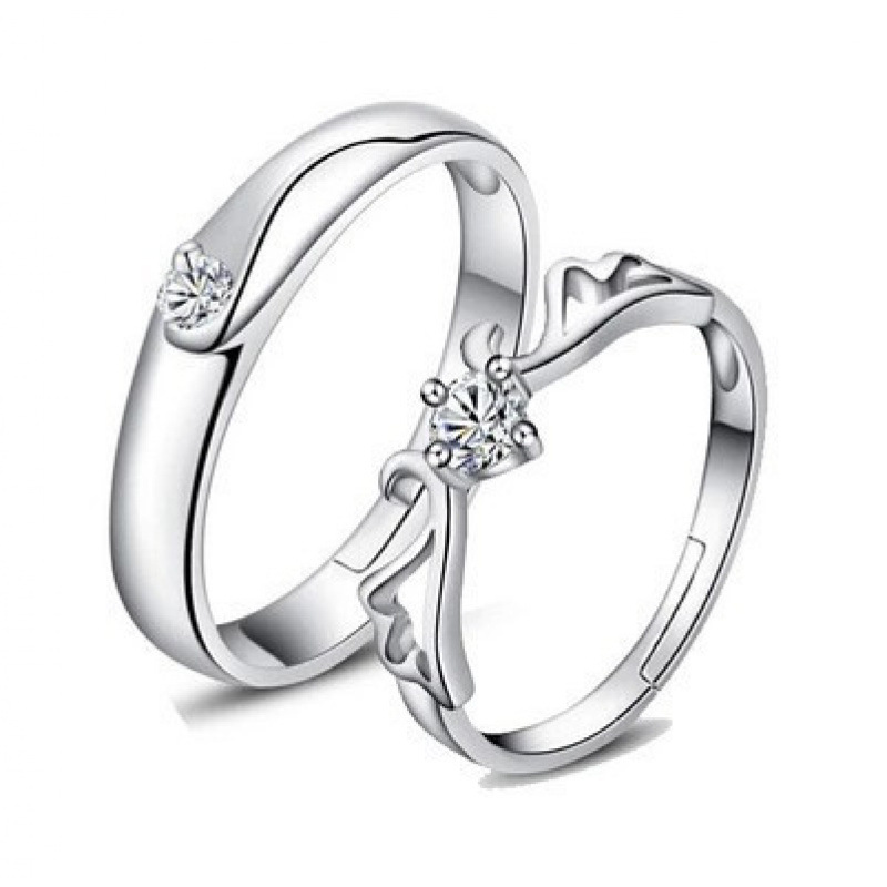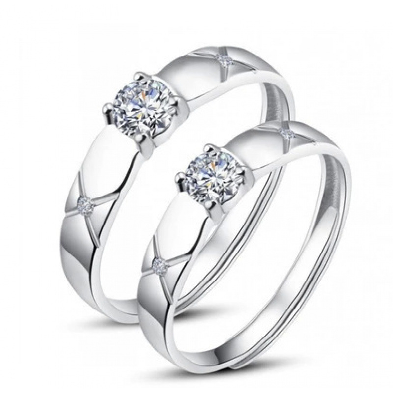 跨境货源欧美镀银饰品开口指女韩版锆石结婚钻戒活口对戒代