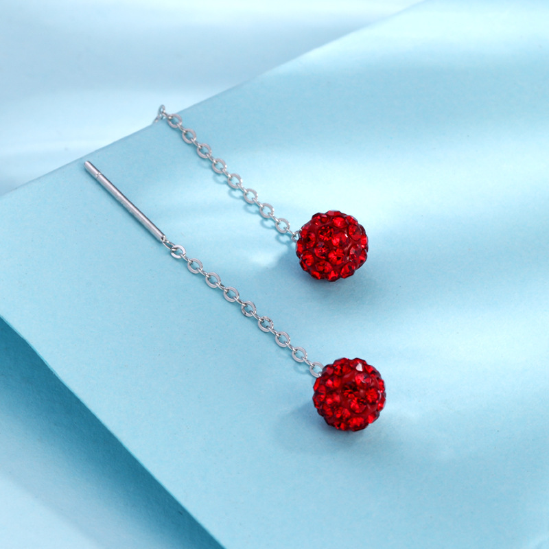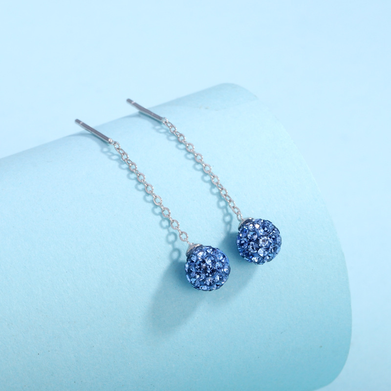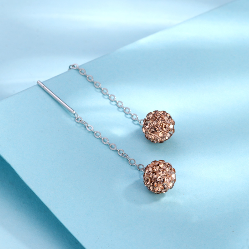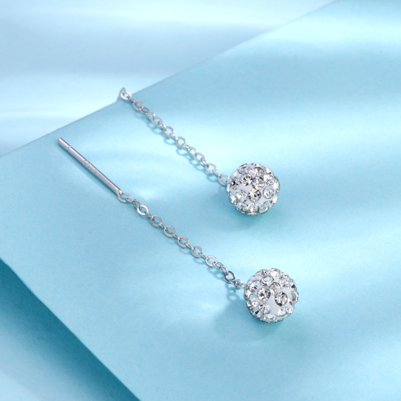 契爱 S925钻球耳线韩版时尚水晶球流苏耳坠香巴拉圆球耳饰品跨境