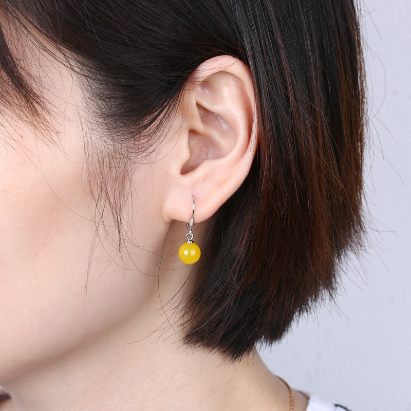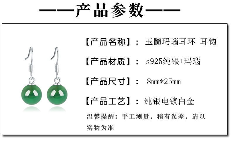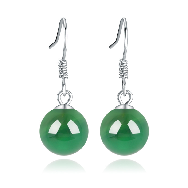 契爱天然玛瑙耳环S925银耳饰气质复古玉髓耳坠女超仙绿玉石耳钩