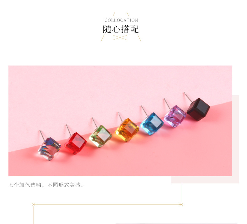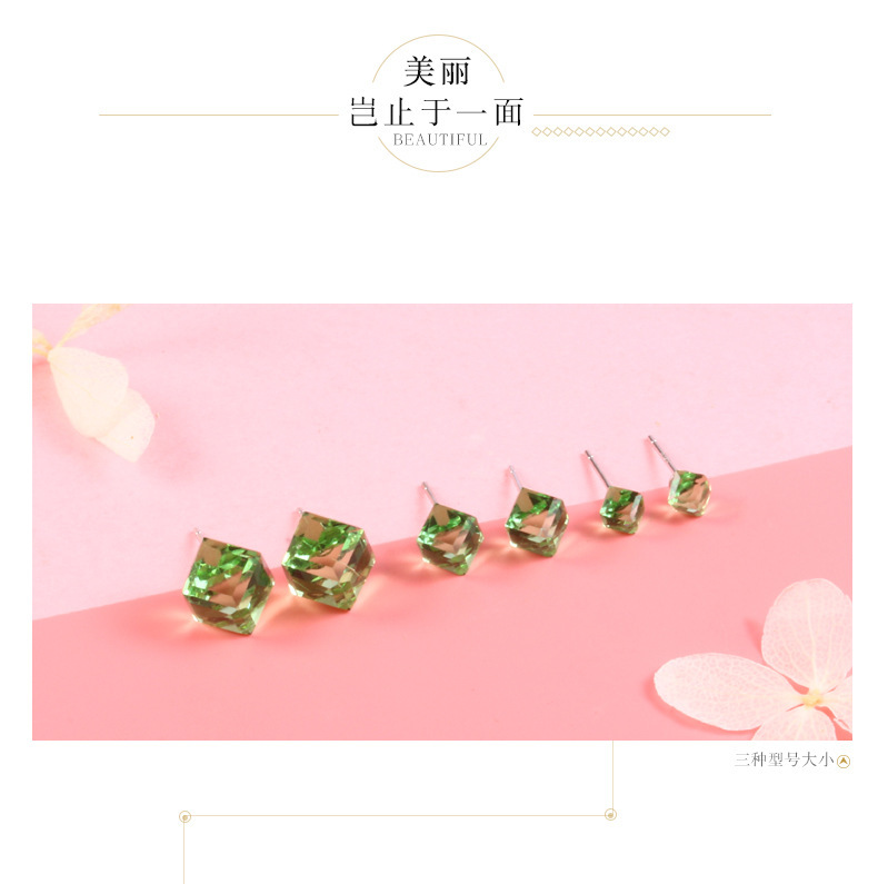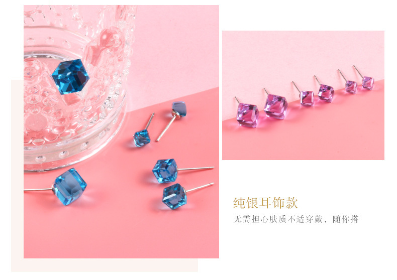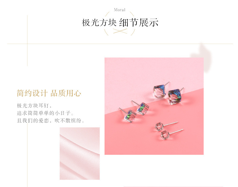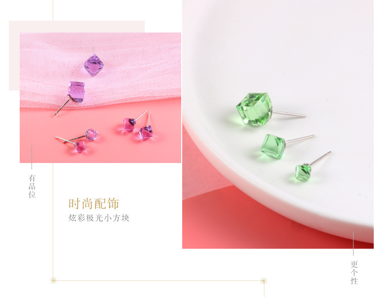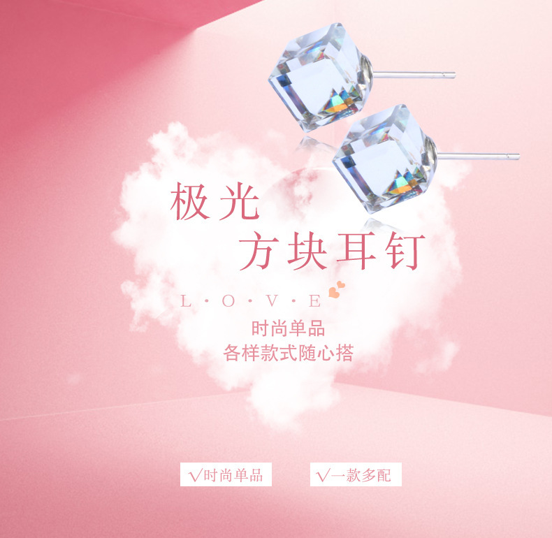 契爱 925银奥地利水晶耳钉男女气质方块耳环简约方糖渐变水晶耳饰