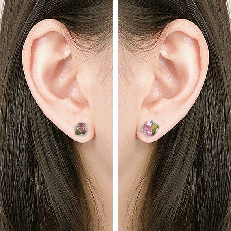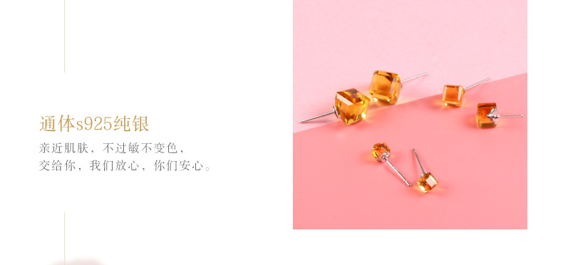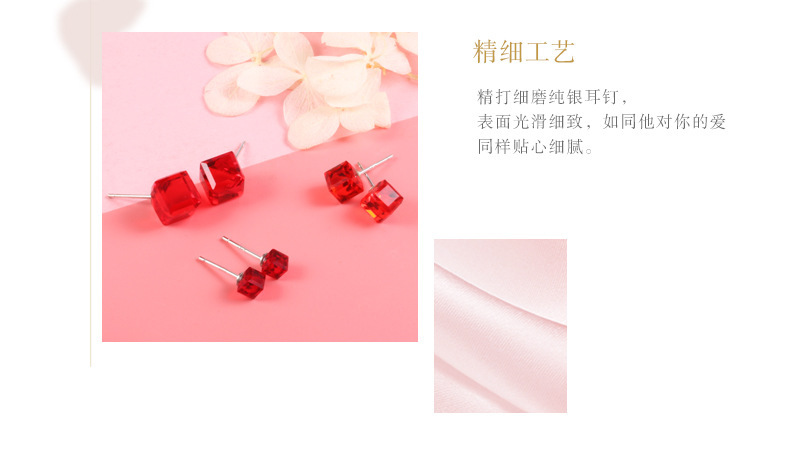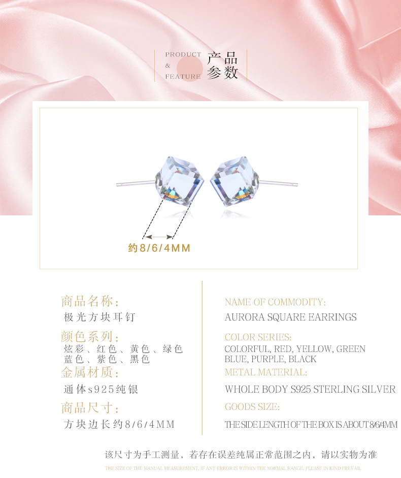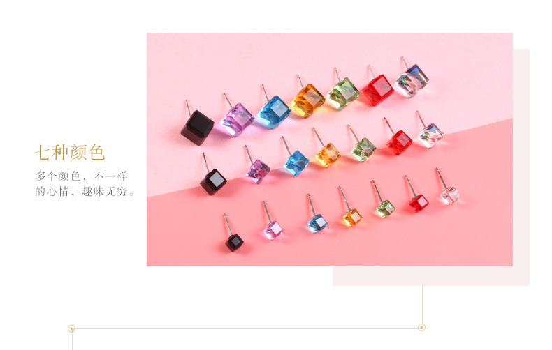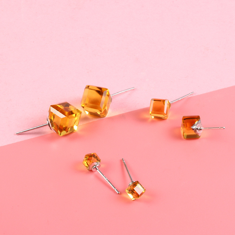 契爱 925银奥地利水晶耳钉男女气质方块耳环简约方糖渐变水晶耳饰