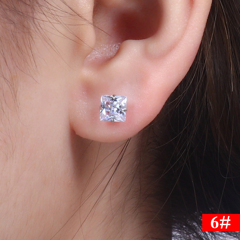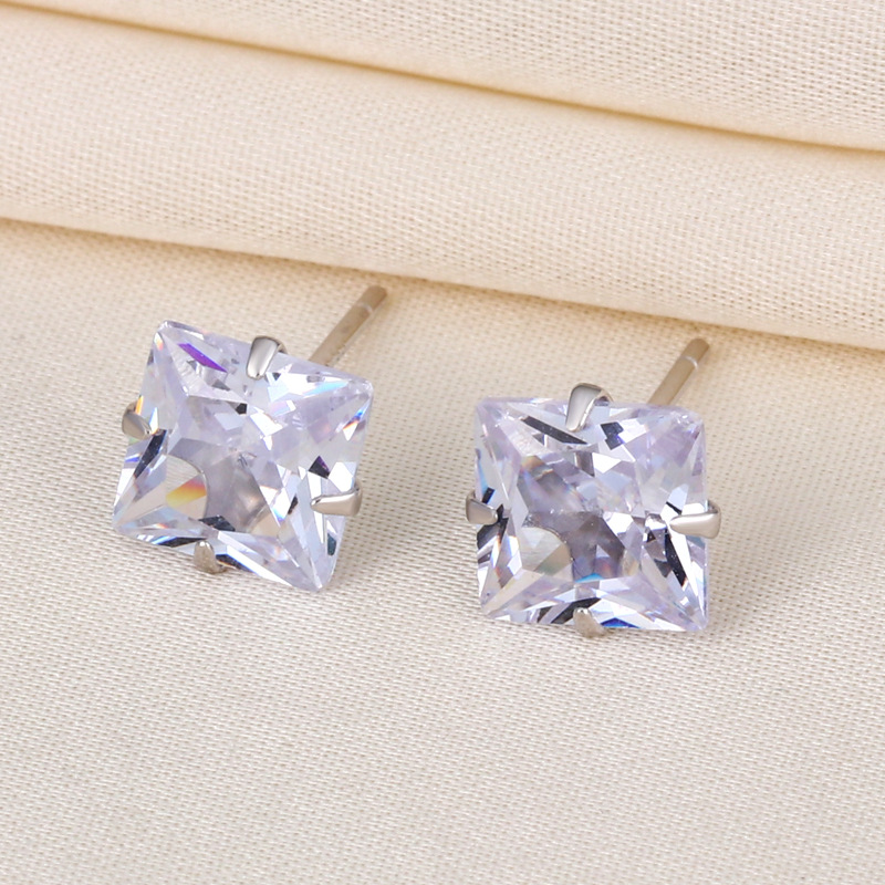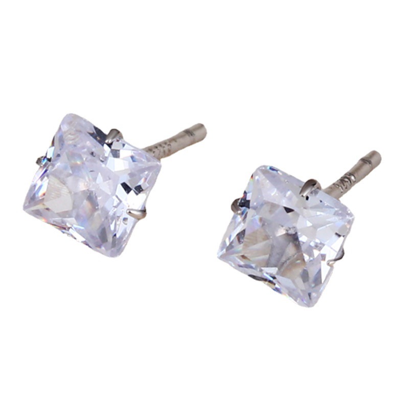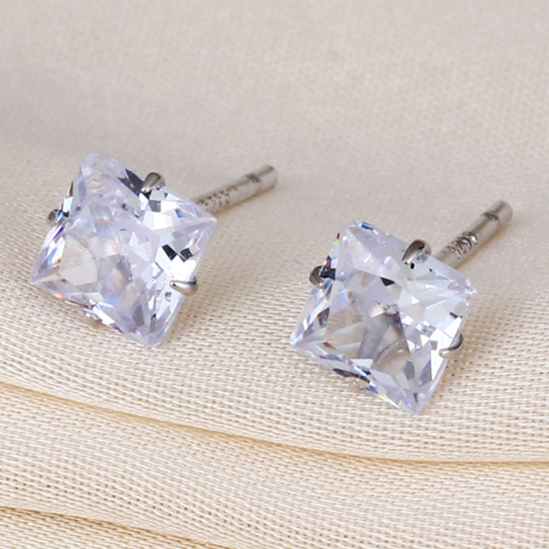 契爱 s925银方形镶钻耳钉简约时尚男女款正方形耳饰四爪锆石耳环